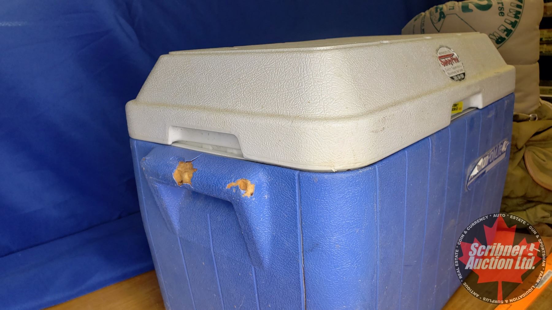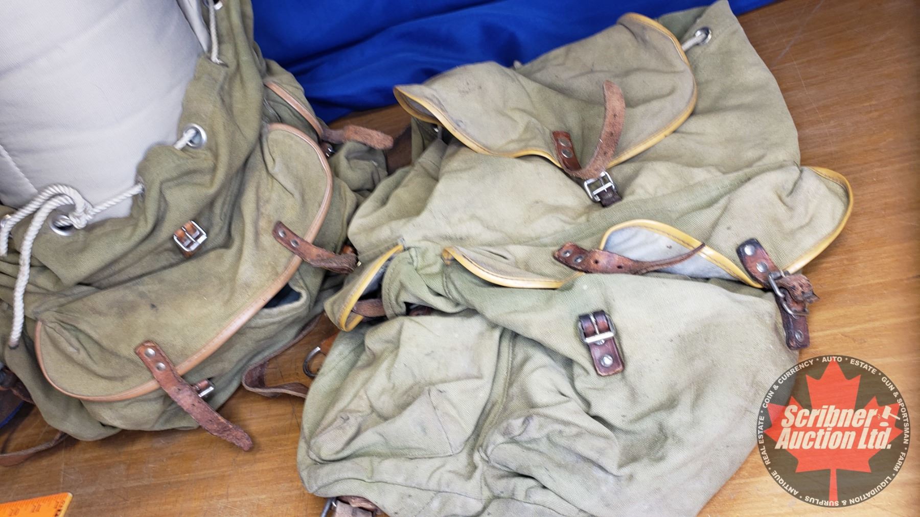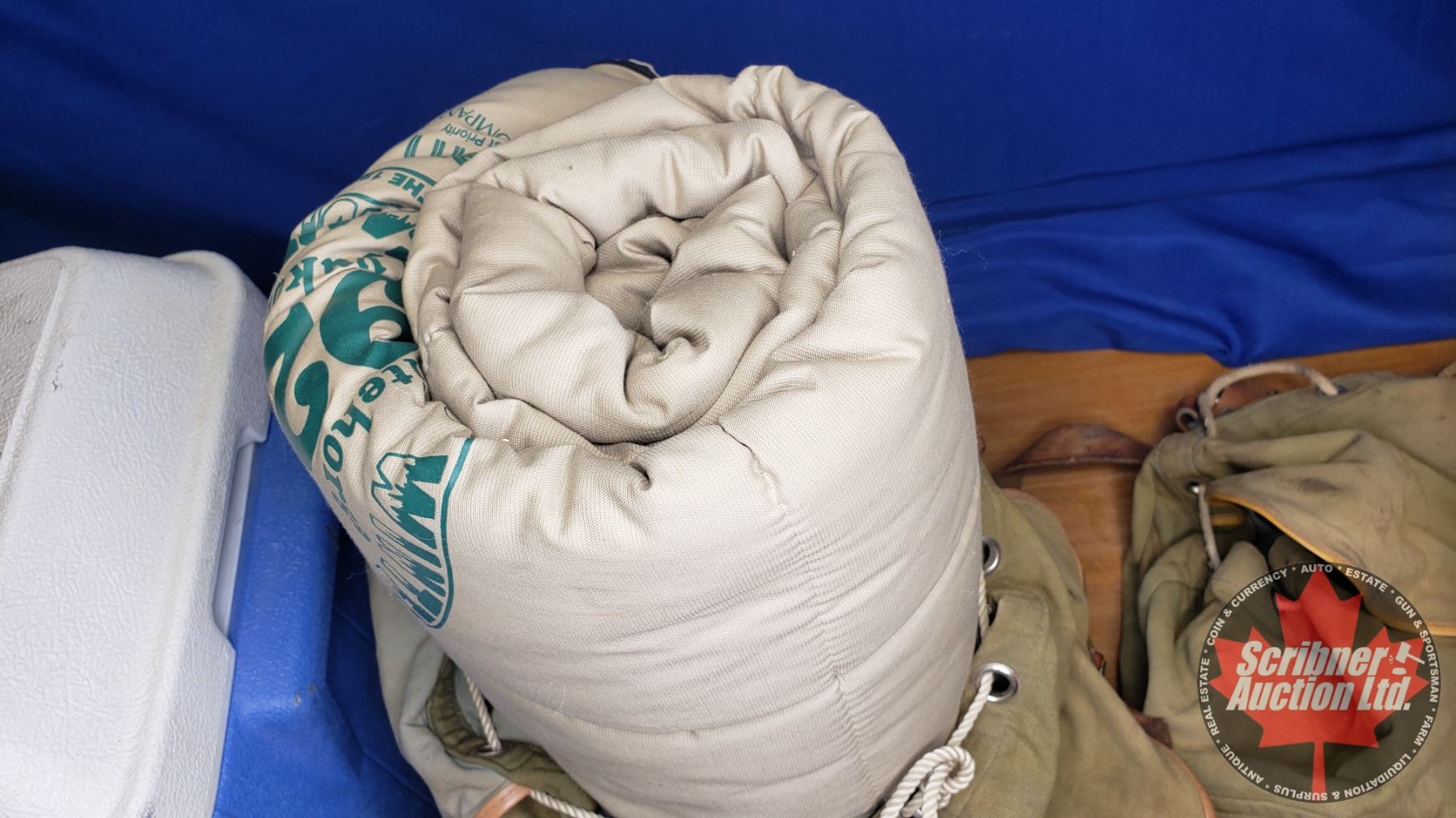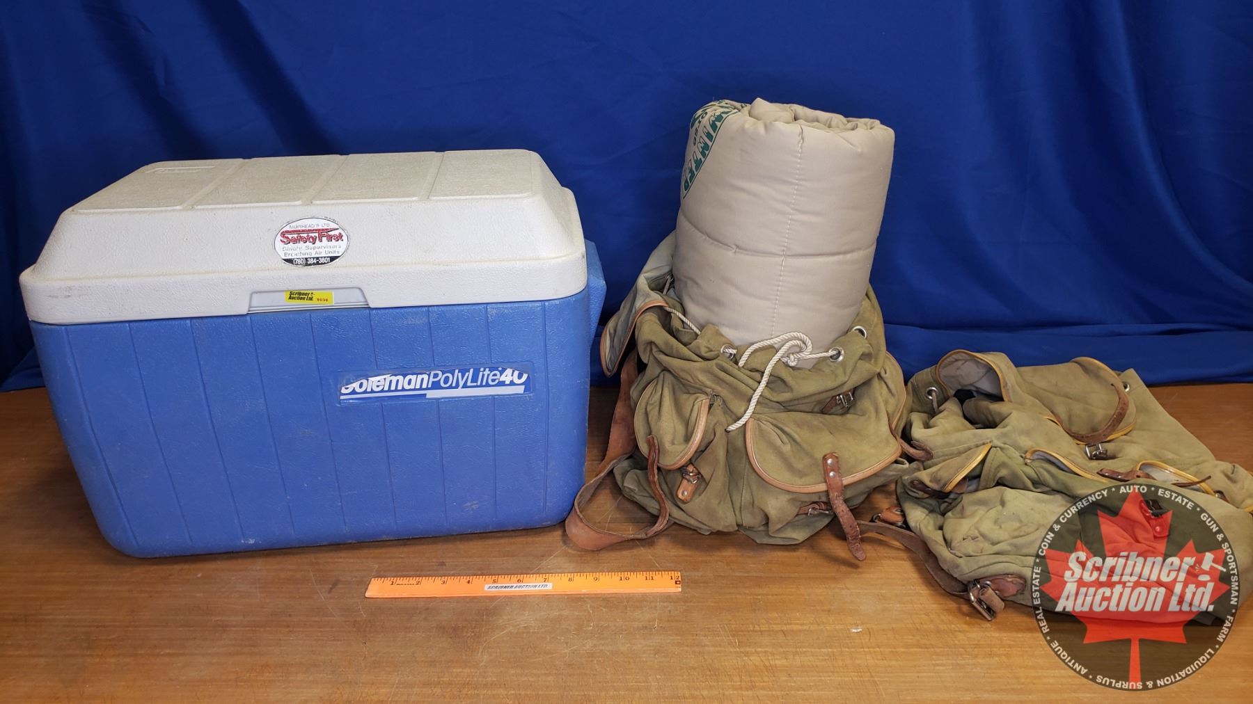 Canvas Pack Sack (2) & Sleeping Bag & Coleman Cooler (Cooler Size: 15"H x 20"W x 13"D)