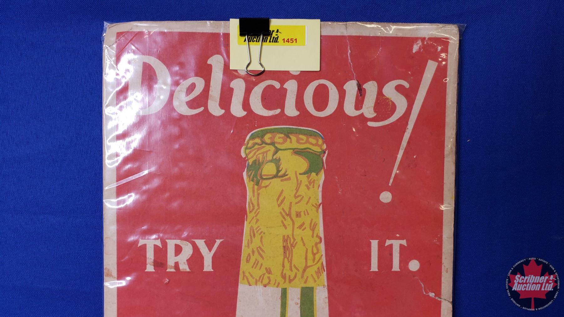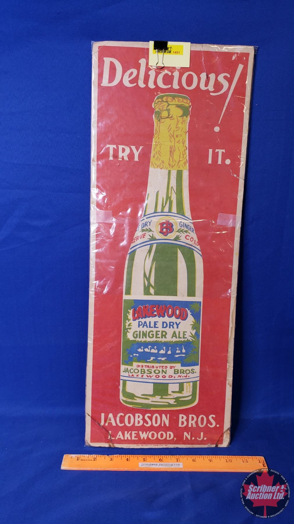 Cardboard Ad "Delicious! Try It." "Jacobson Bros. Lakewood, N.J." (Bottle "Lakewood Pale Dry Ginger Ale") (24"H x 9-1/8"W) (SEE PICS!)