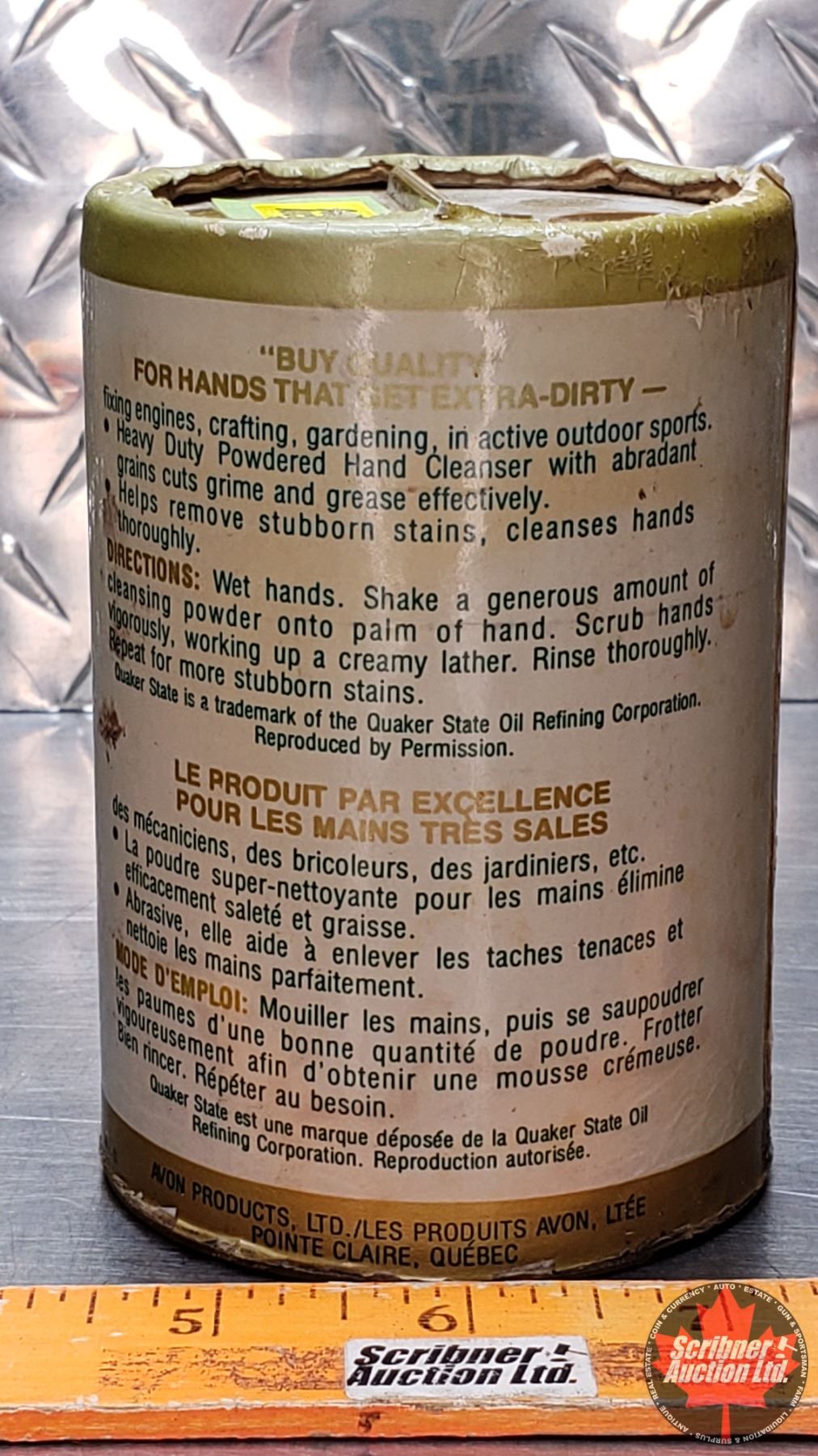 Cardboard Tin : Quaker State Avon Heavy Duty Powdered Hand Cleanser (Partially Full) (4-1/3"H x 3"Dia) (SEE PICS!)