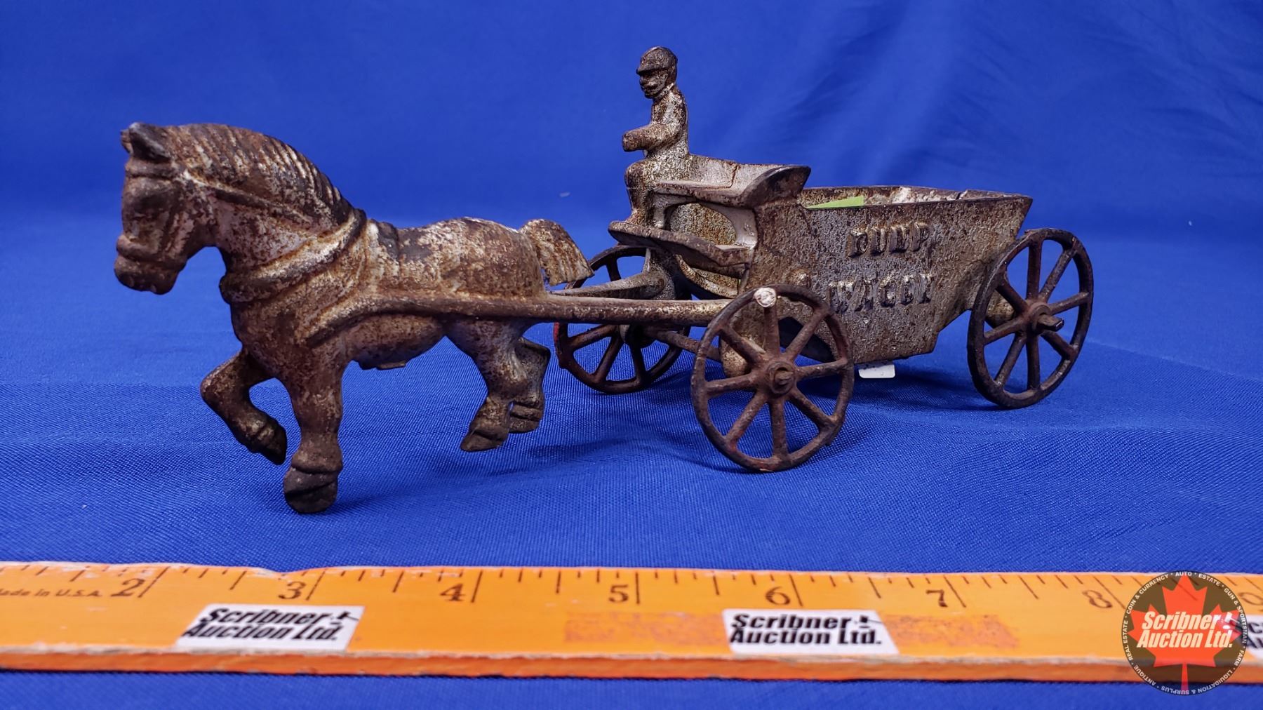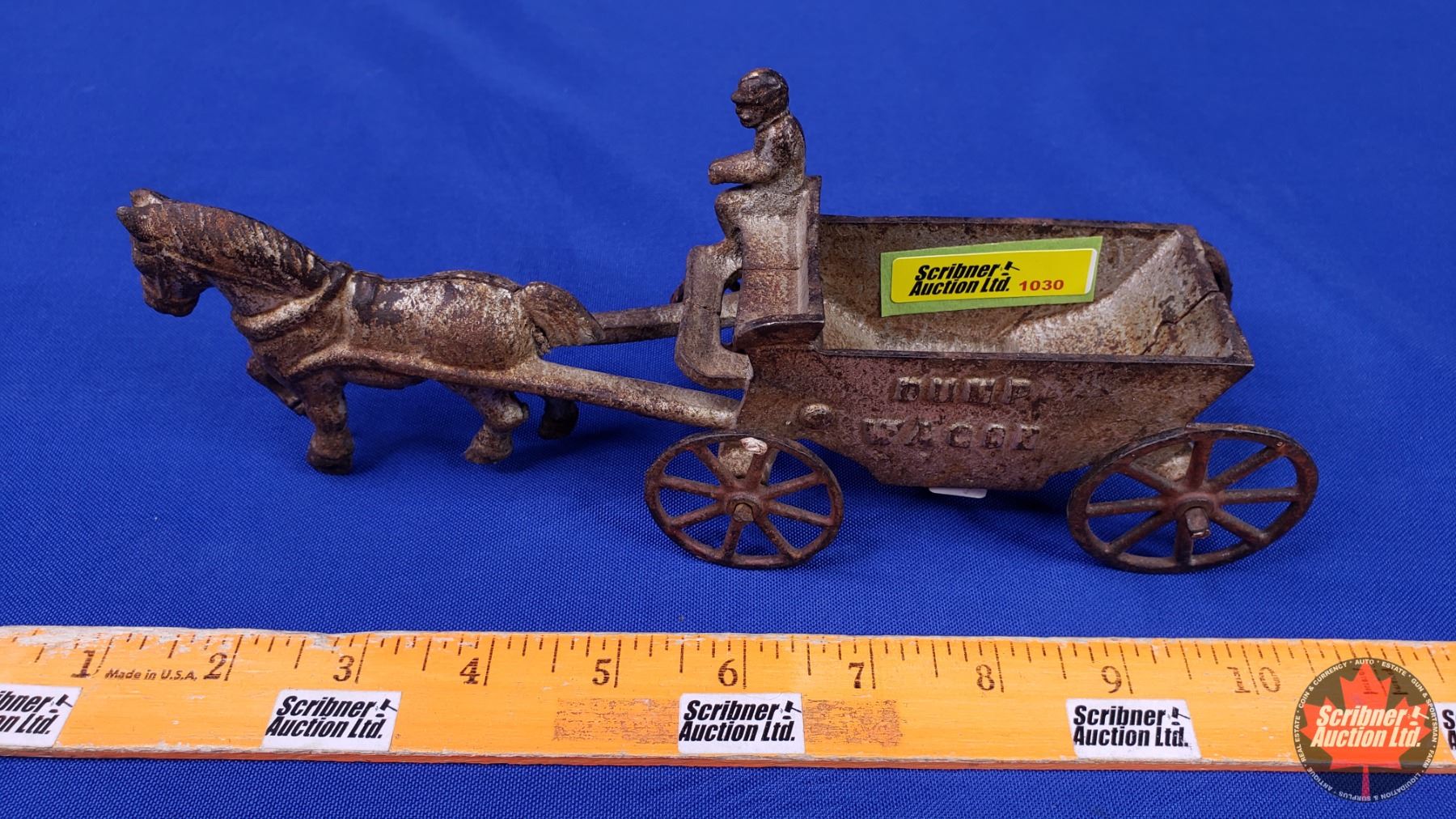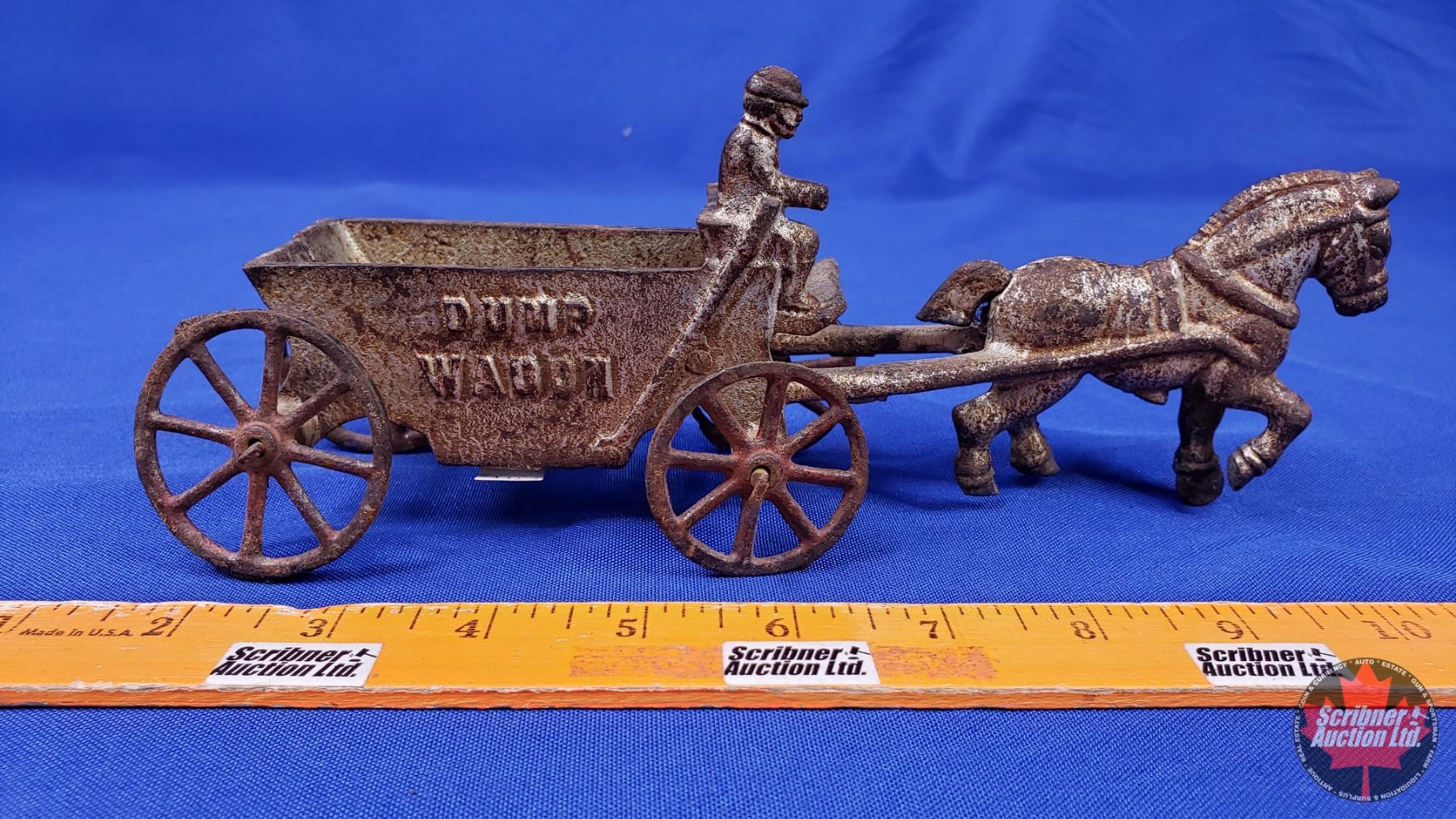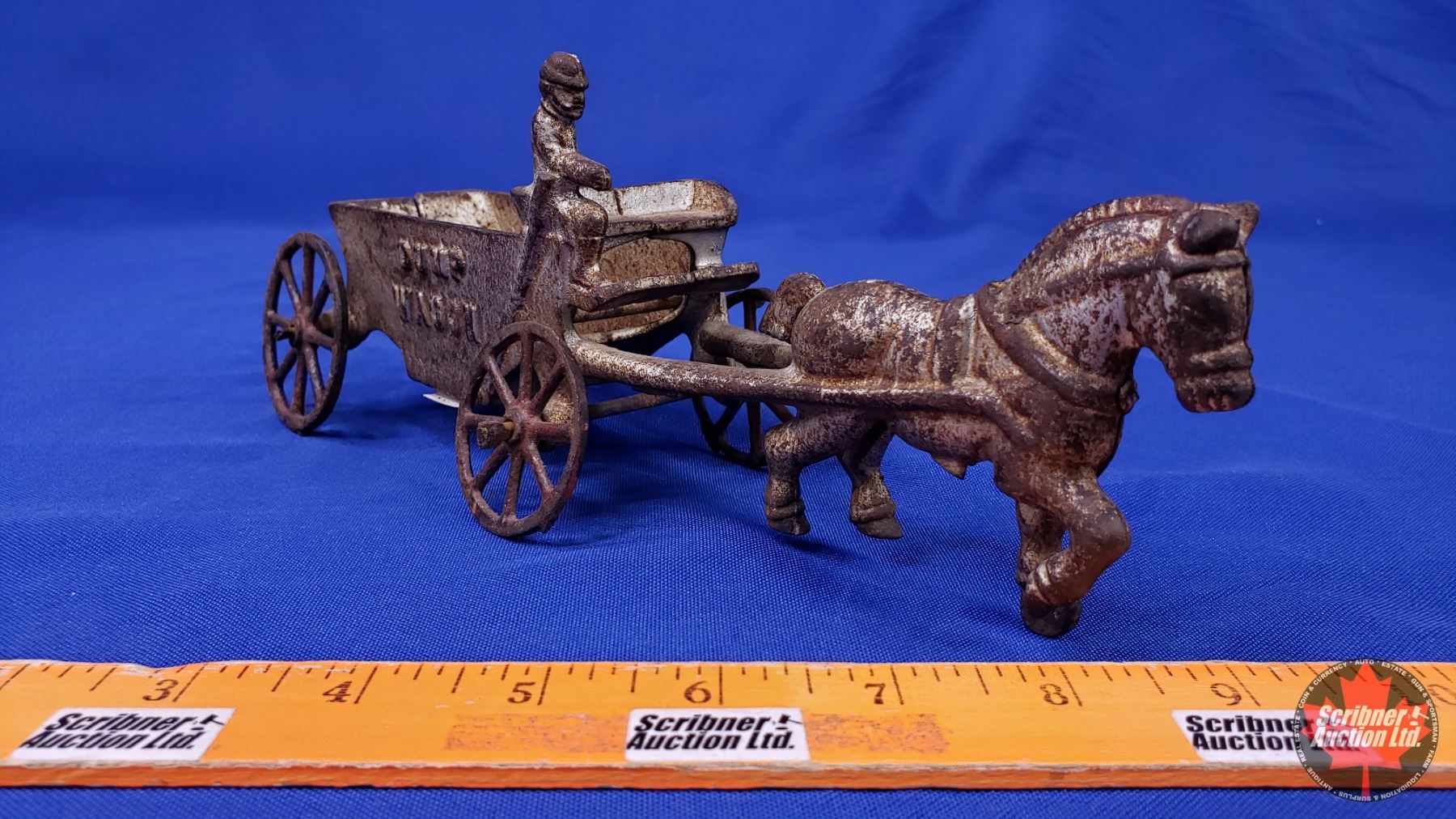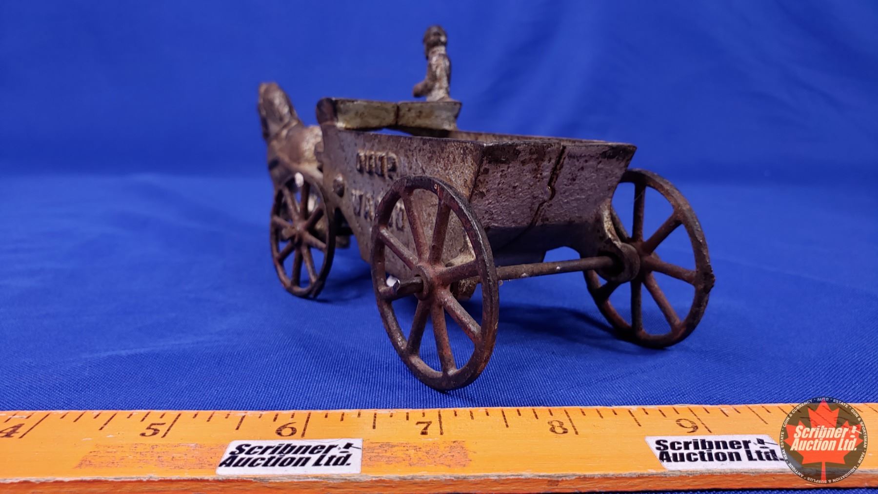 Cast "Dump Wagon" Toy Horse & Wagon with Driver (c. early 1900's) (3-1/2"H x 3"W x 9-1/2"D) (SEE PICS!)