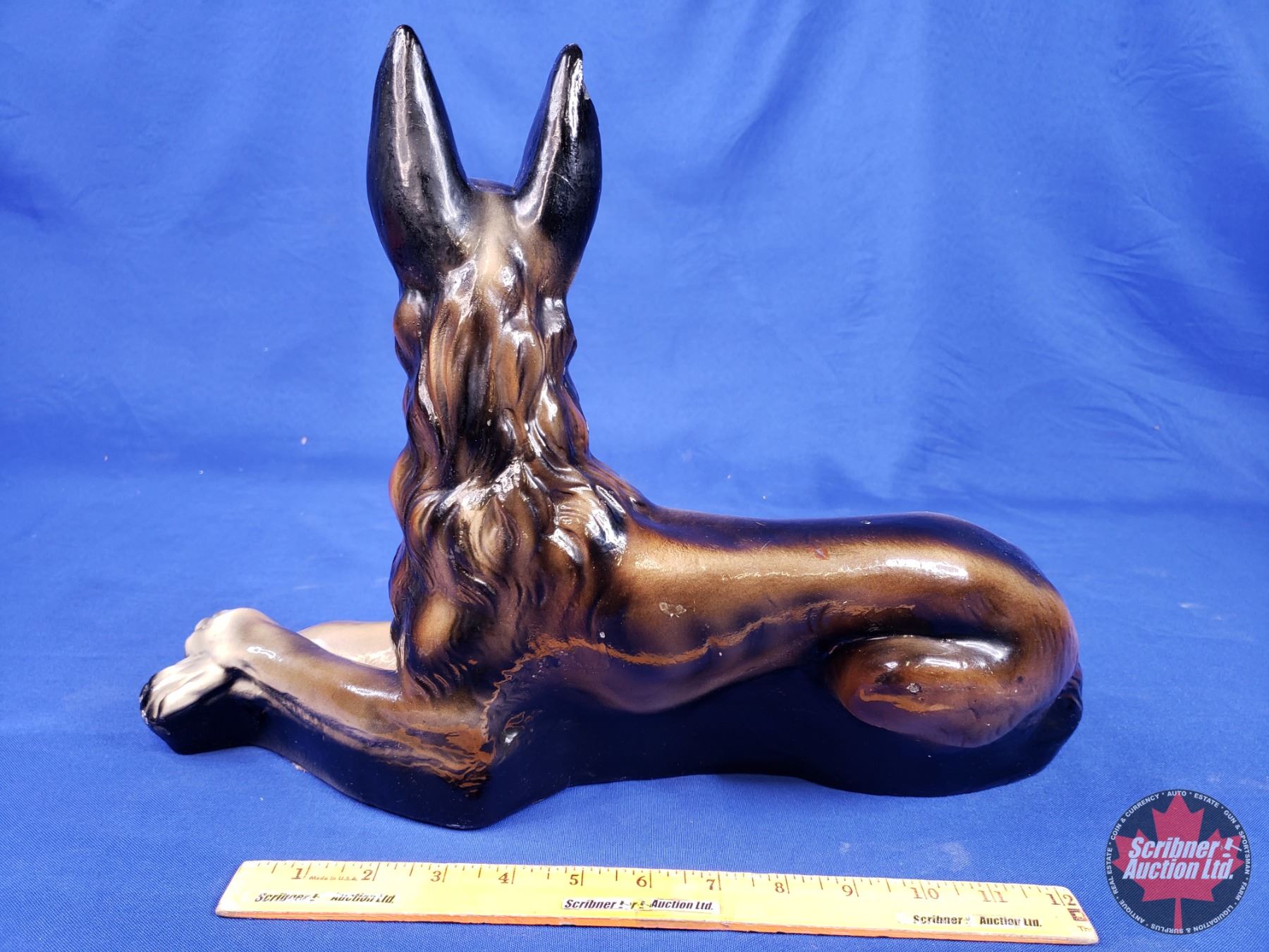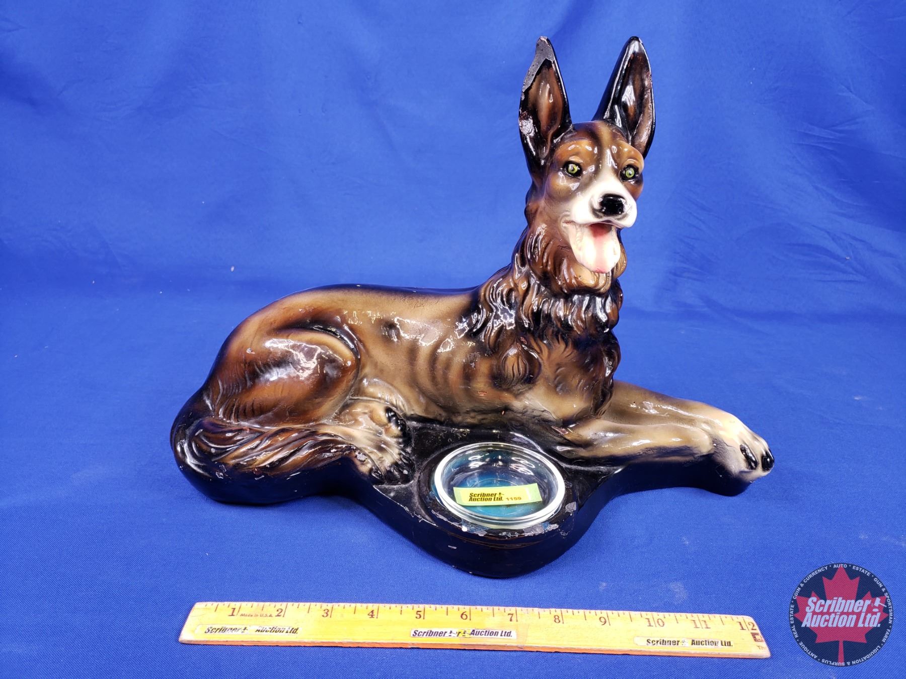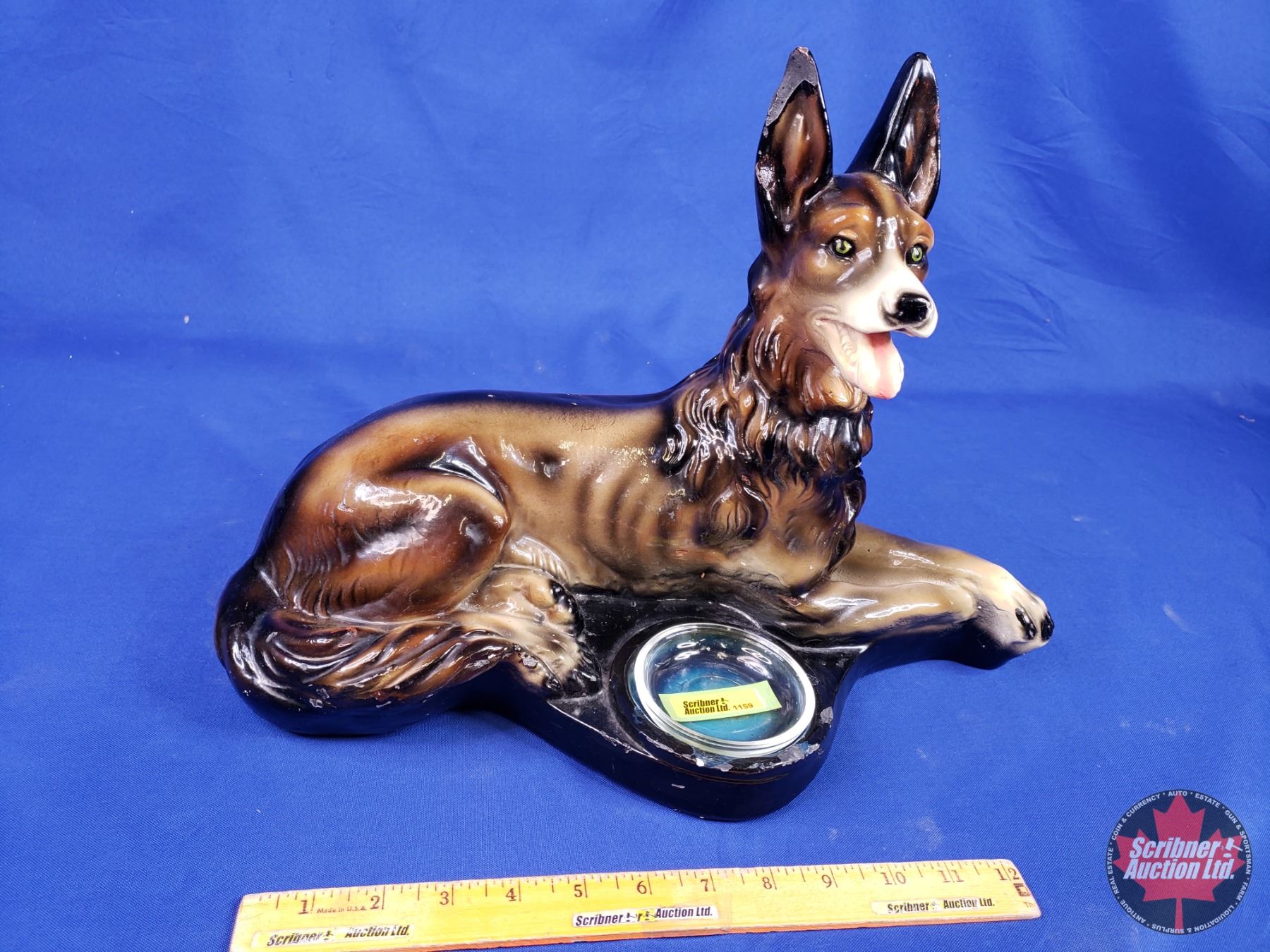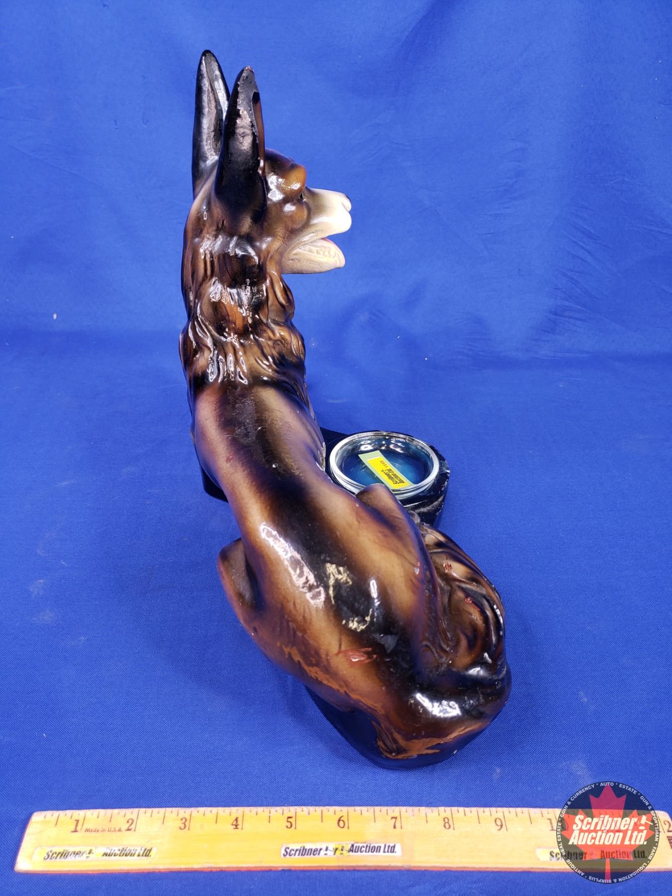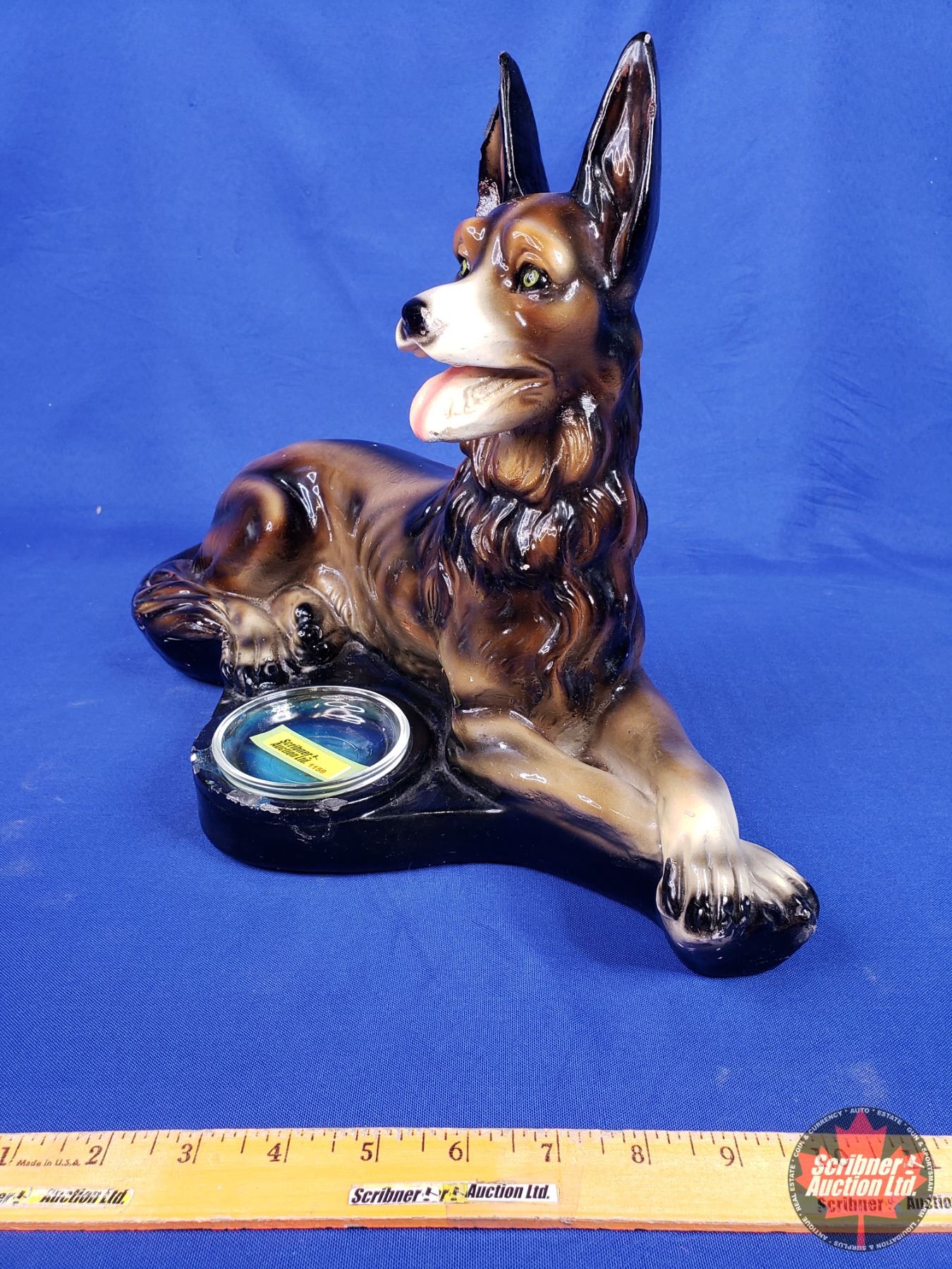 Chalkware German Shepherd Ashtray (12"H x 17"W x 9"D) (Note: Some surface wear) (SEE PICS!)