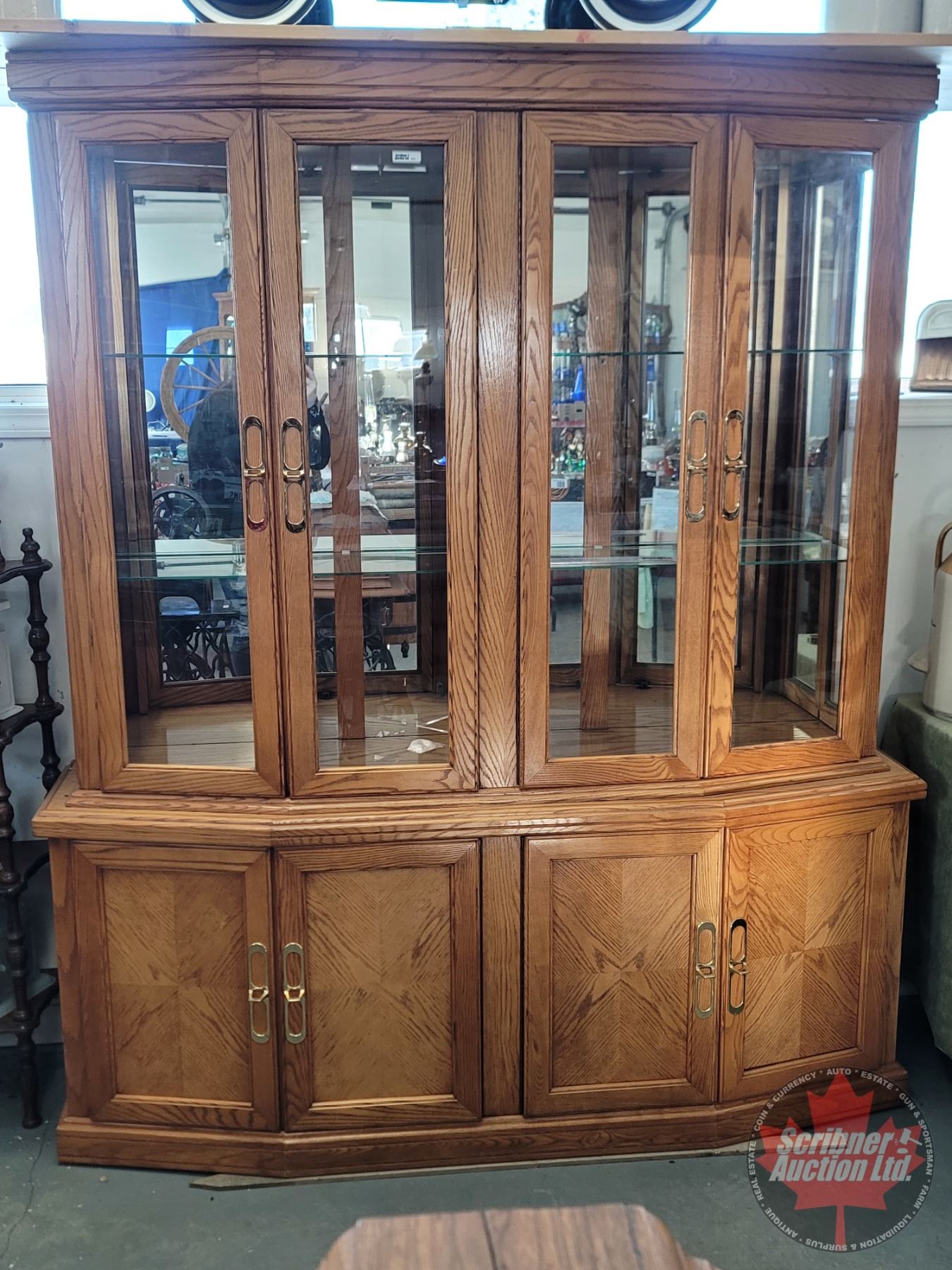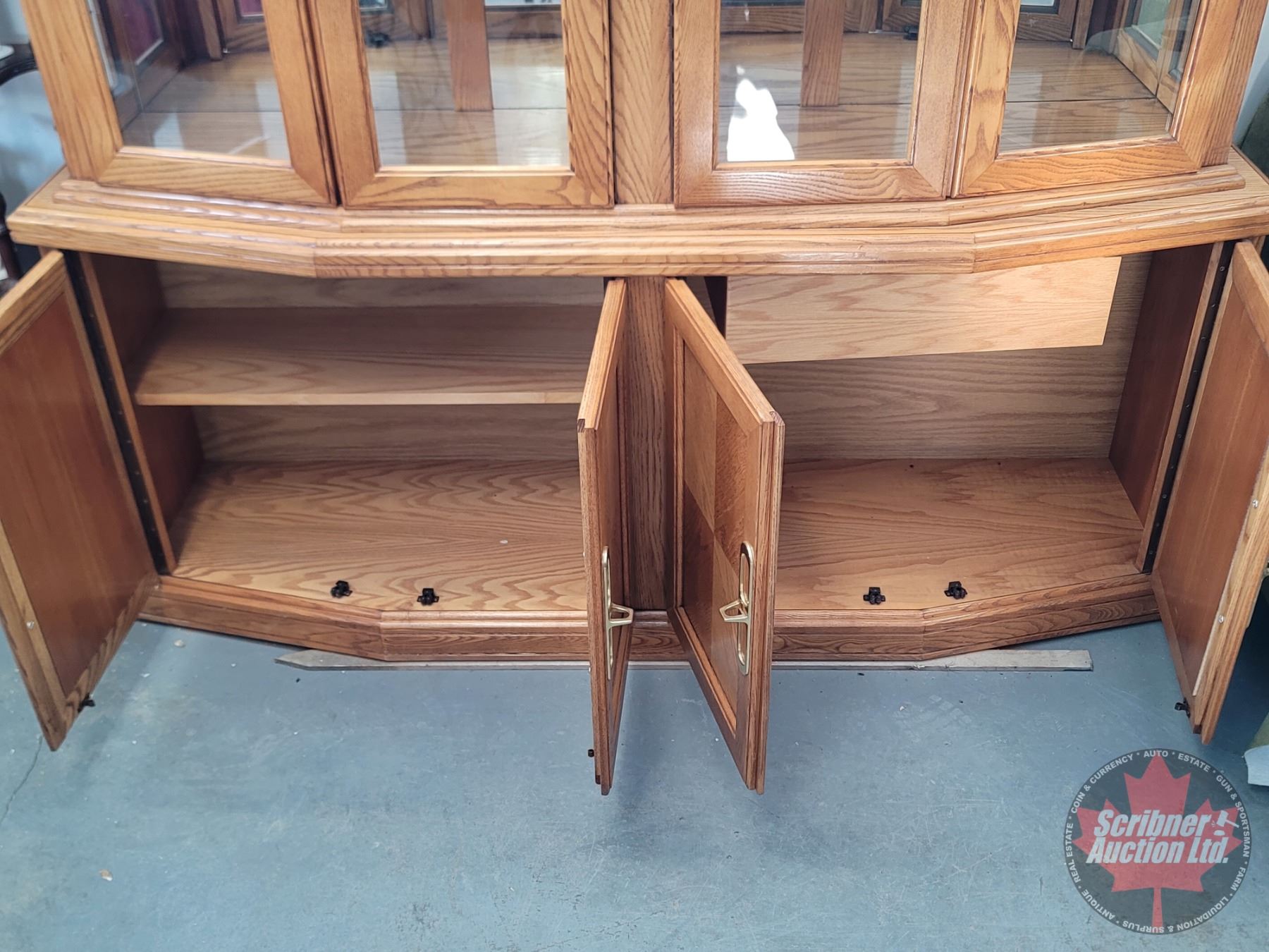 China Cabinet : 2 Piece : Upper 4 Glass Doors : 2 Glass Shelves :