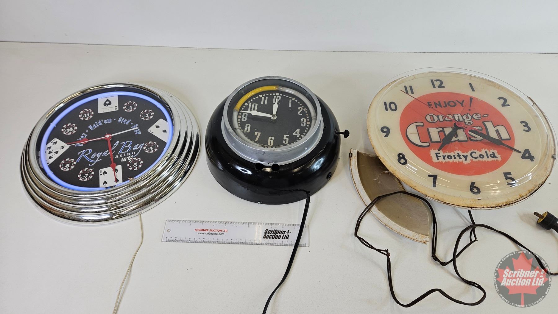 Clocks (Vintage/Modern) : Orange Crush; Royal Bay Casino; Neon