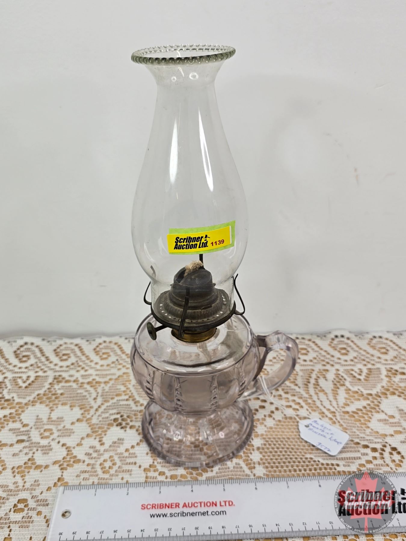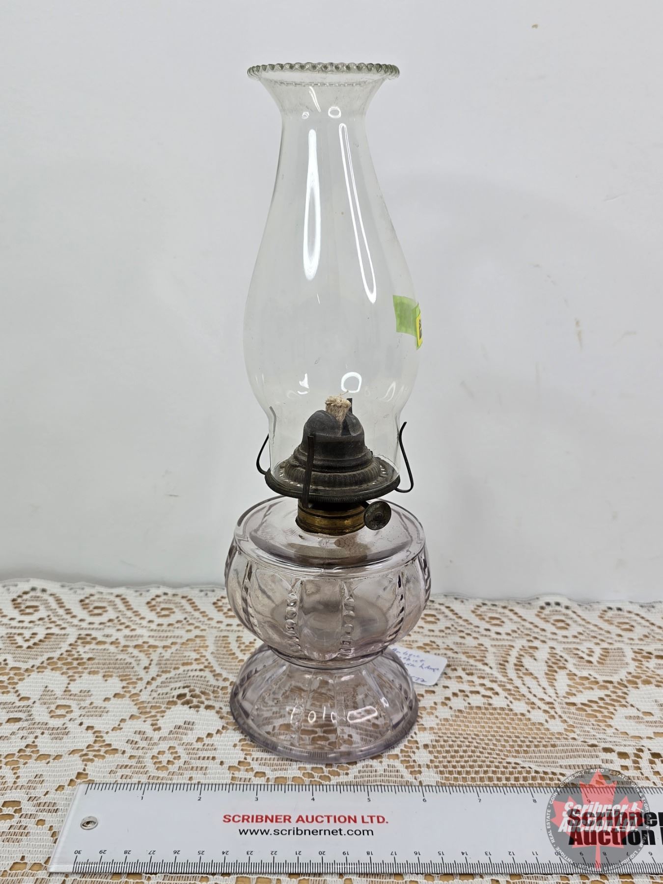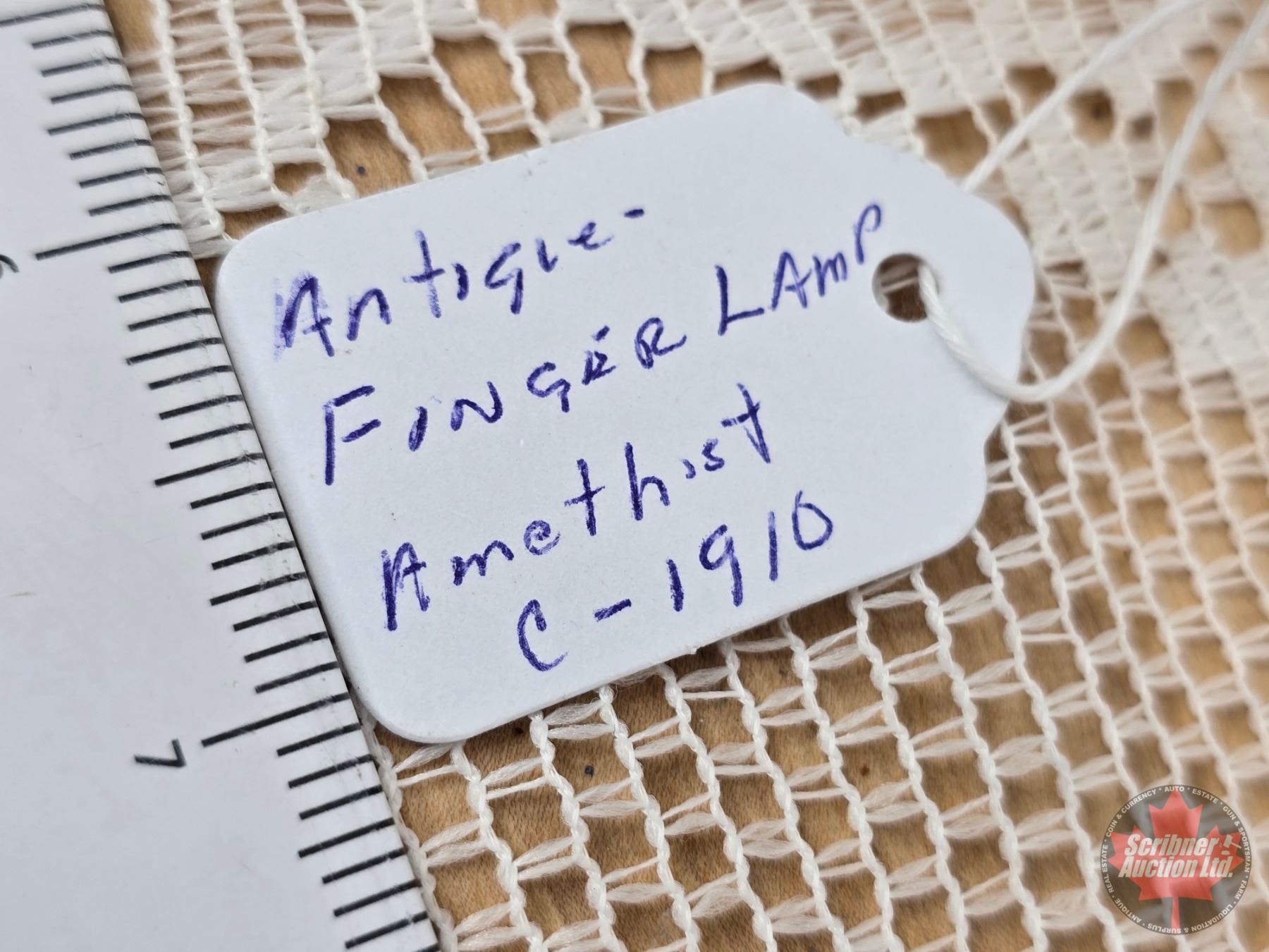 Coal Oil Finger Lamp : Amethyst Glass Font (Total Measures w/Chimney : 12-1/2"H) (SEE PICS!)