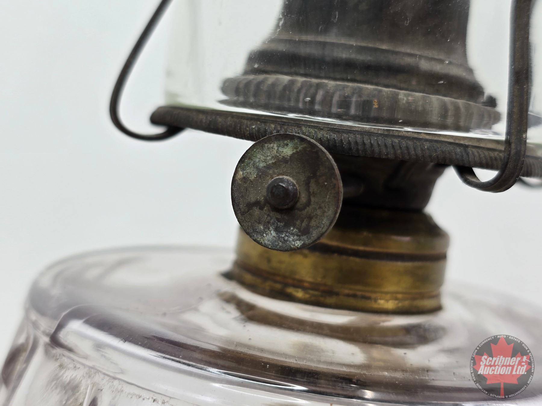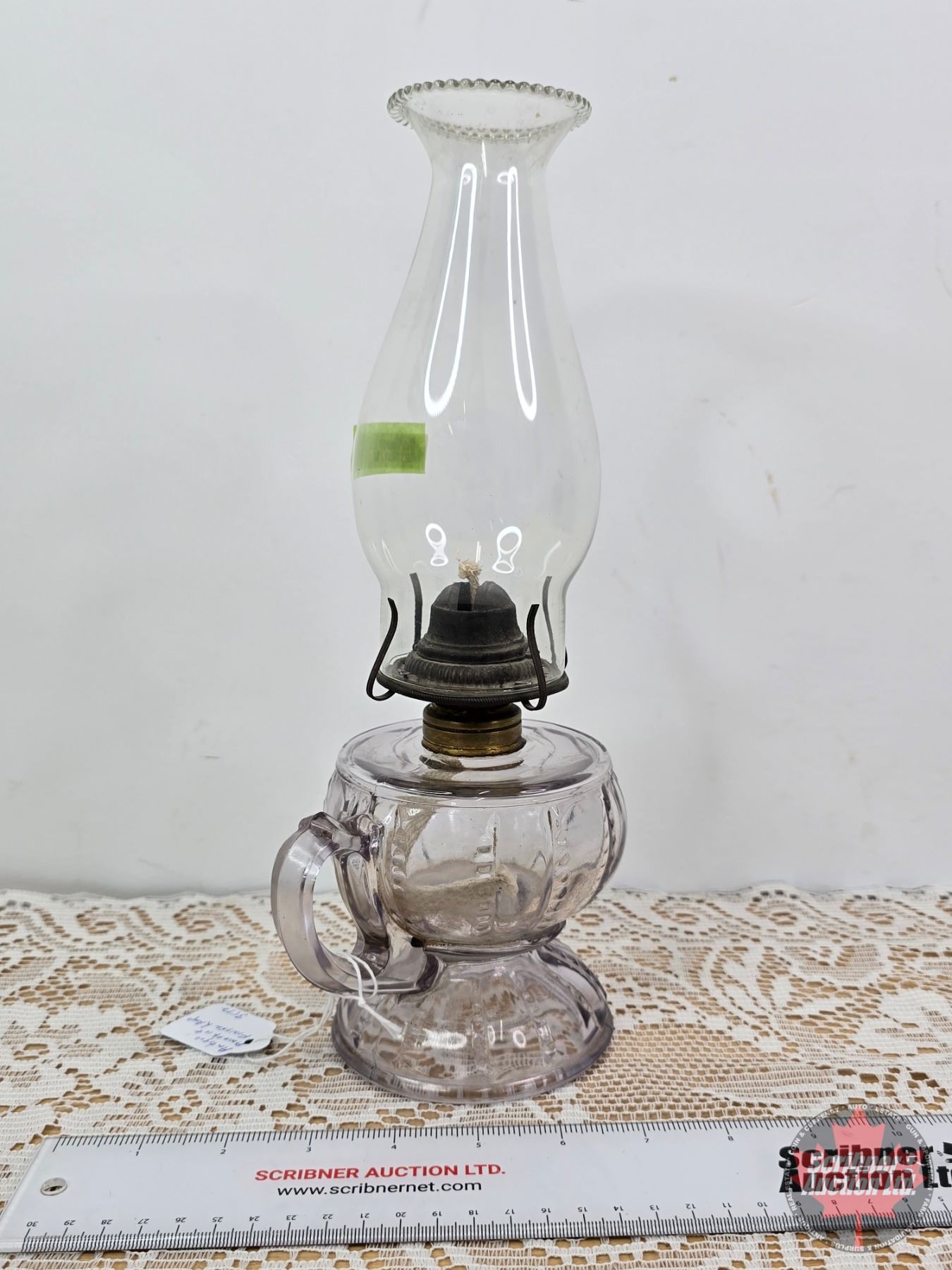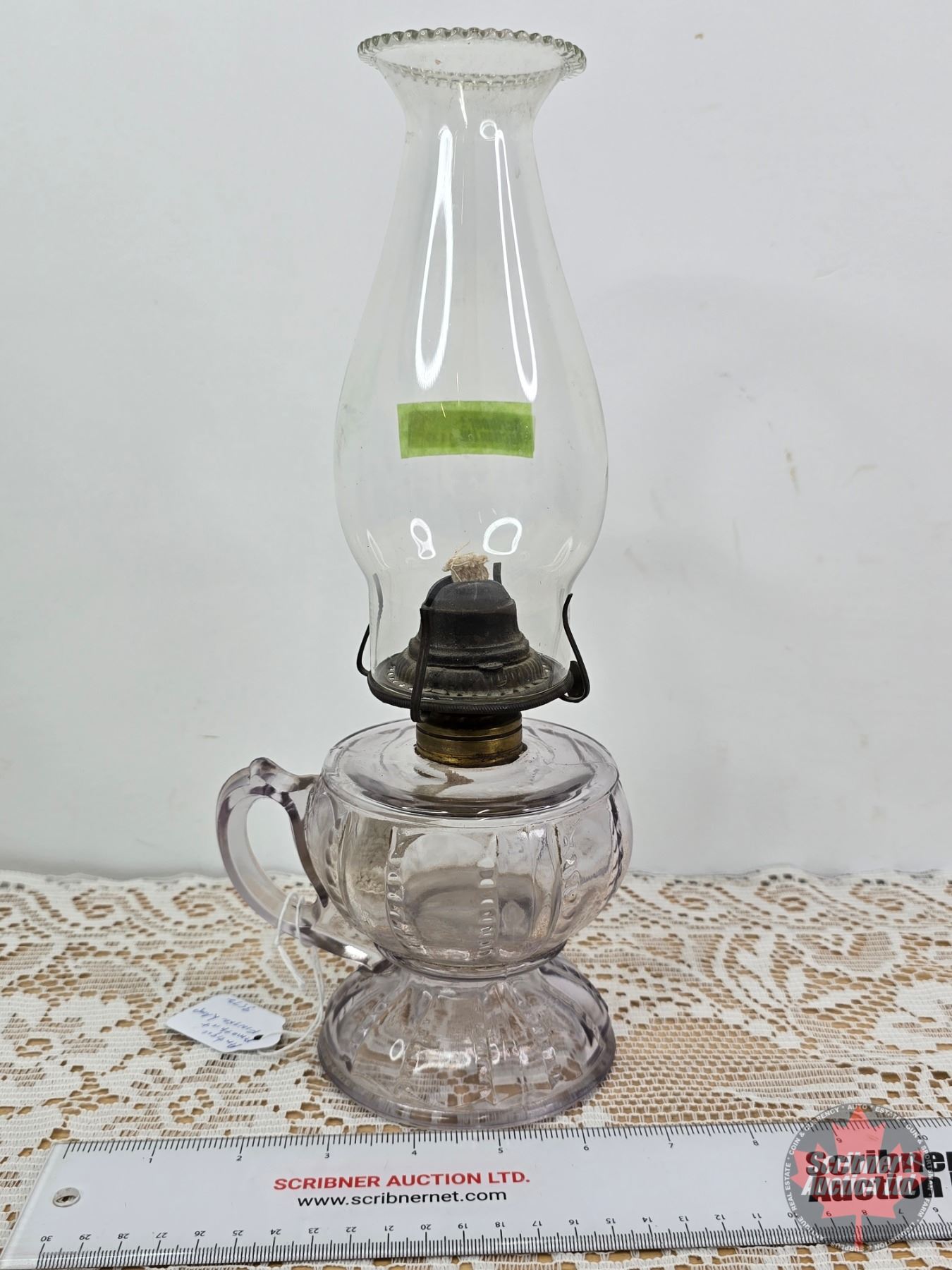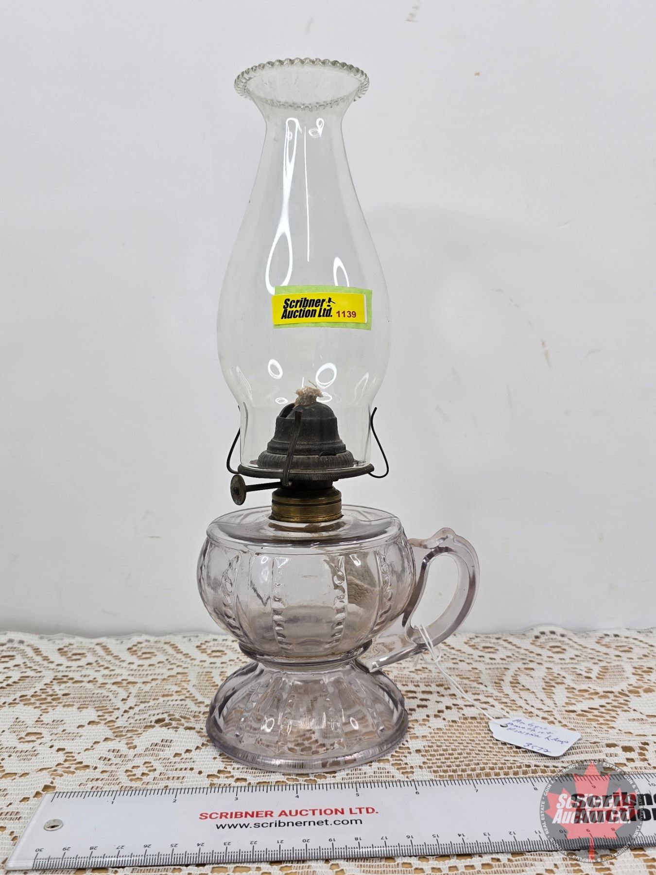 Coal Oil Finger Lamp : Amethyst Glass Font (Total Measures w/Chimney : 12-1/2"H) (SEE PICS!)