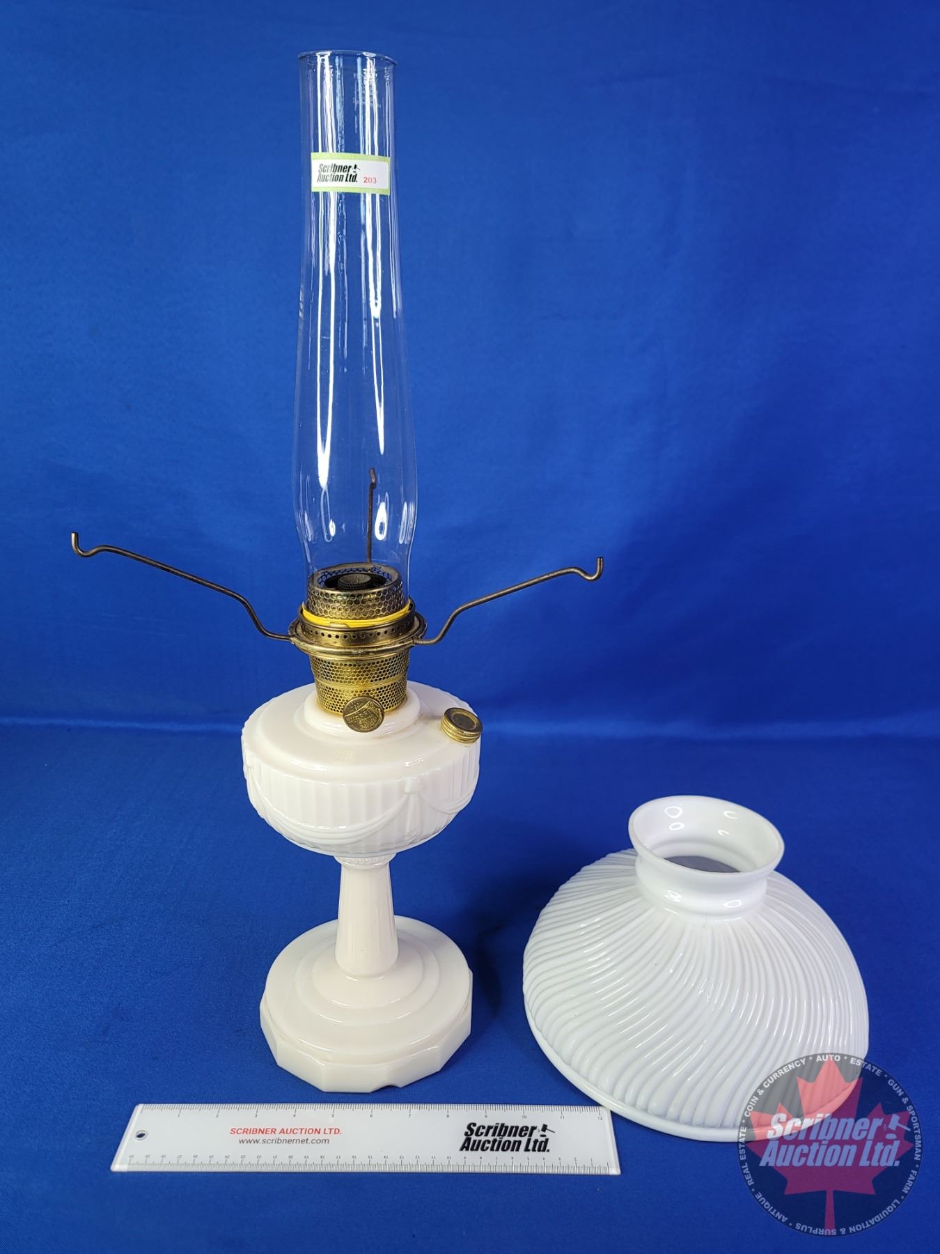 Coal Oil Lamp : Aladdin : Lincoln Drape : Milk Glass Shade : Model B Burner