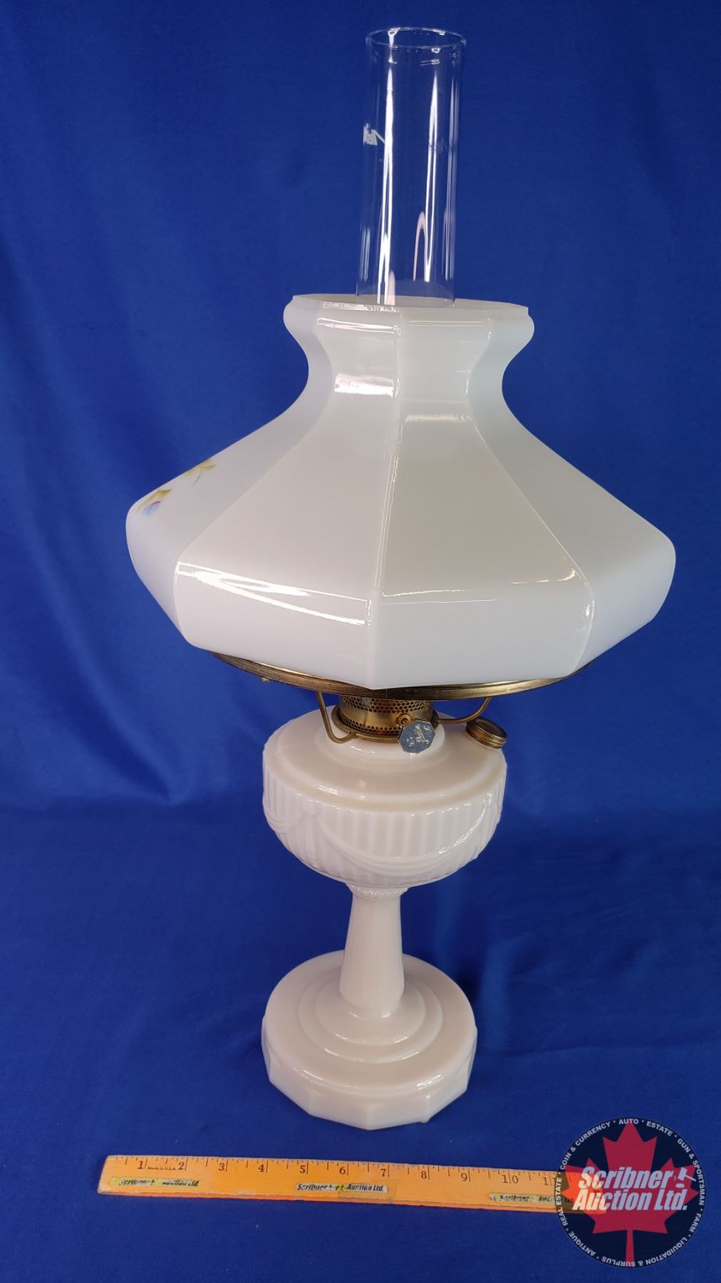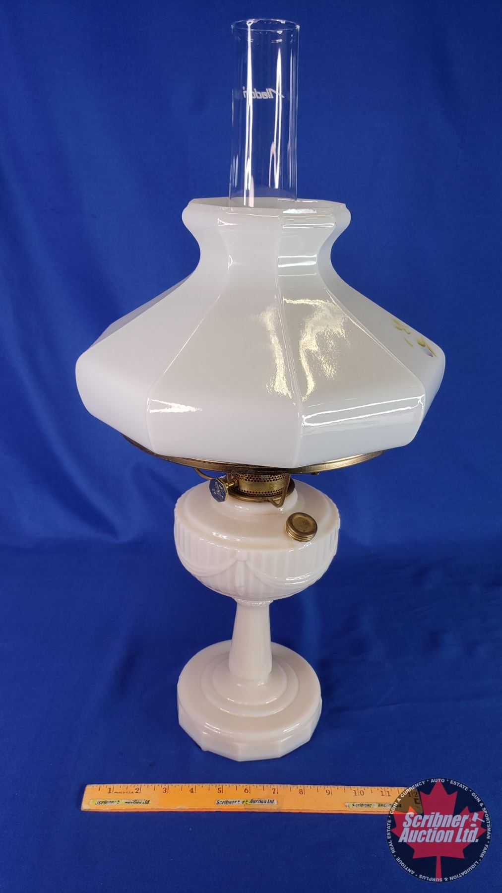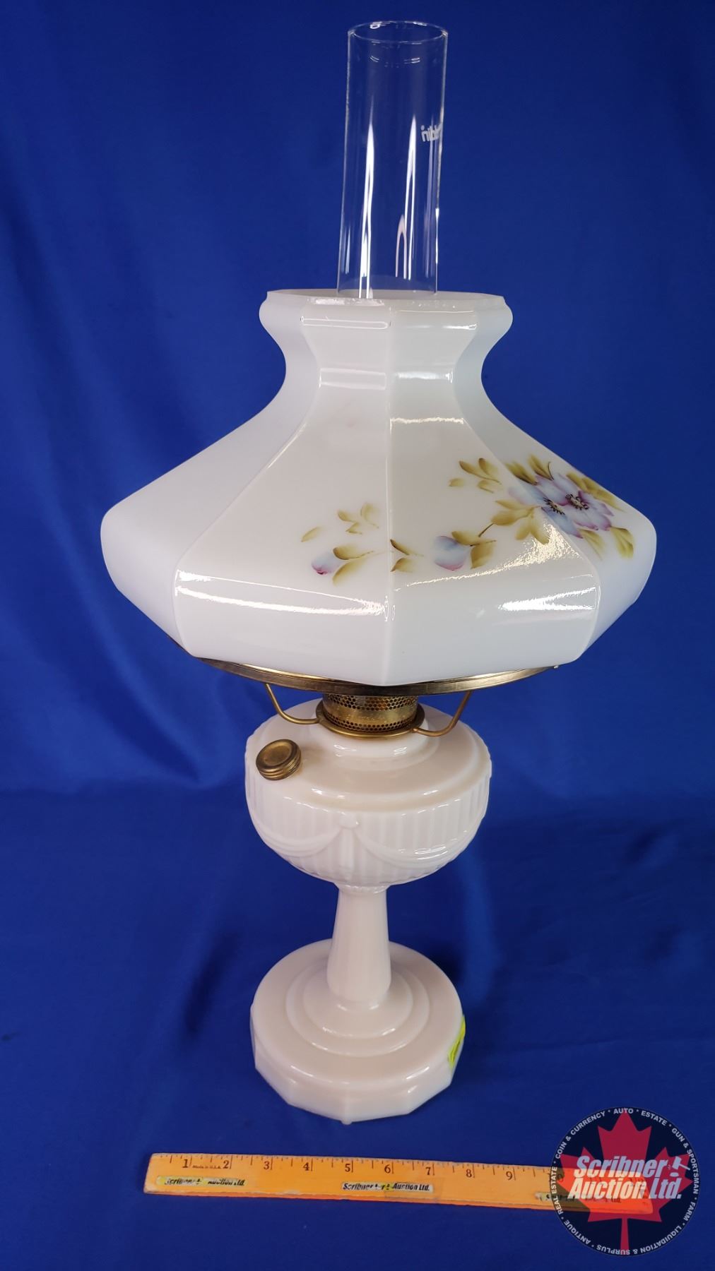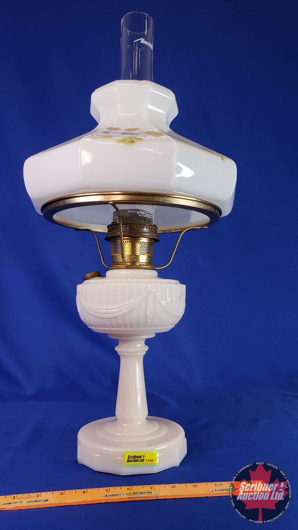 Coal Oil Lamp: Aladdin Lincoln Drape (Pinkish) Floral Shade #23 Burner (25-1/2"H Total with Chimney) (SEE PICS!)
