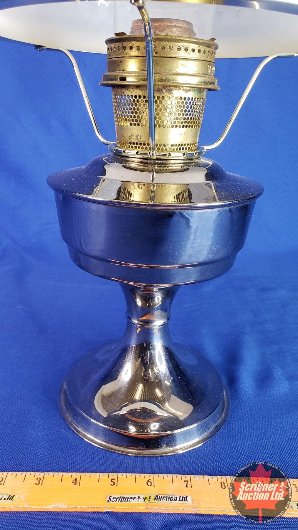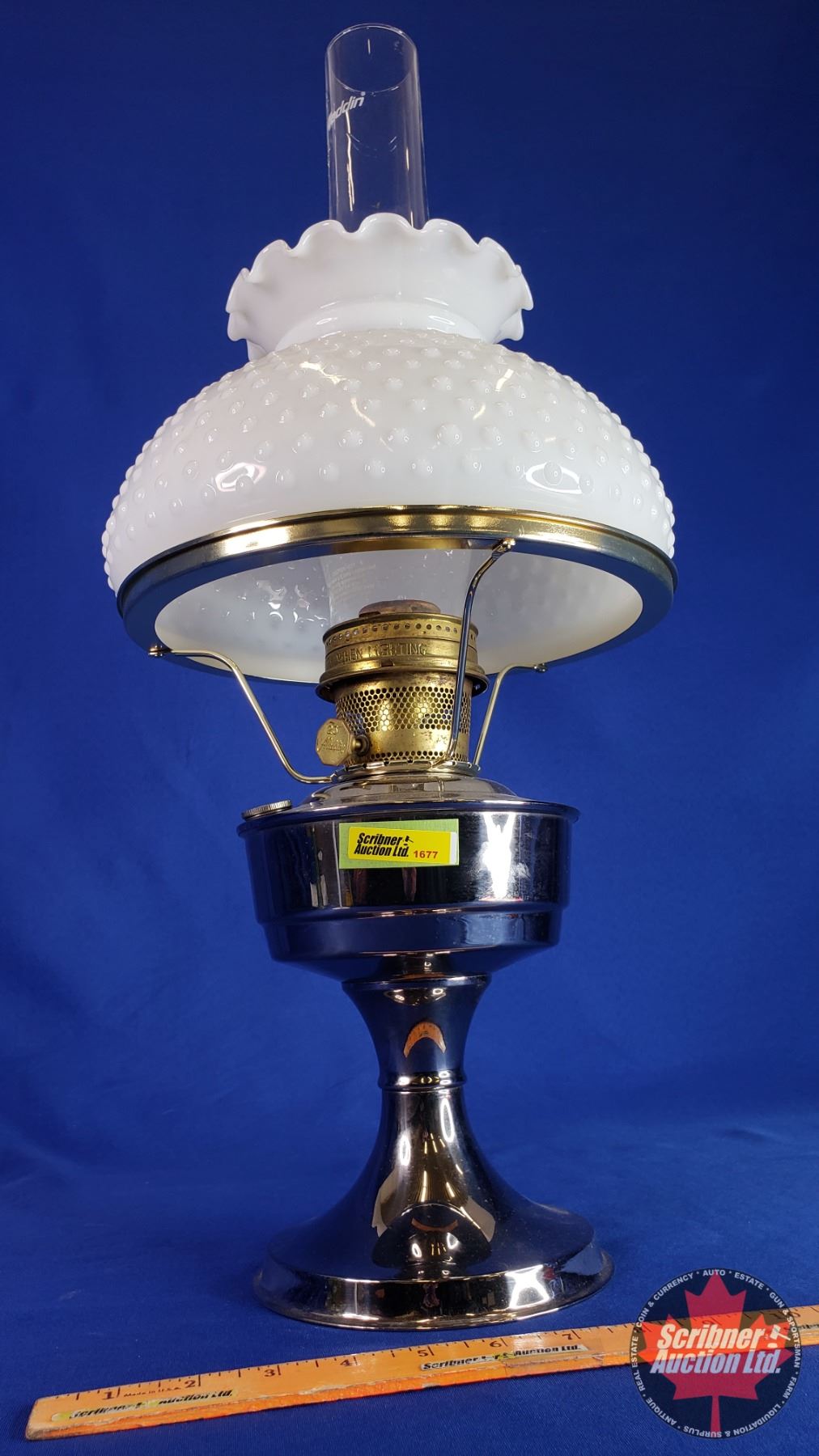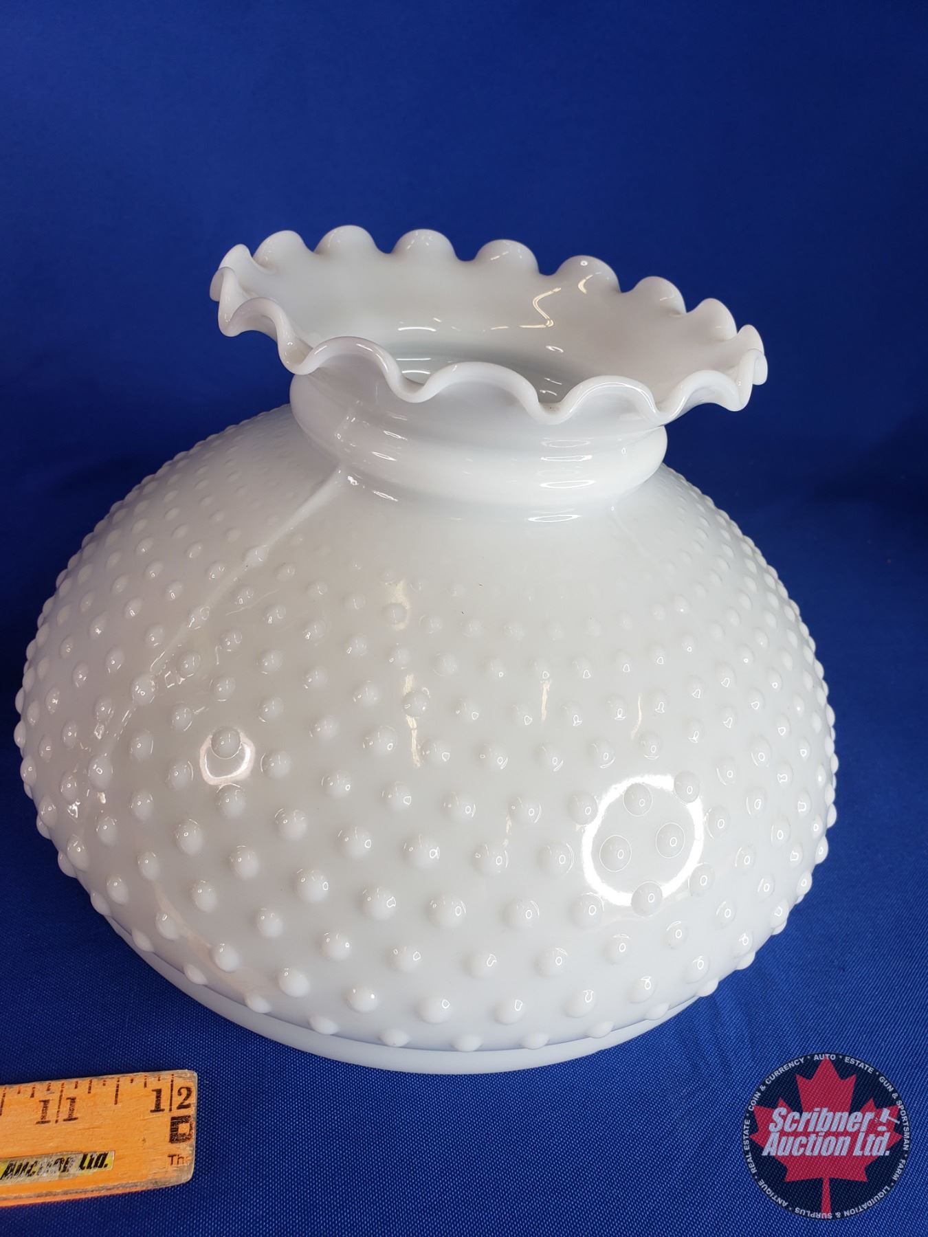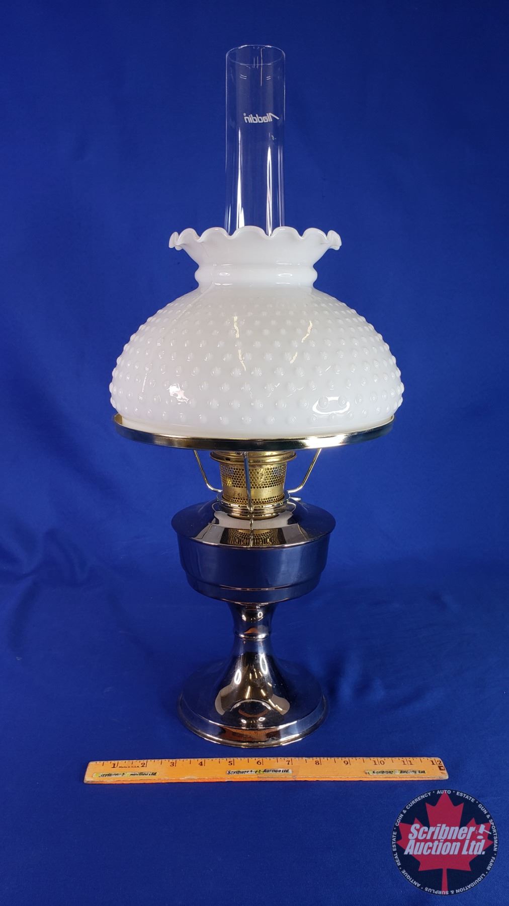 Coal Oil Lamp: Metal Pedestal Base/Font with White Hobnail Shade (#23 Burner) (24"H Total with Chimney) (SEE PICS!)