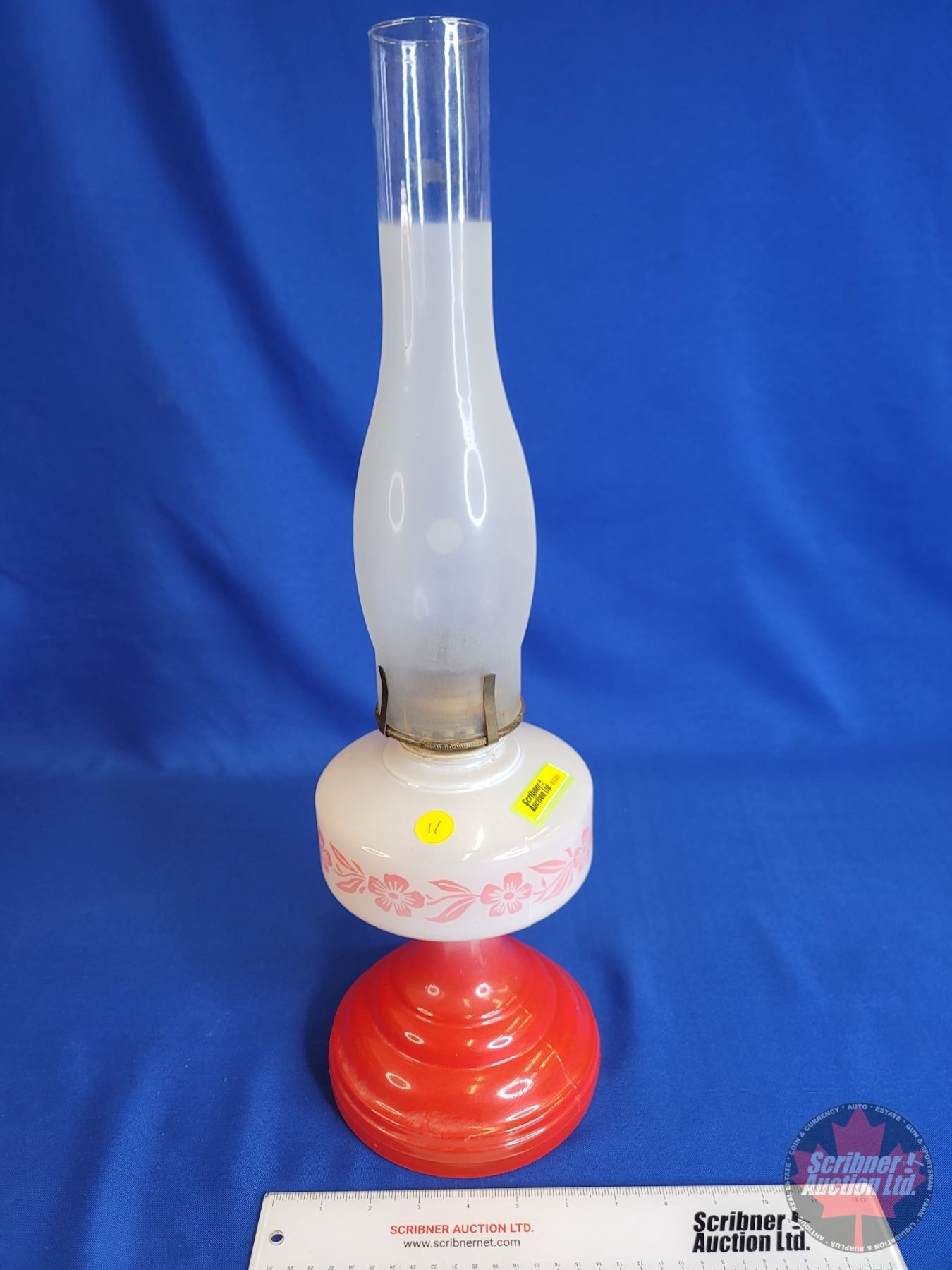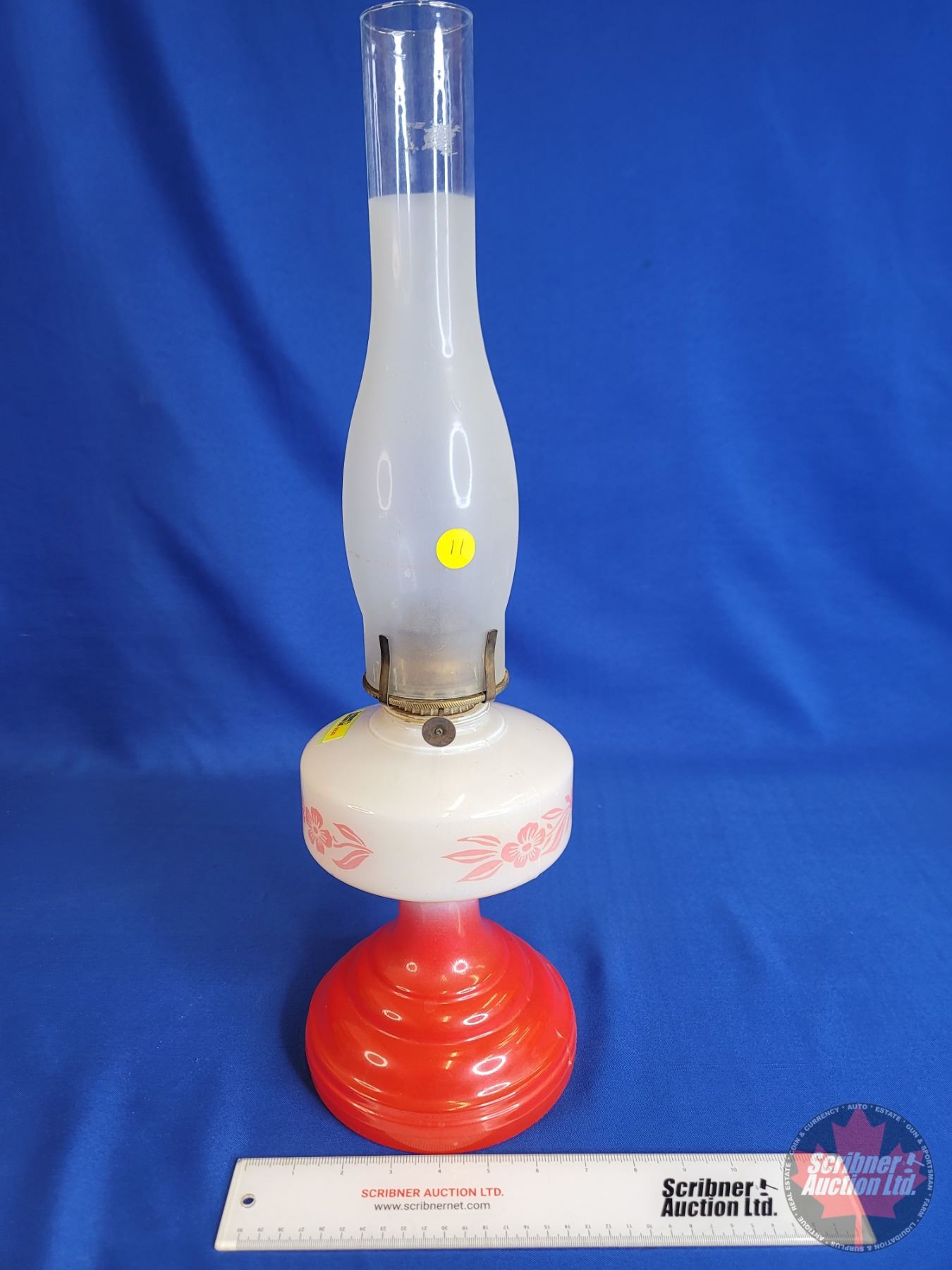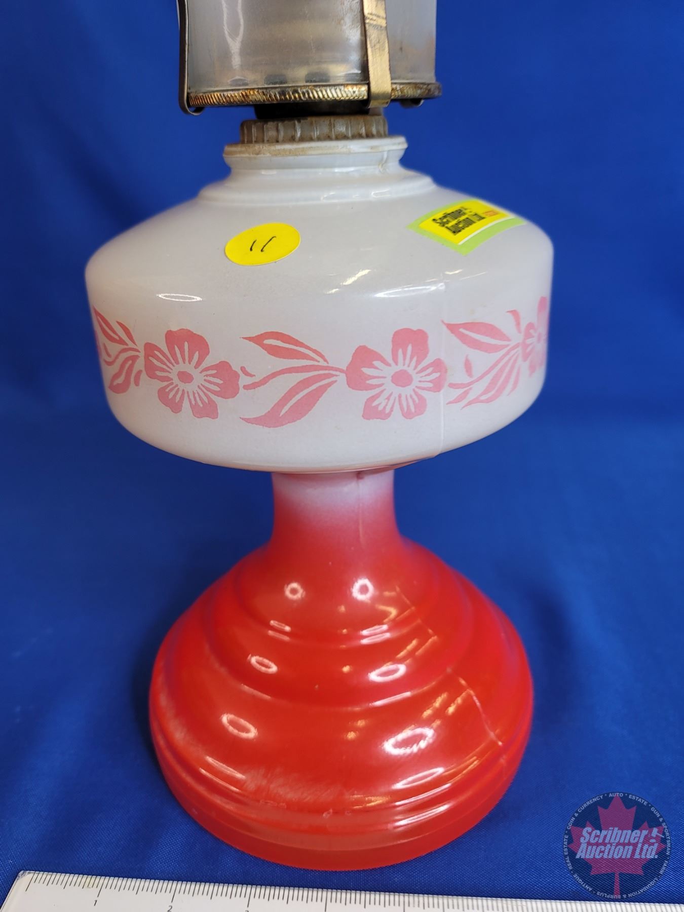 Coal Oil Lamp : Red & White ; Queen Mary Burner