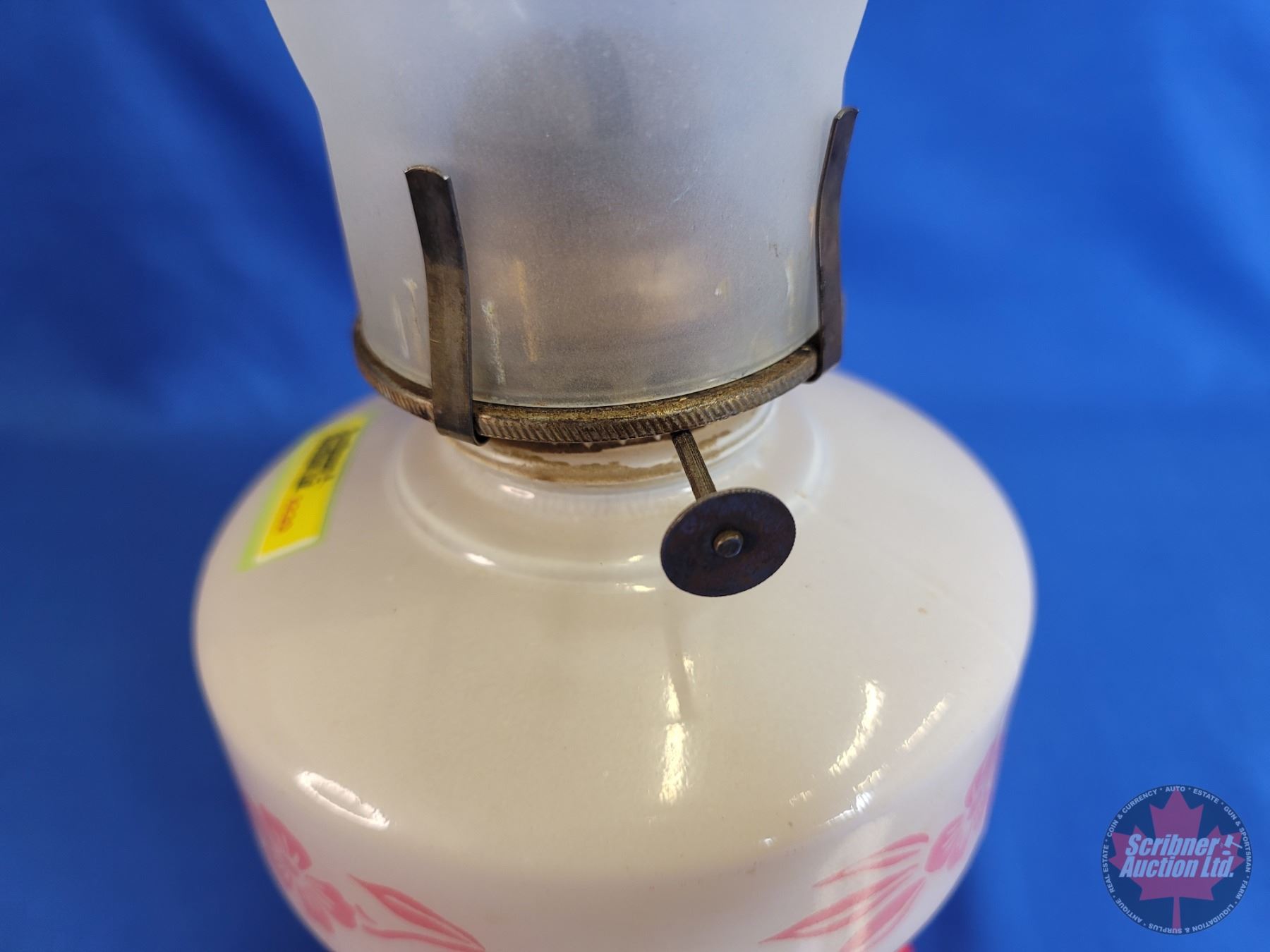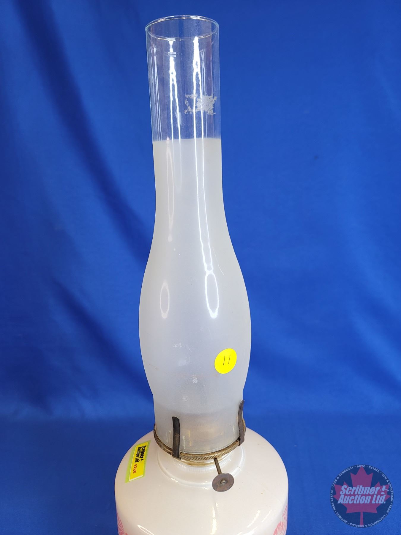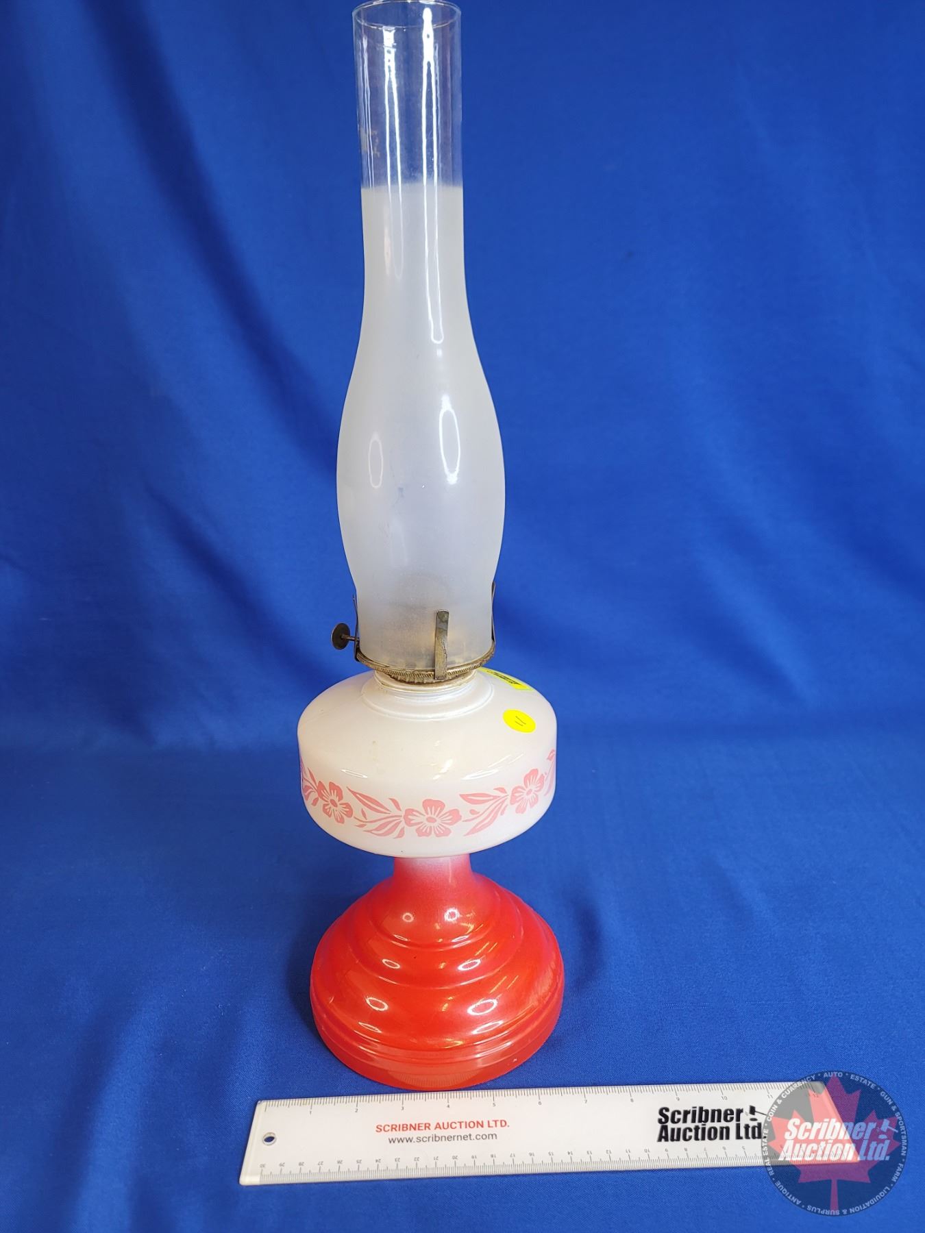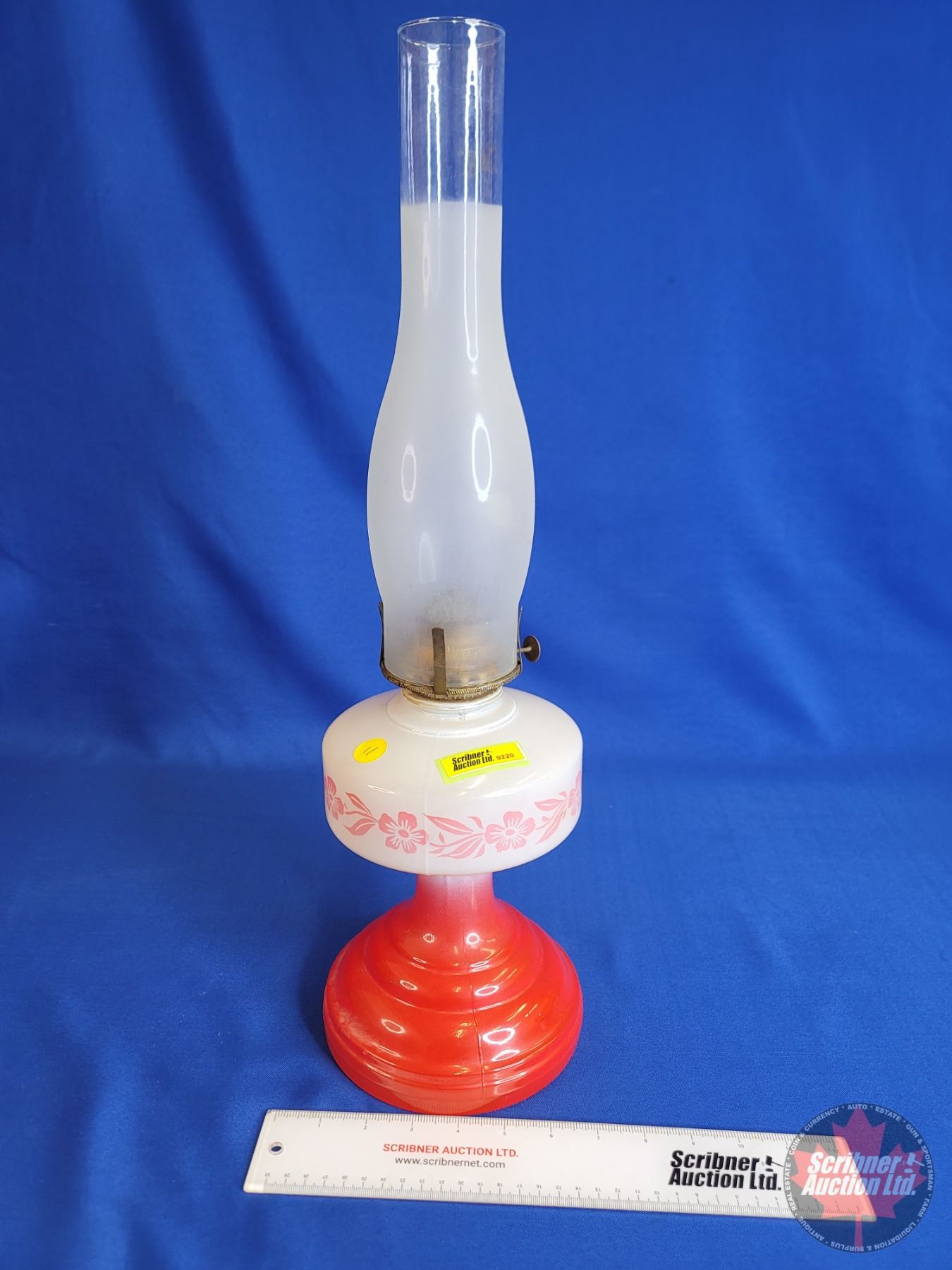 Coal Oil Lamp : Red & White ; Queen Mary Burner