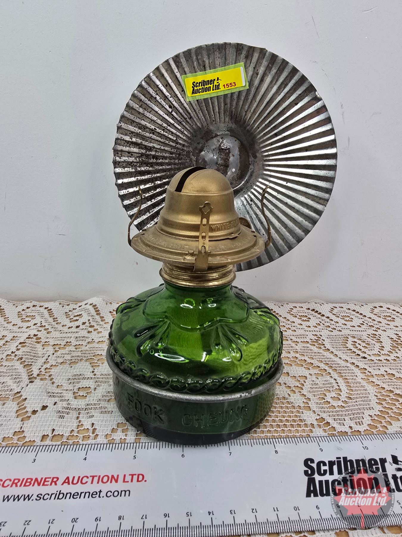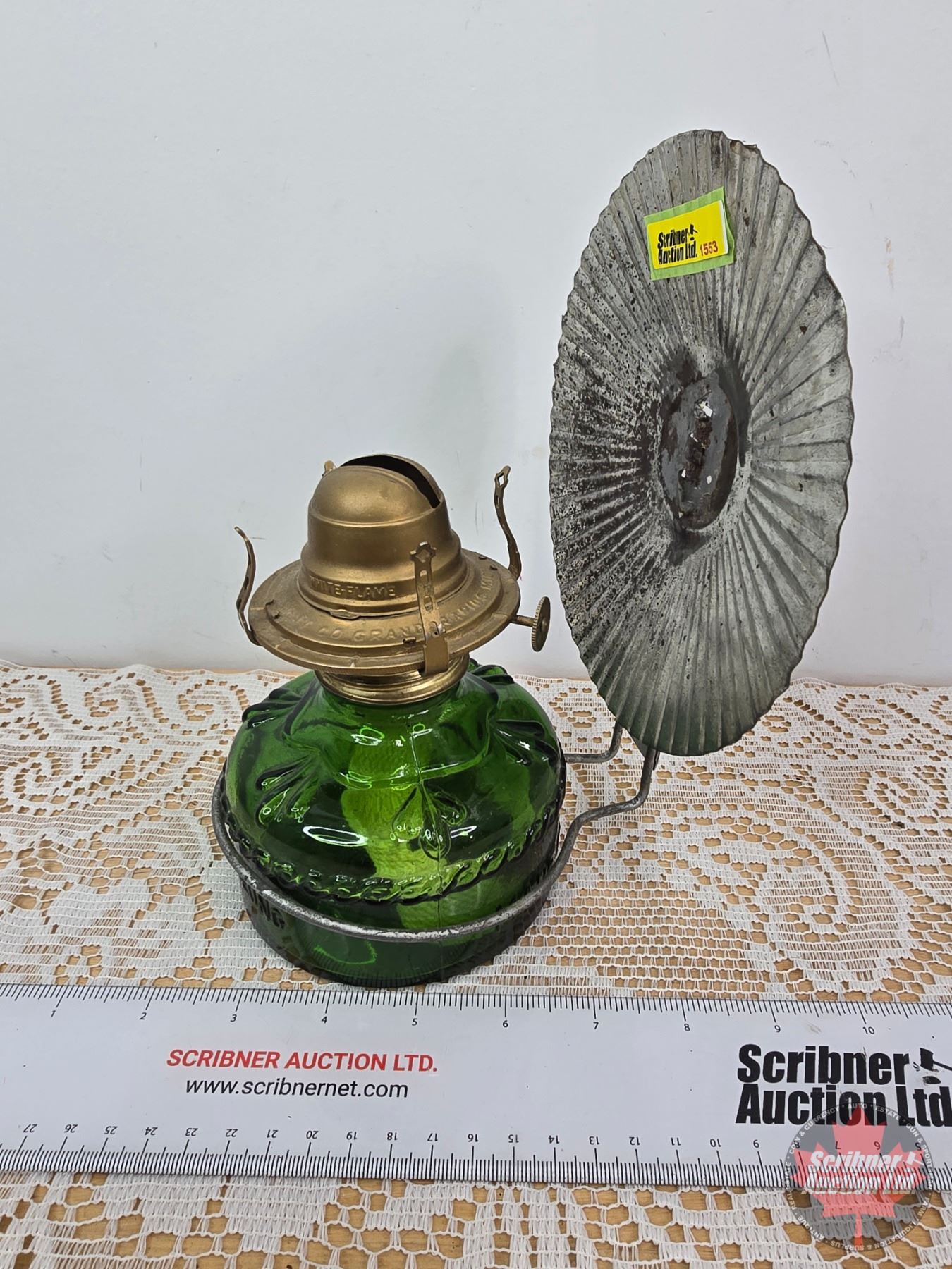 Coal Oil Lamp w/Bracket & Reflector (Green Glass - Made in Hong Kong)