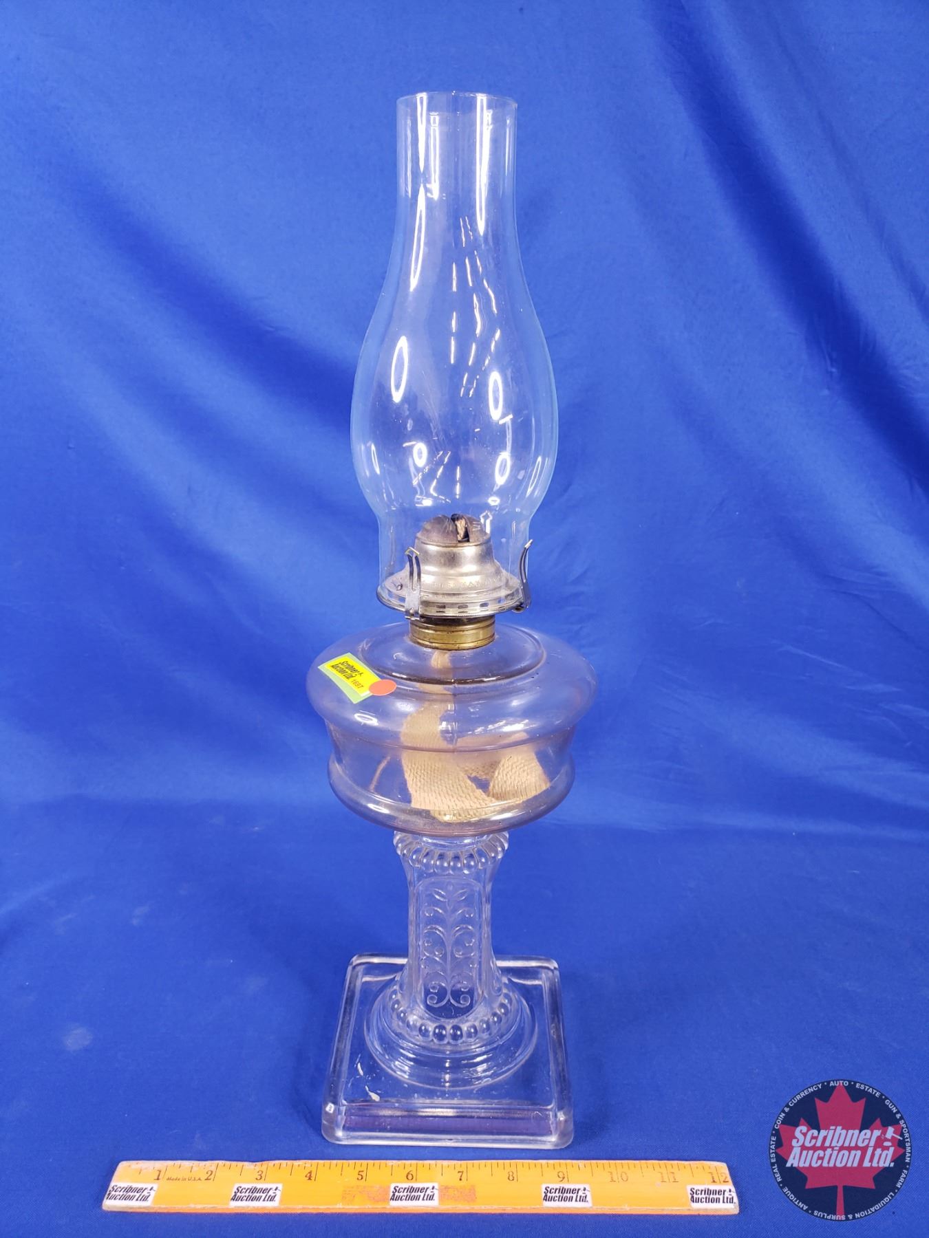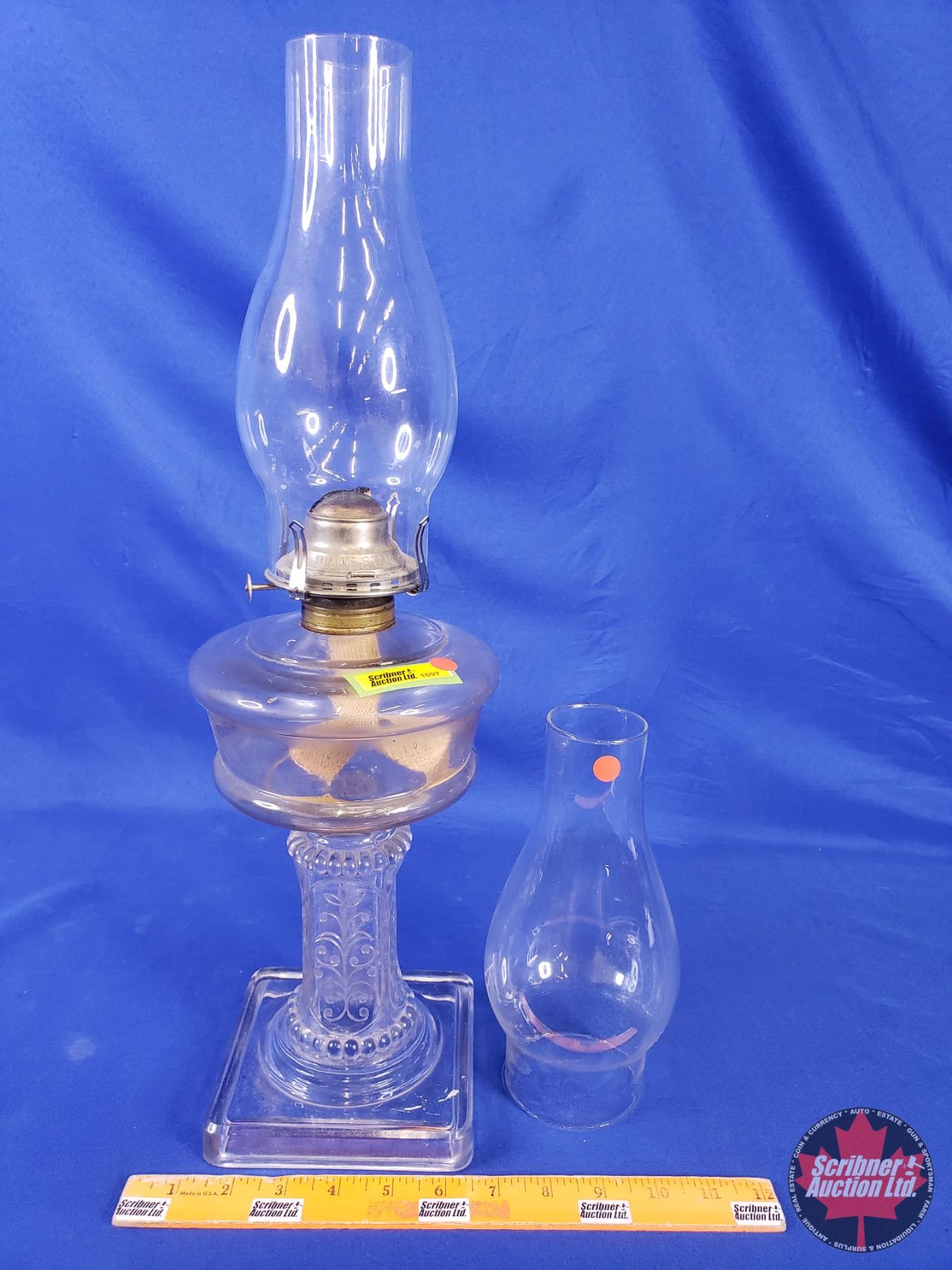 Coal Oil Pedestal Lamp : "White Star" Burner c/w Extra Chimney (20"H Measured with Chimney) (SEE PICS!)