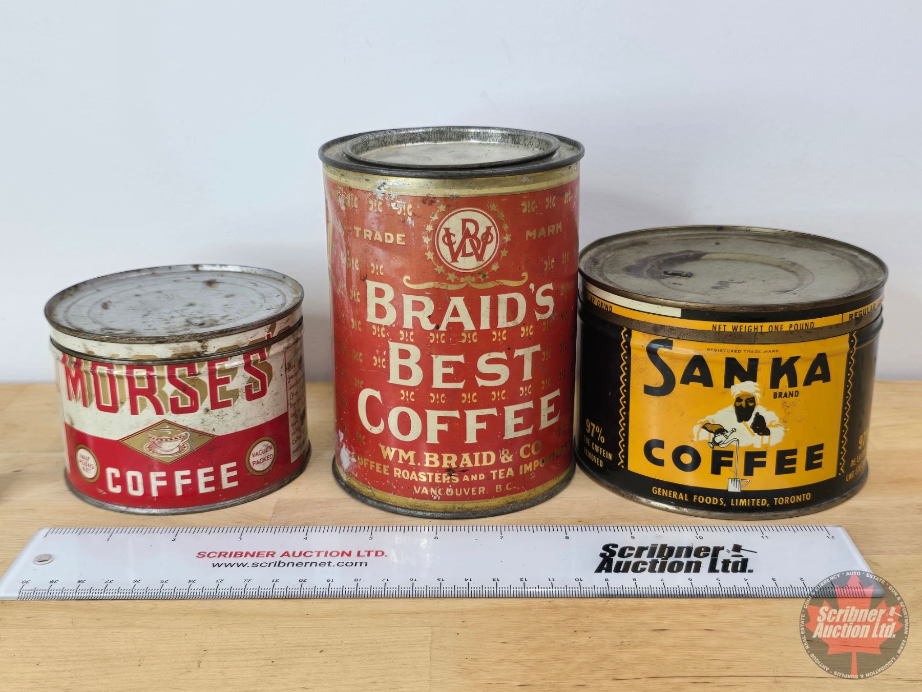 Coffee Tin Combo (3): BRAID'S BEST ; MORSES ; SANKA