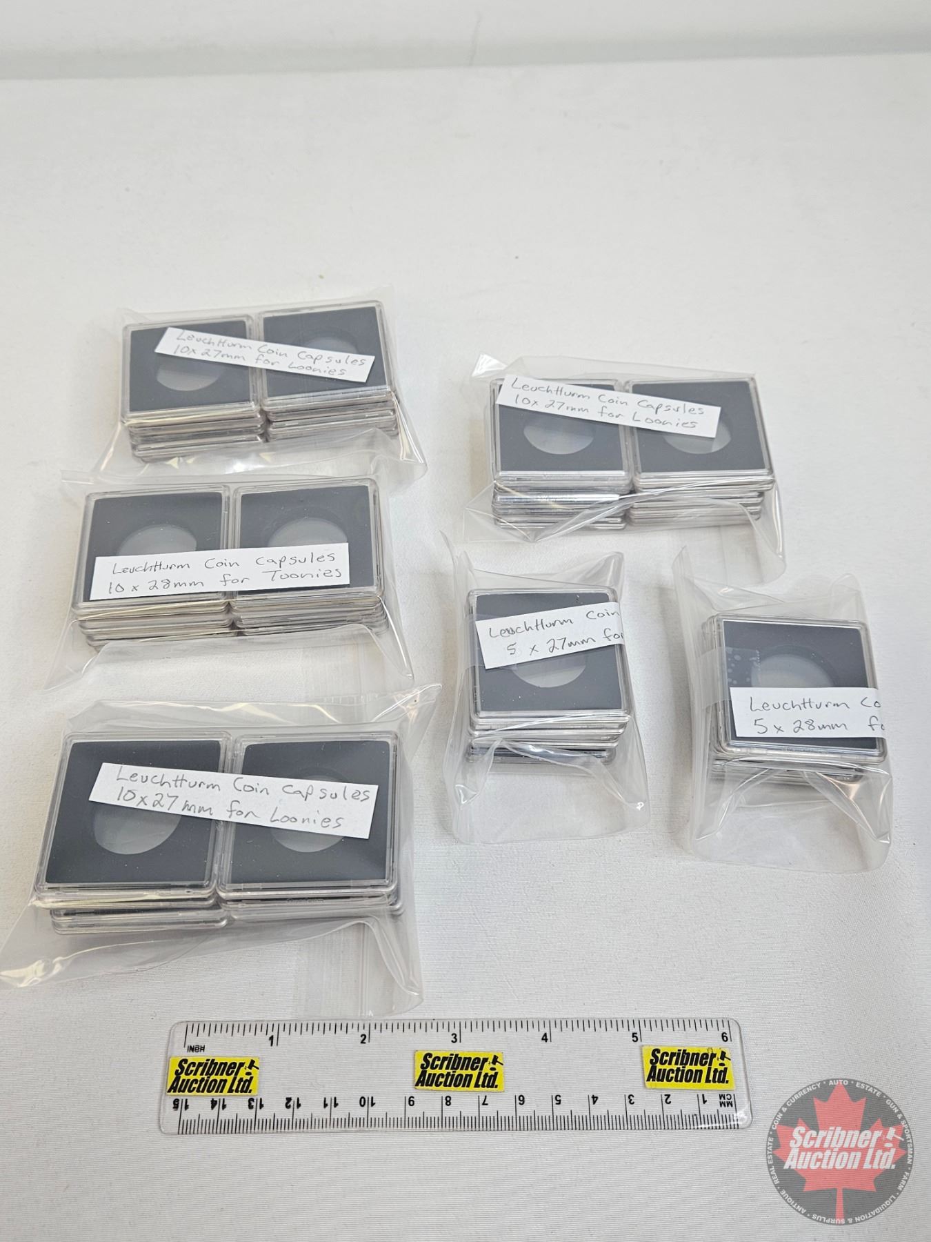 Coin Capsules (50) : 27mm Loonie (30) & 28mm Toonie (20) (EMPTY)