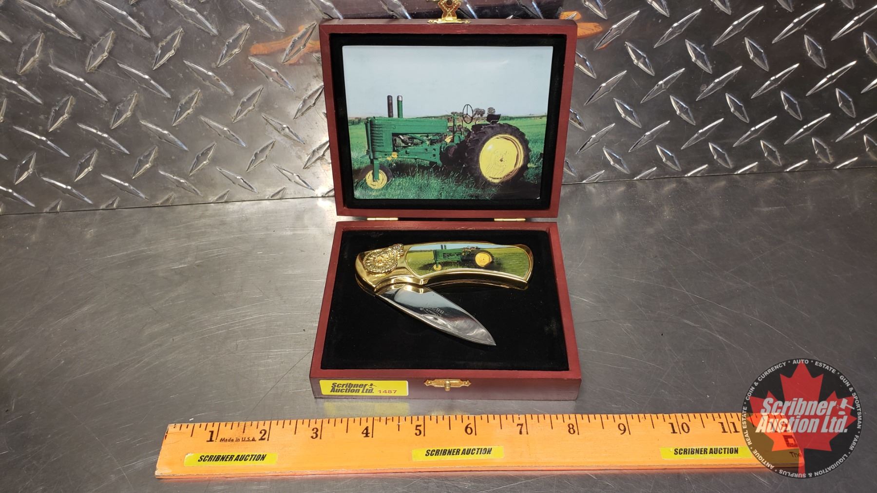 Collectible Lock Blade Knife w/John Deere Tricycle Tractor Picture on Handle