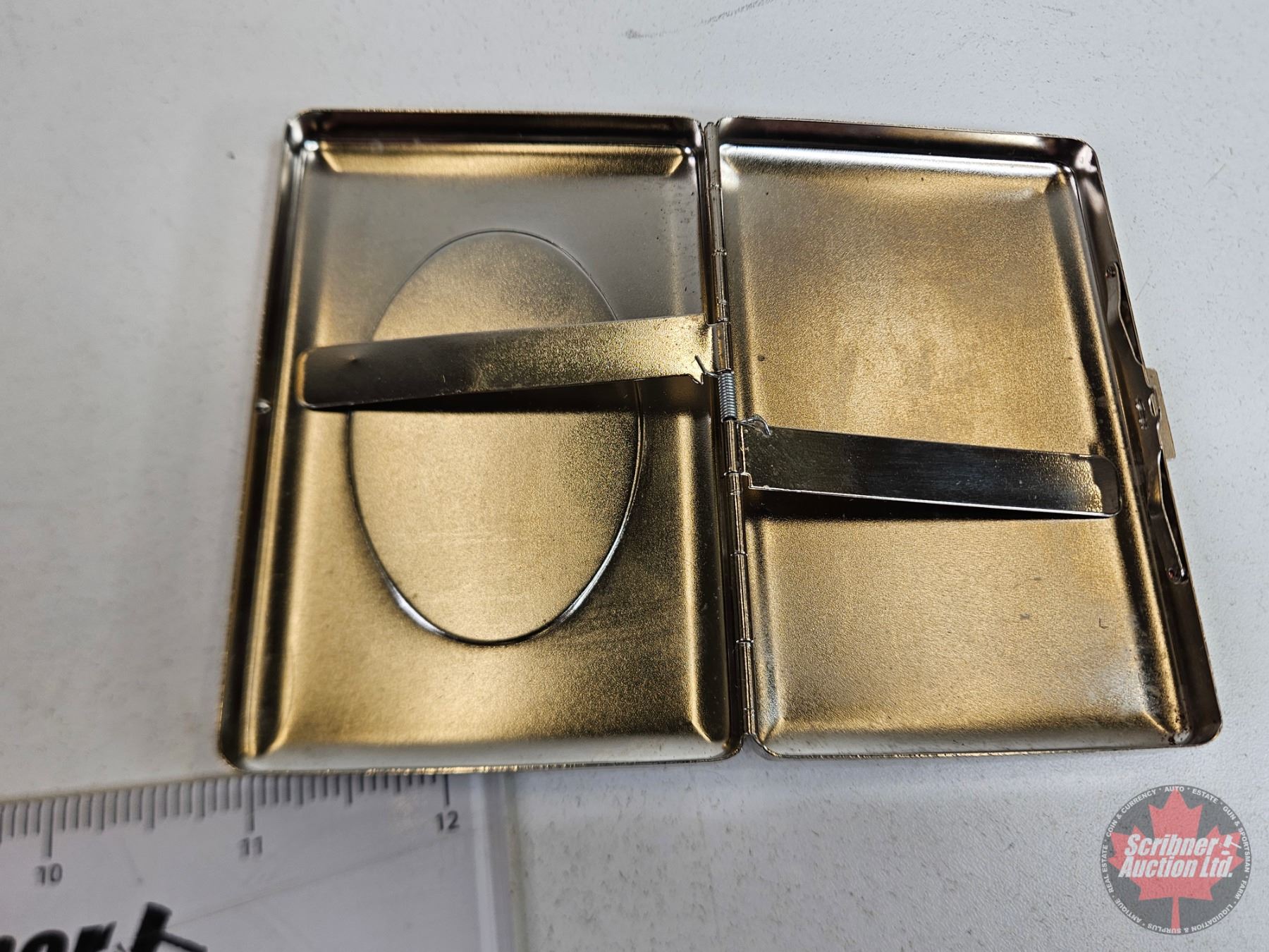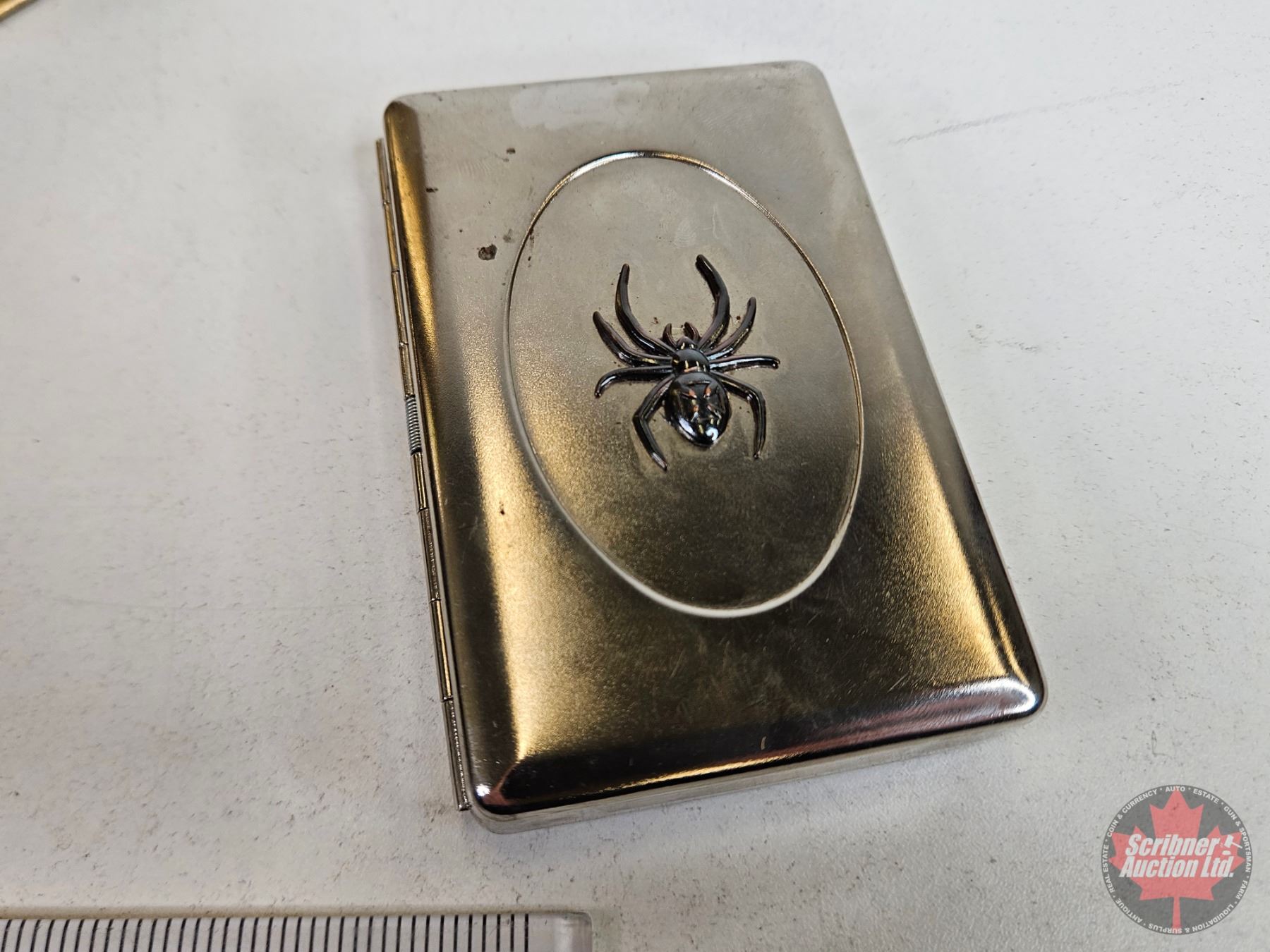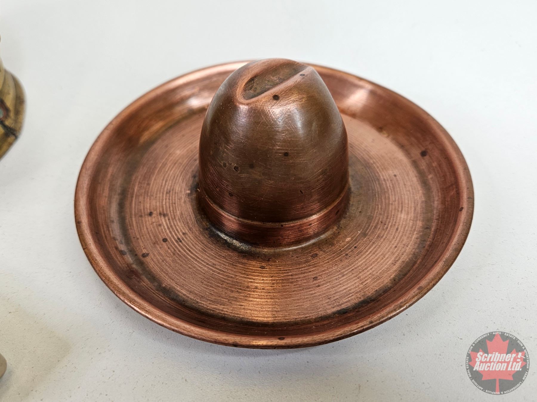 Collector Combo: Brass Lion Head Jardiniere, Avon Pipe, Coppercraft Hat Ashtray, Cigarette Case