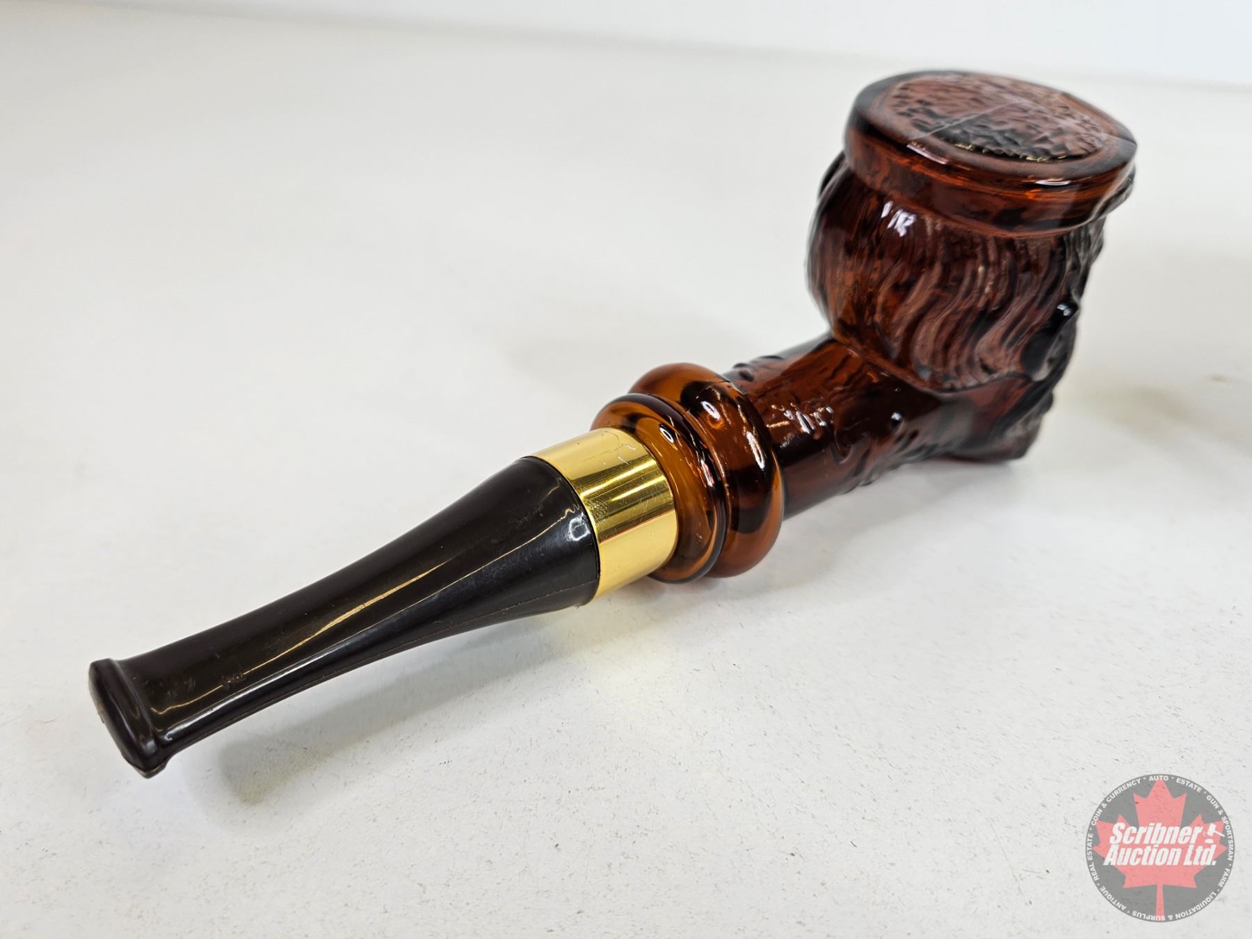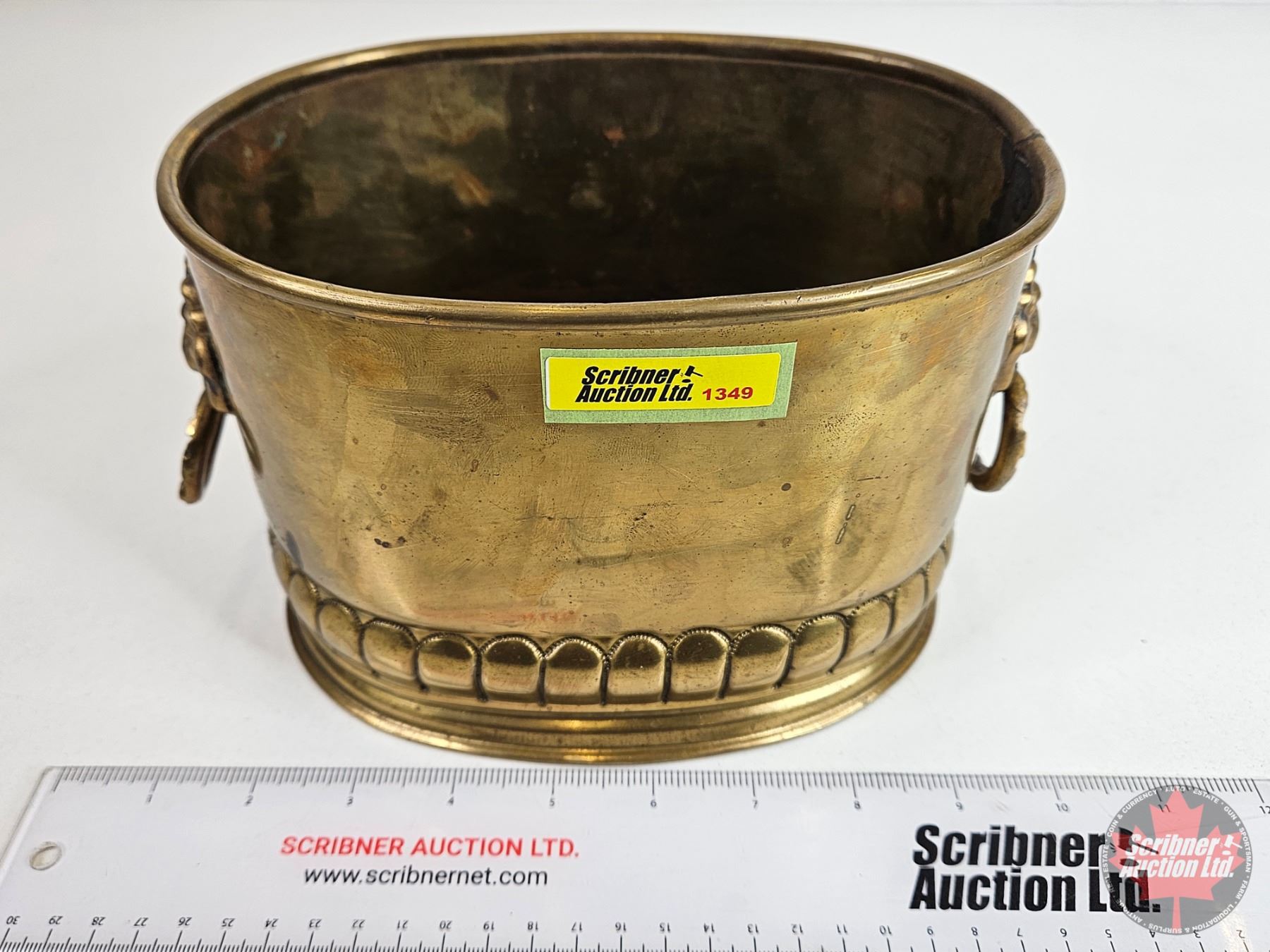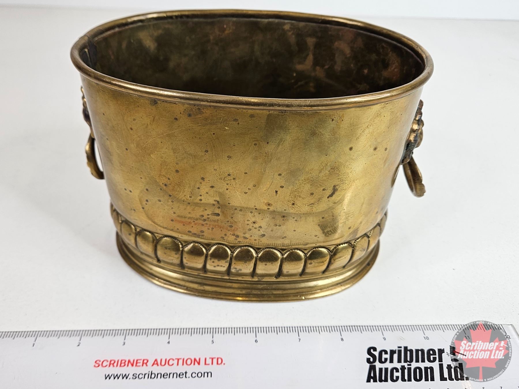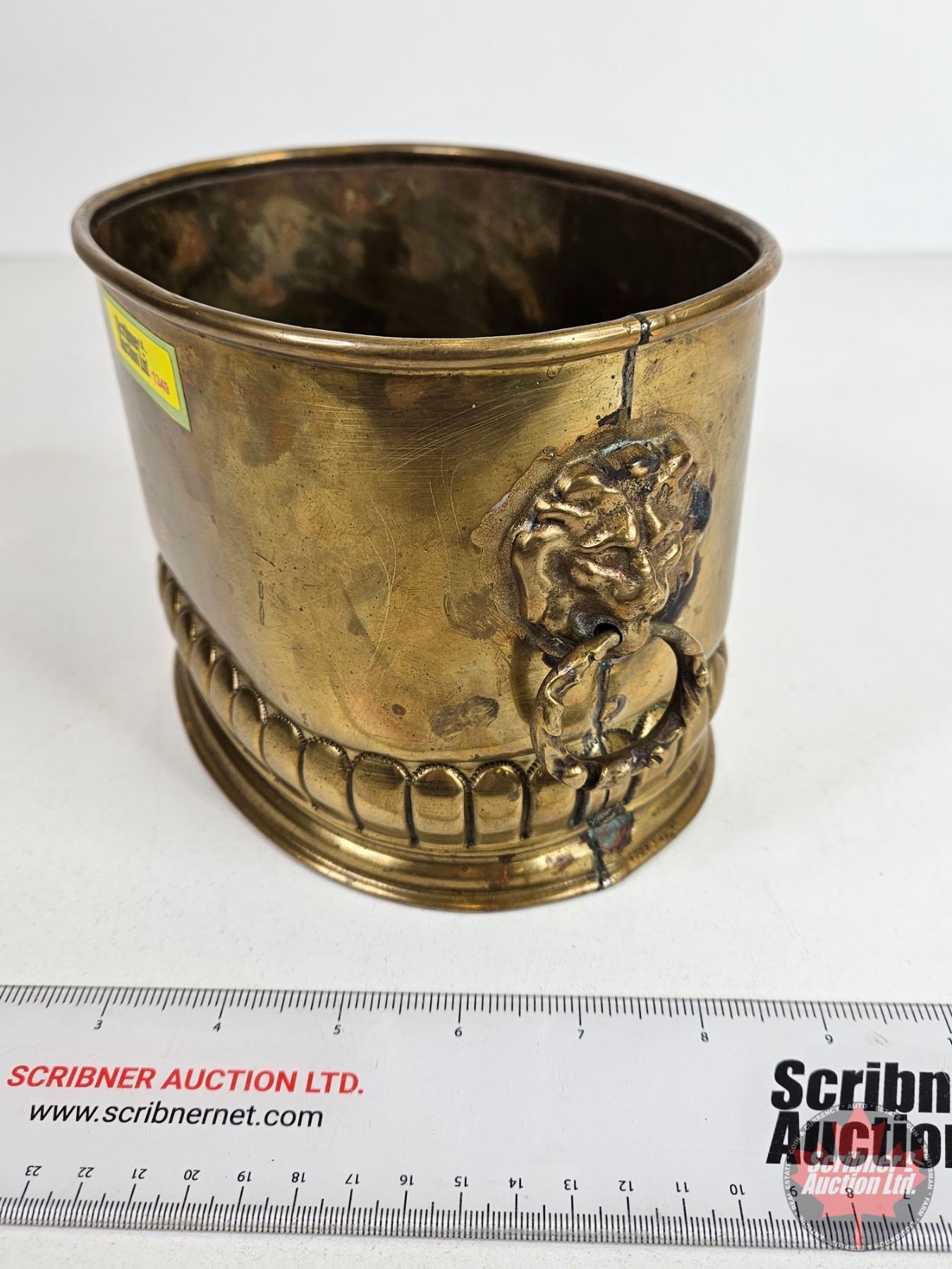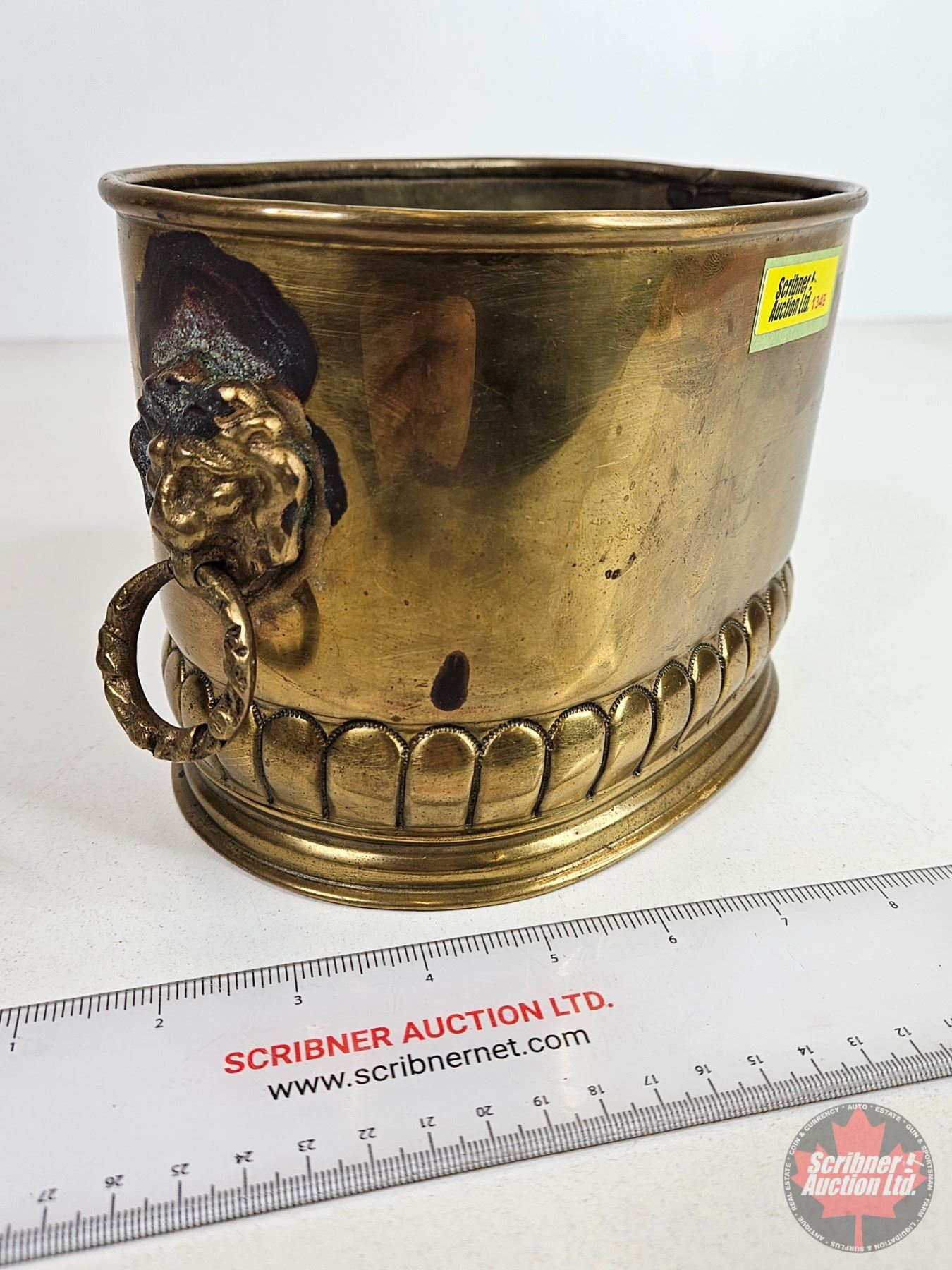 Collector Combo: Brass Lion Head Jardiniere, Avon Pipe, Coppercraft Hat Ashtray, Cigarette Case (Jar