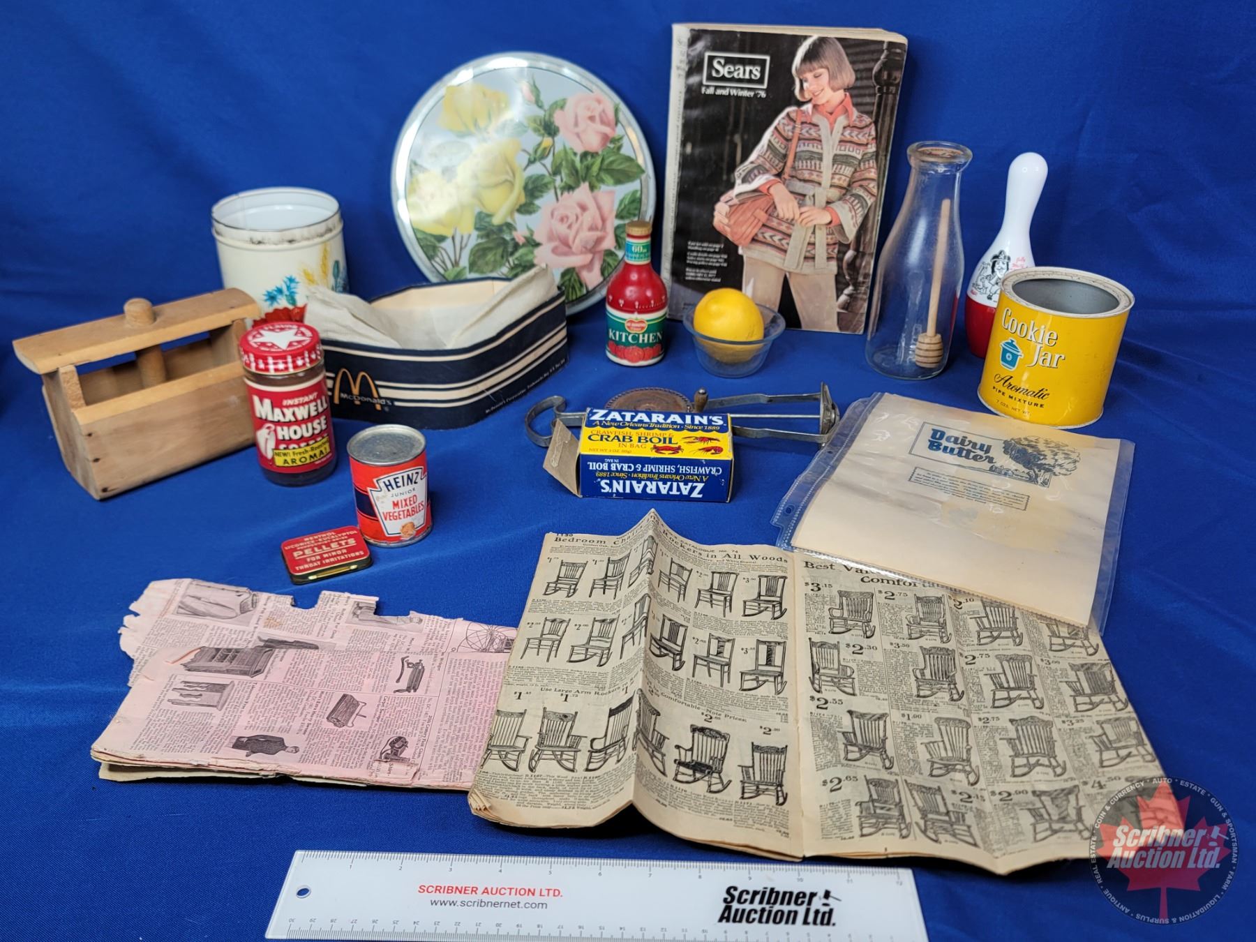Collector Combo: Butter Press; 1976 Sears Catalog; McDonald's Shift Cap; Kitchen Timer; Milk Jar; Bowling Pin Coin Bank; etc! (SEE PICS!)