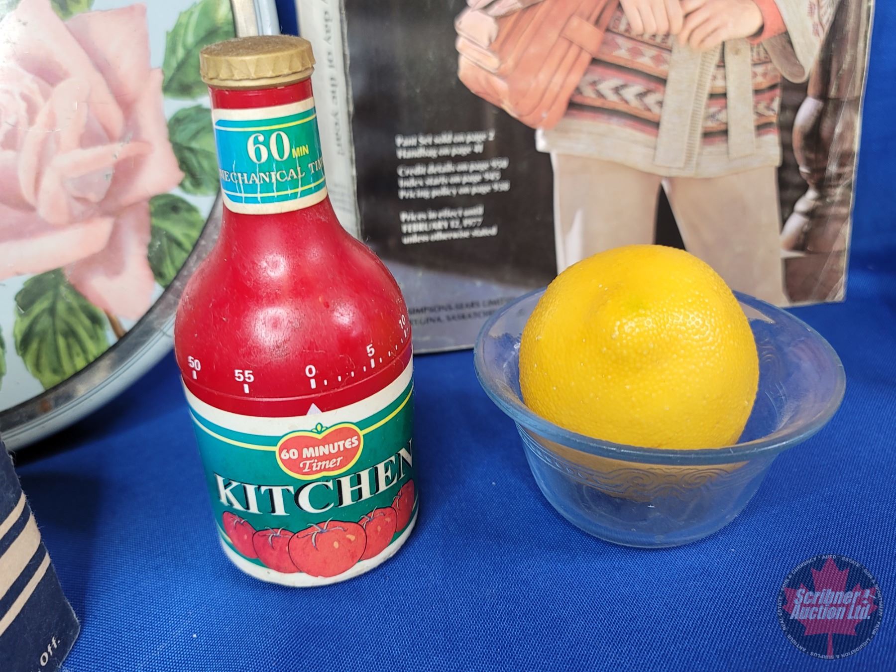 Collector Combo: Butter Press; 1976 Sears Catalog; McDonald's Shift Cap; Kitchen Timer; Milk Jar; Bo