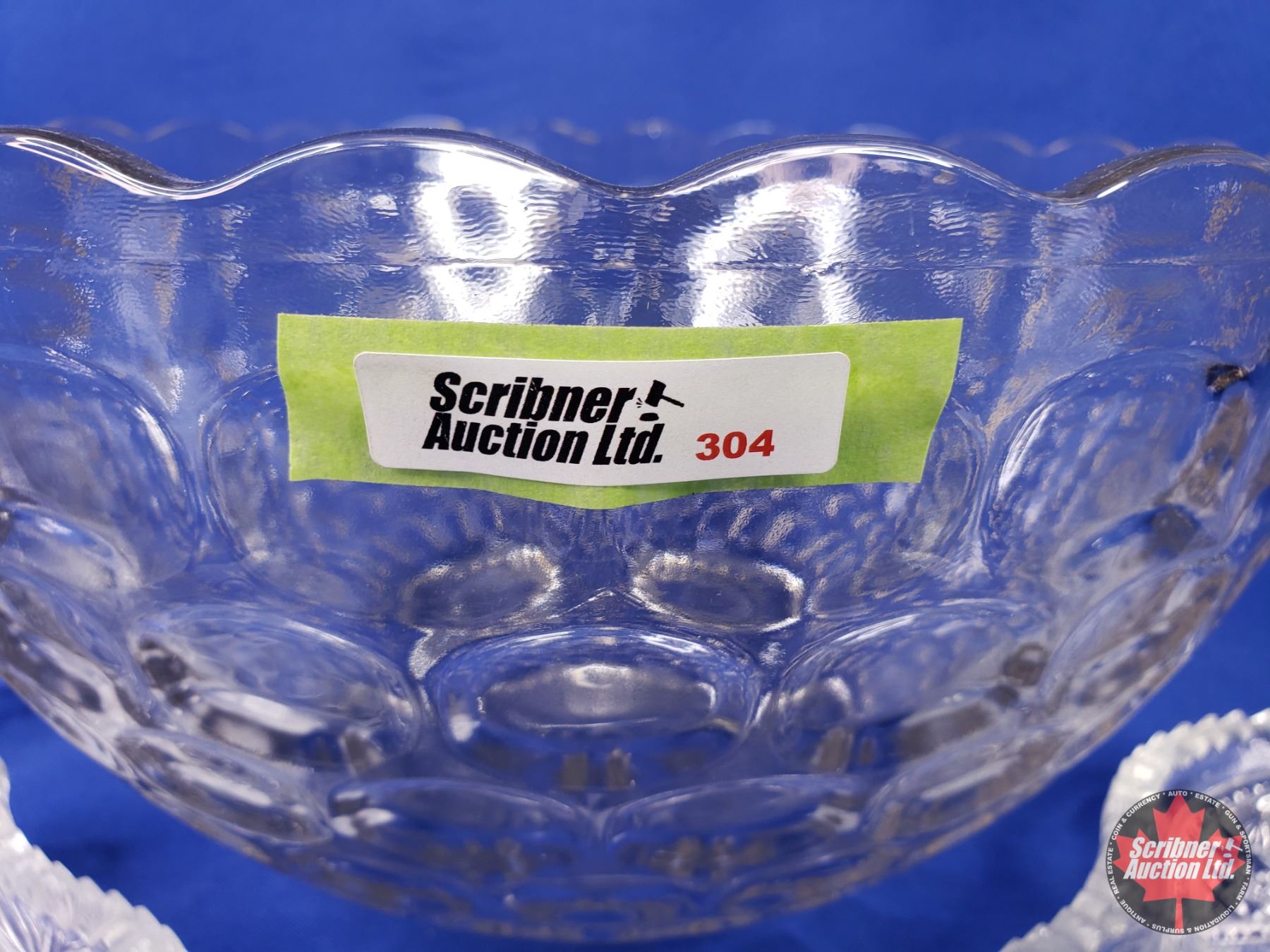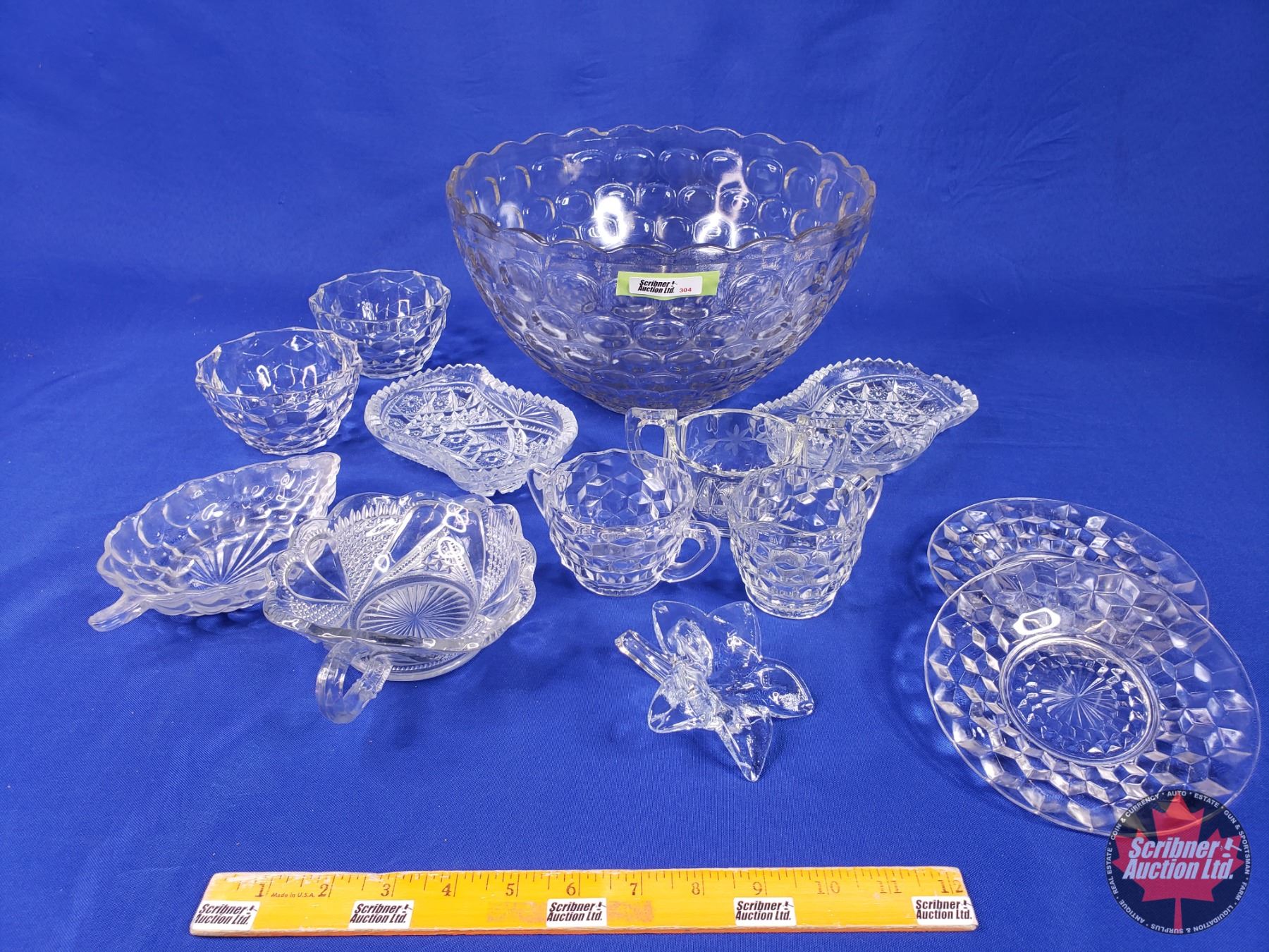 Collector Combo ~ Clear Glassware Group (13pcs) : Punch Bowl; Sugar; Creamers; Plates; Pickle Dish; etc (SEE PICS!)