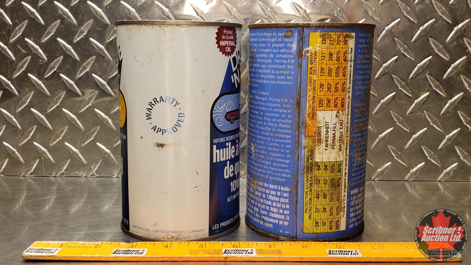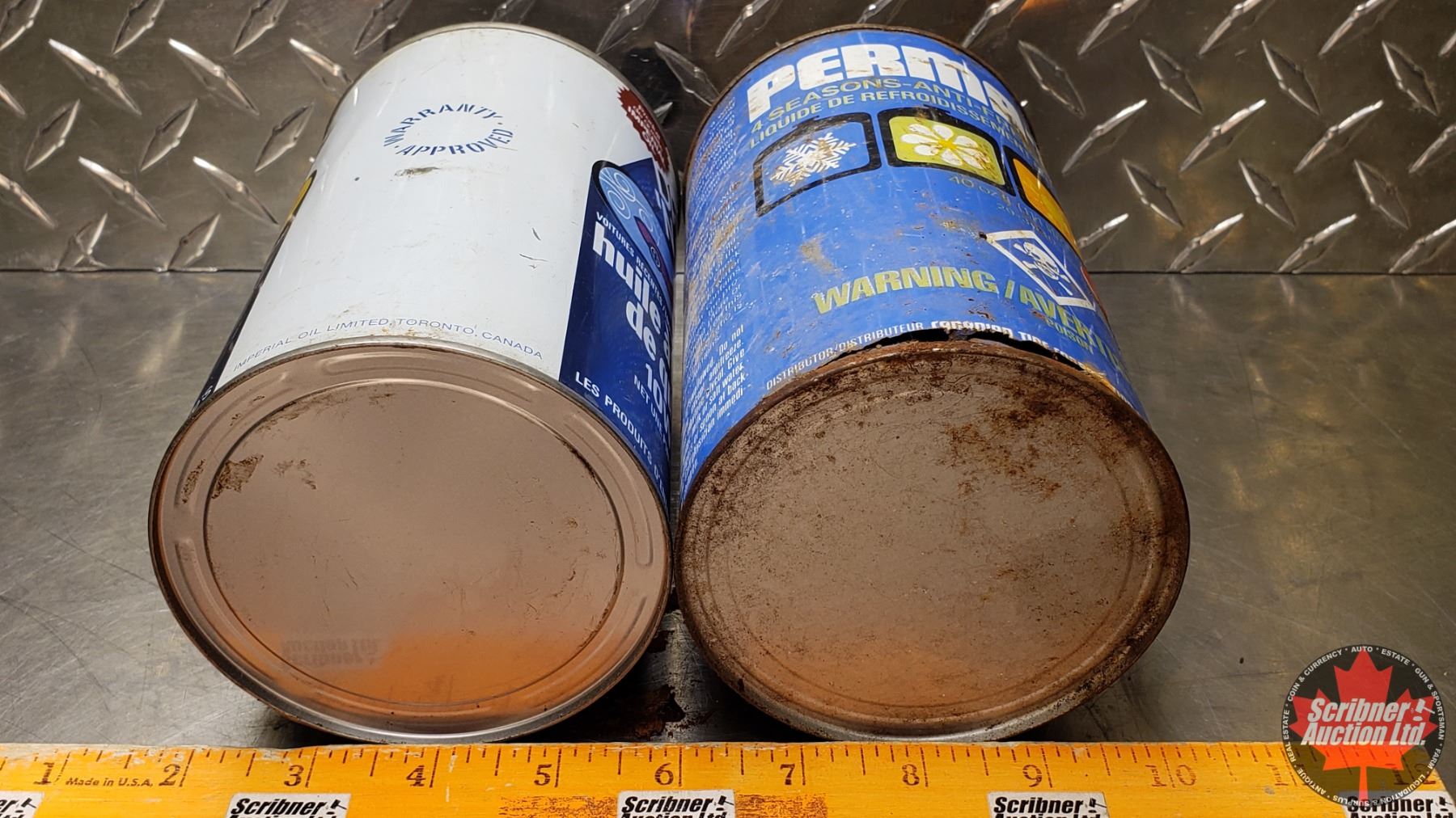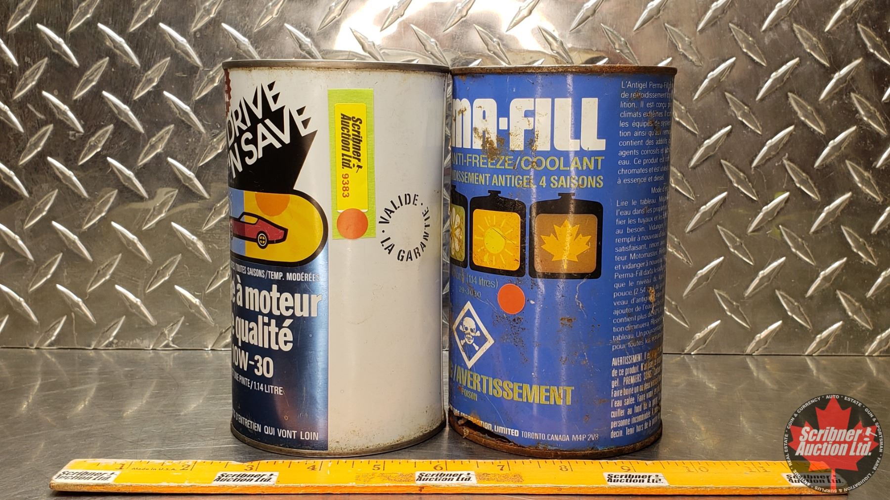 Collector Combo : Drive 'N Save Oil Tin & Perma-Fill Antifreeze Tin (6-1/2"H) (SEE PICS!)