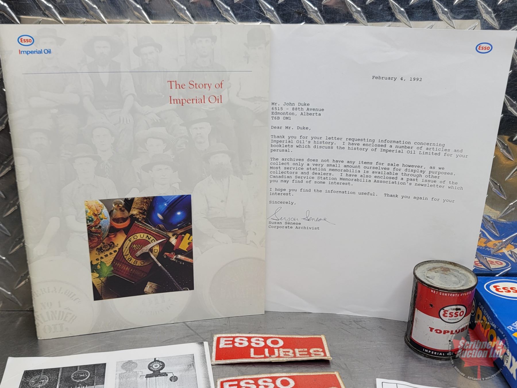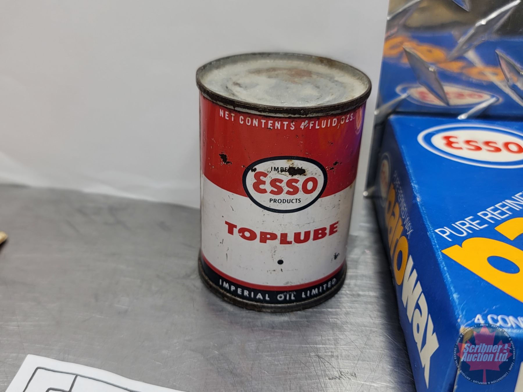 Collector Combo : Esso Lubes Patches; Esso Parowax in Box; Esso Toplube Tin (Full!); etc! (SEE PICS!