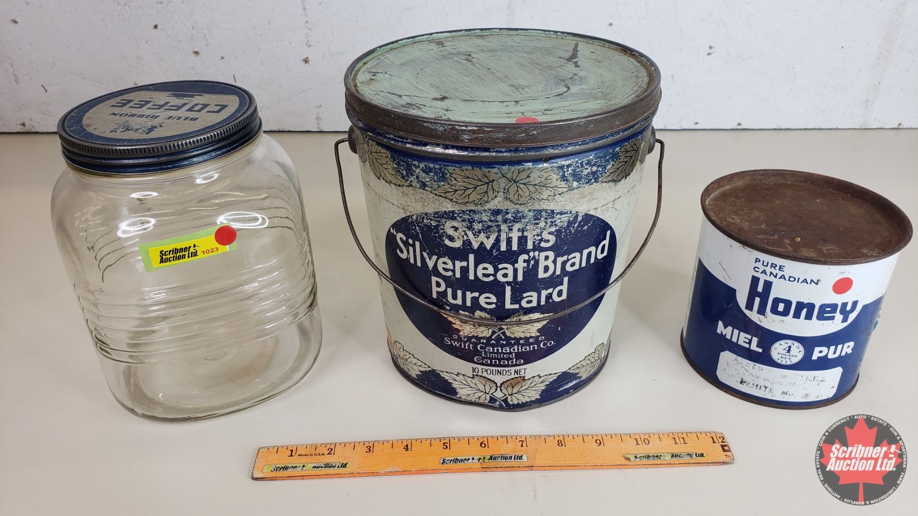 Collector Combo: Nabob Coffee Jar ; Swift's Lard Pail ; Pure Canadian Honey Tin (SEE PICS!)
