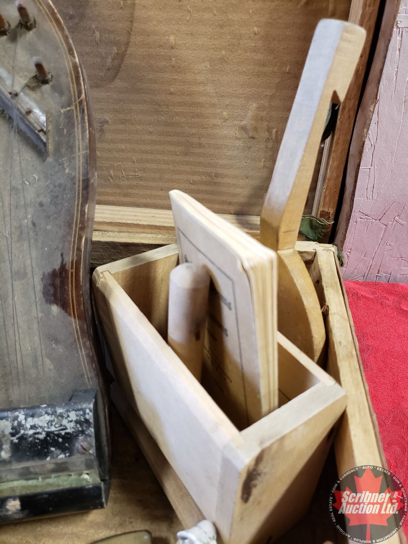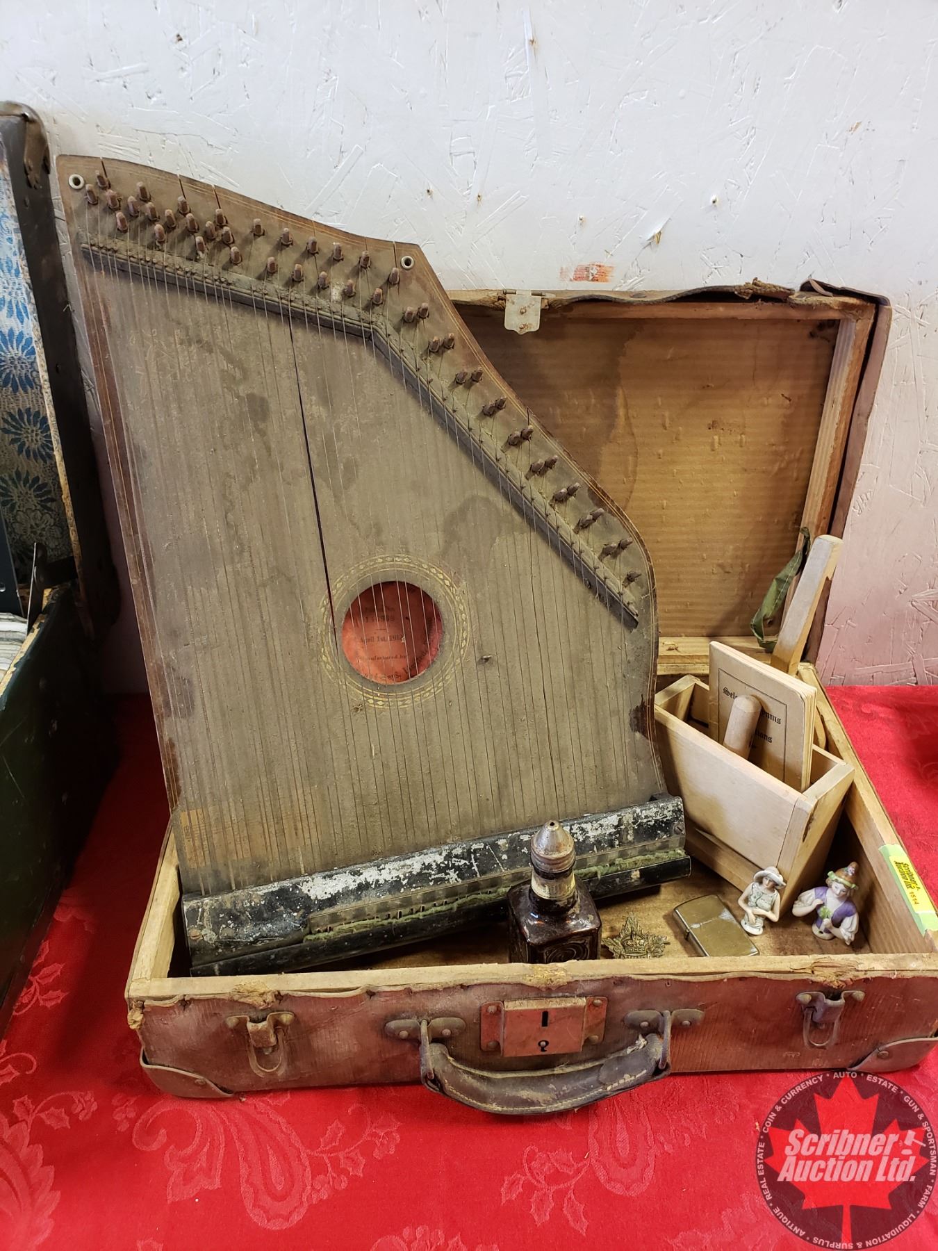 Collector Combo - Small Vintage Suitcase, Vintage Harp, Butter Press, Butter Paddle, Pocket Watches (2), Harmonica, etc. (See Pics)