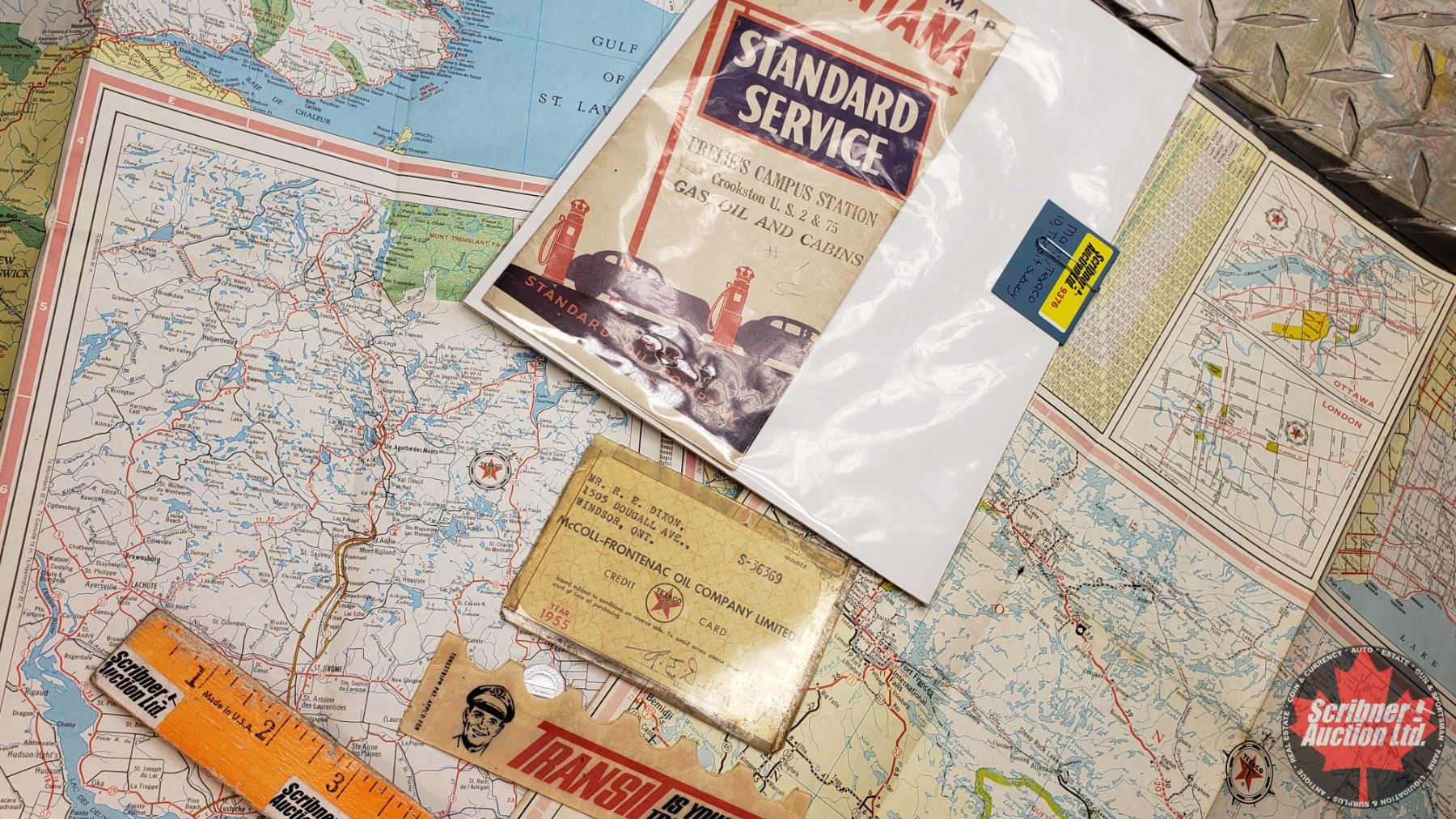 Collector Combo : Texaco (Ontario) Map; Texaco (Quebec) Map & Standard Oil Company (Montana) Map, 1955 Texaco Identification Card & Subway Transit Token Carrier w/Token (SEE PICS!)