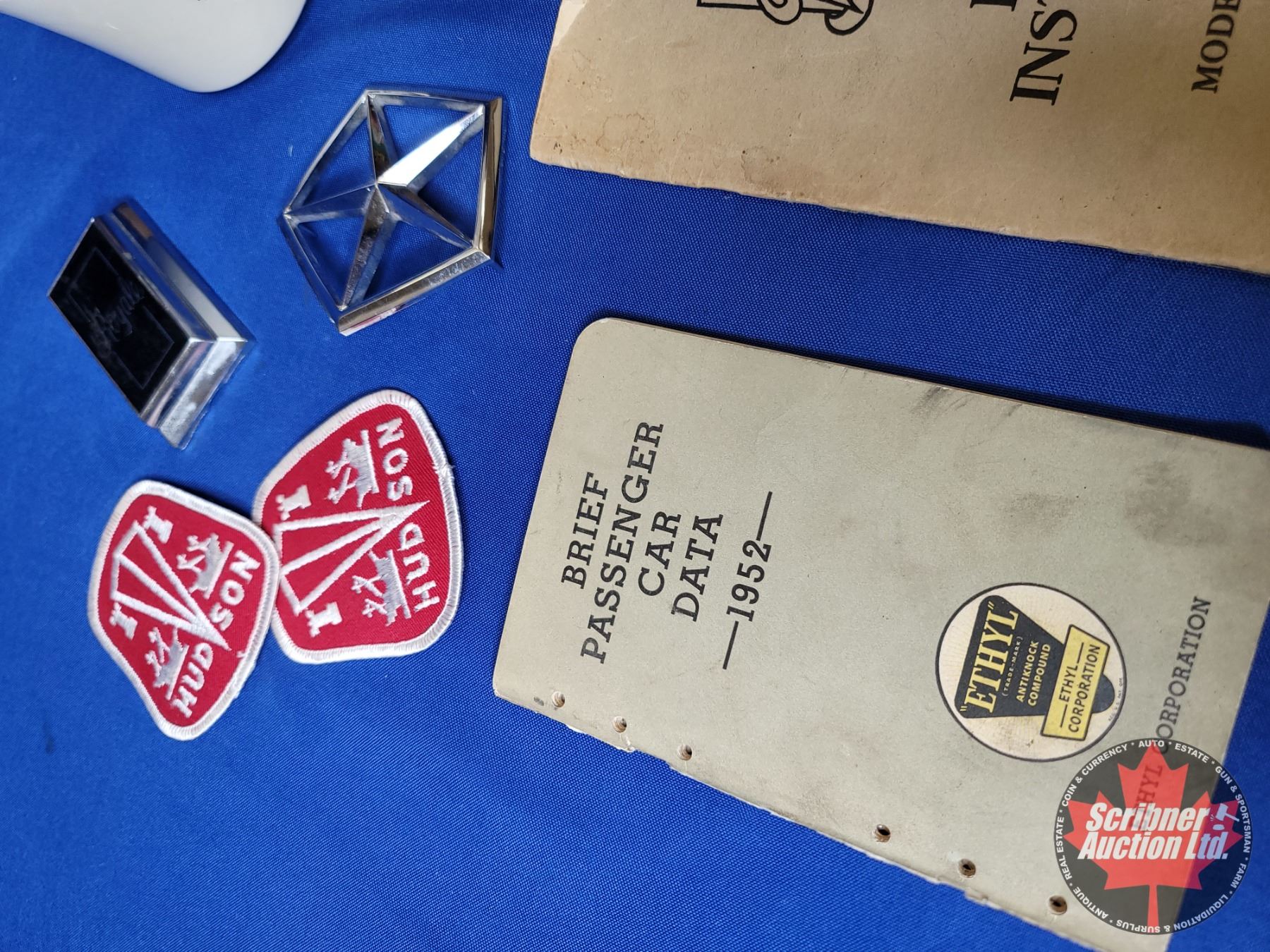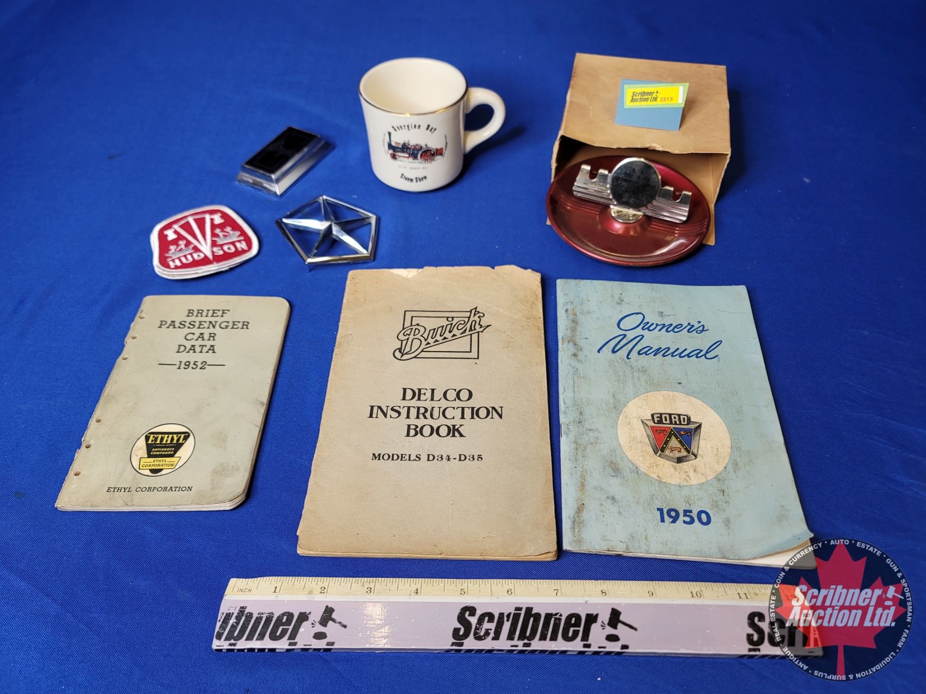 Collector Combo : Vintage Ashtray, Coffee Cup, Chrysler Emblem, Hudson Patches, Owner's Manuals (2), 1952 Car Data, etc (SEE PICS!)