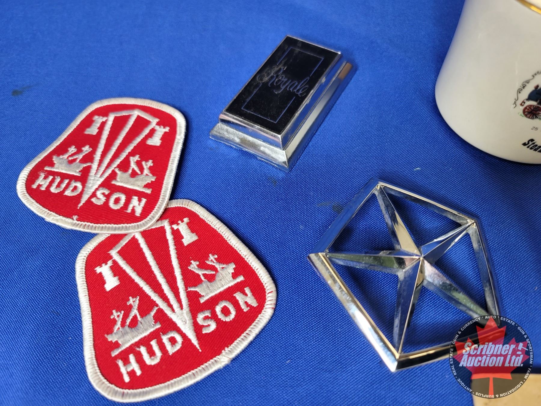Collector Combo : Vintage Ashtray, Coffee Cup, Chrysler Emblem, Hudson Patches, Owner's Manuals (2),