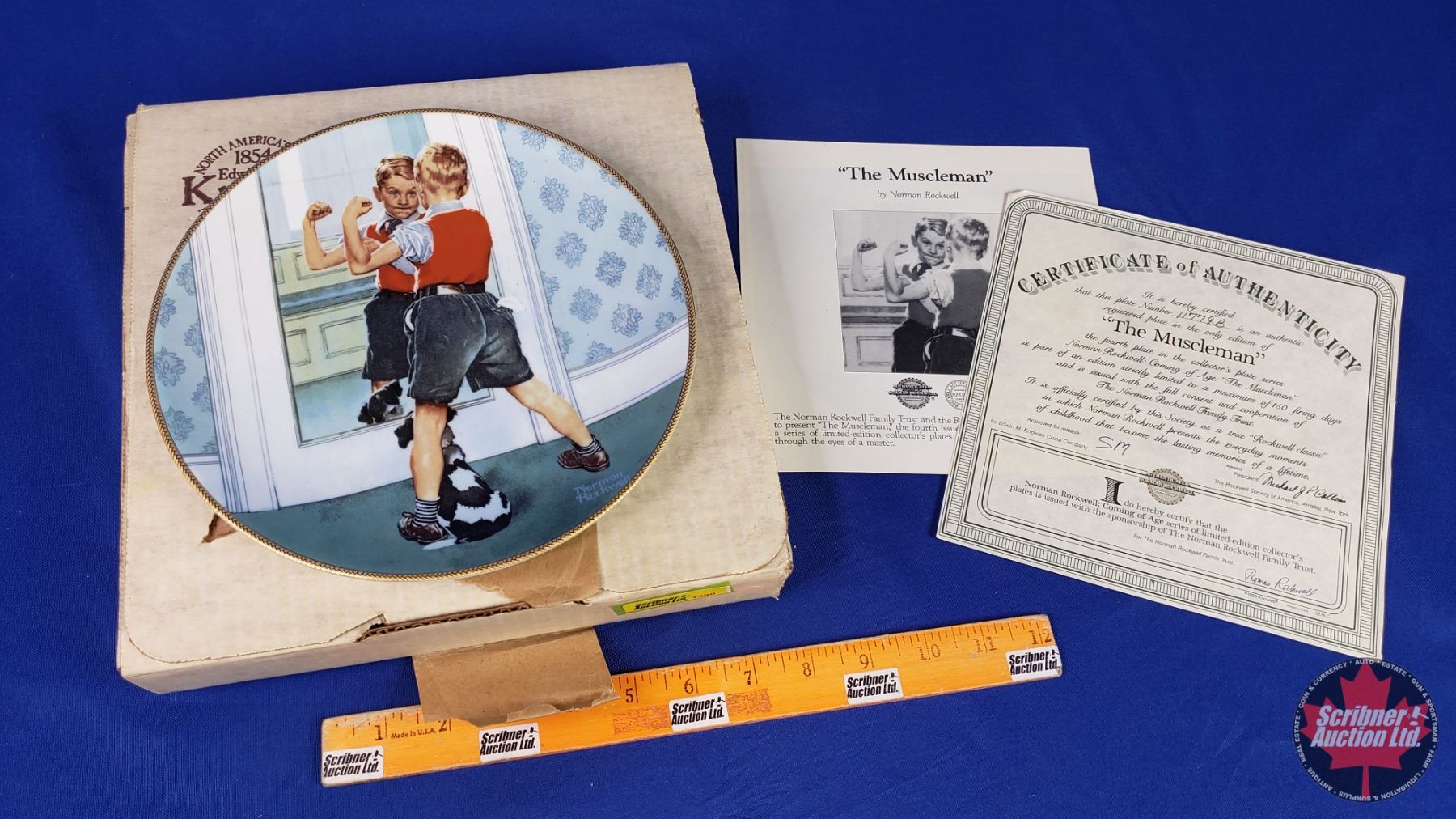 Collector Plate: "The Muscleman" Norman Rockwell "Edwin M Knowles China Co." (c/w Box & COA) (SEE PI