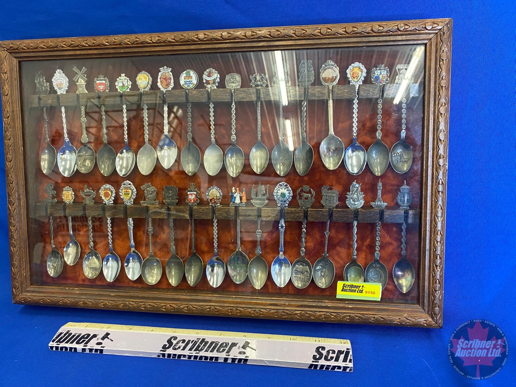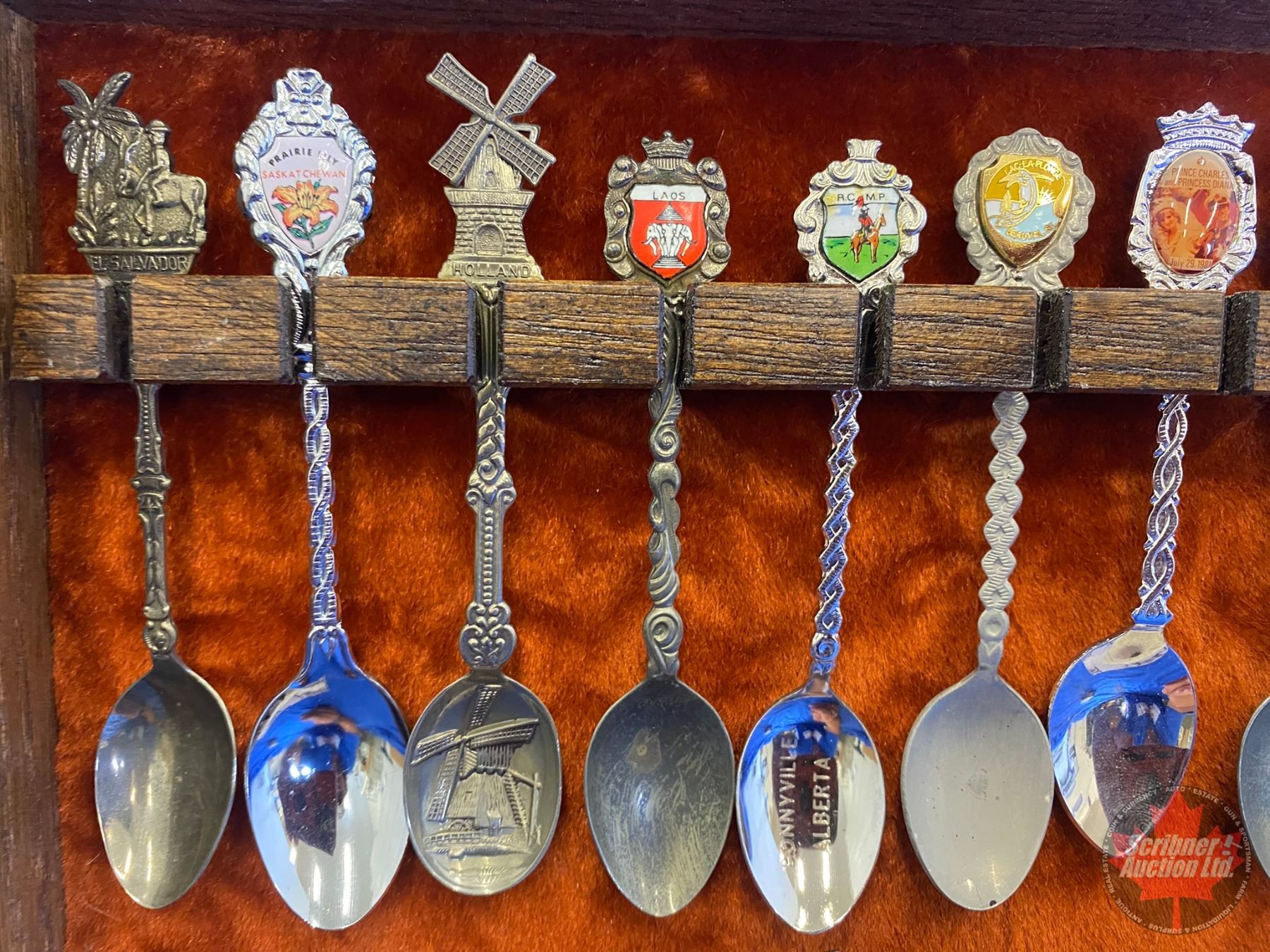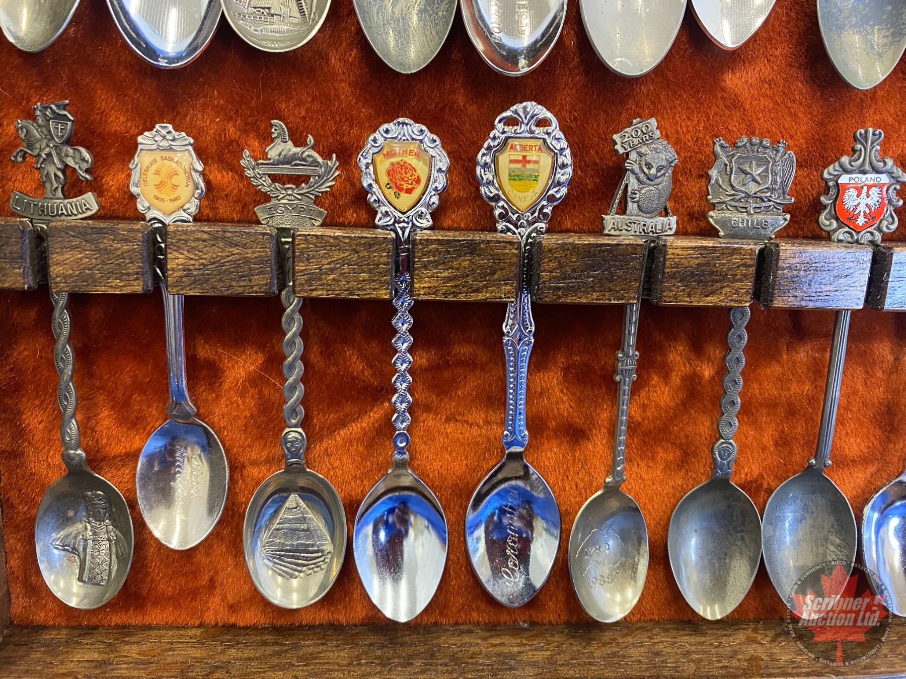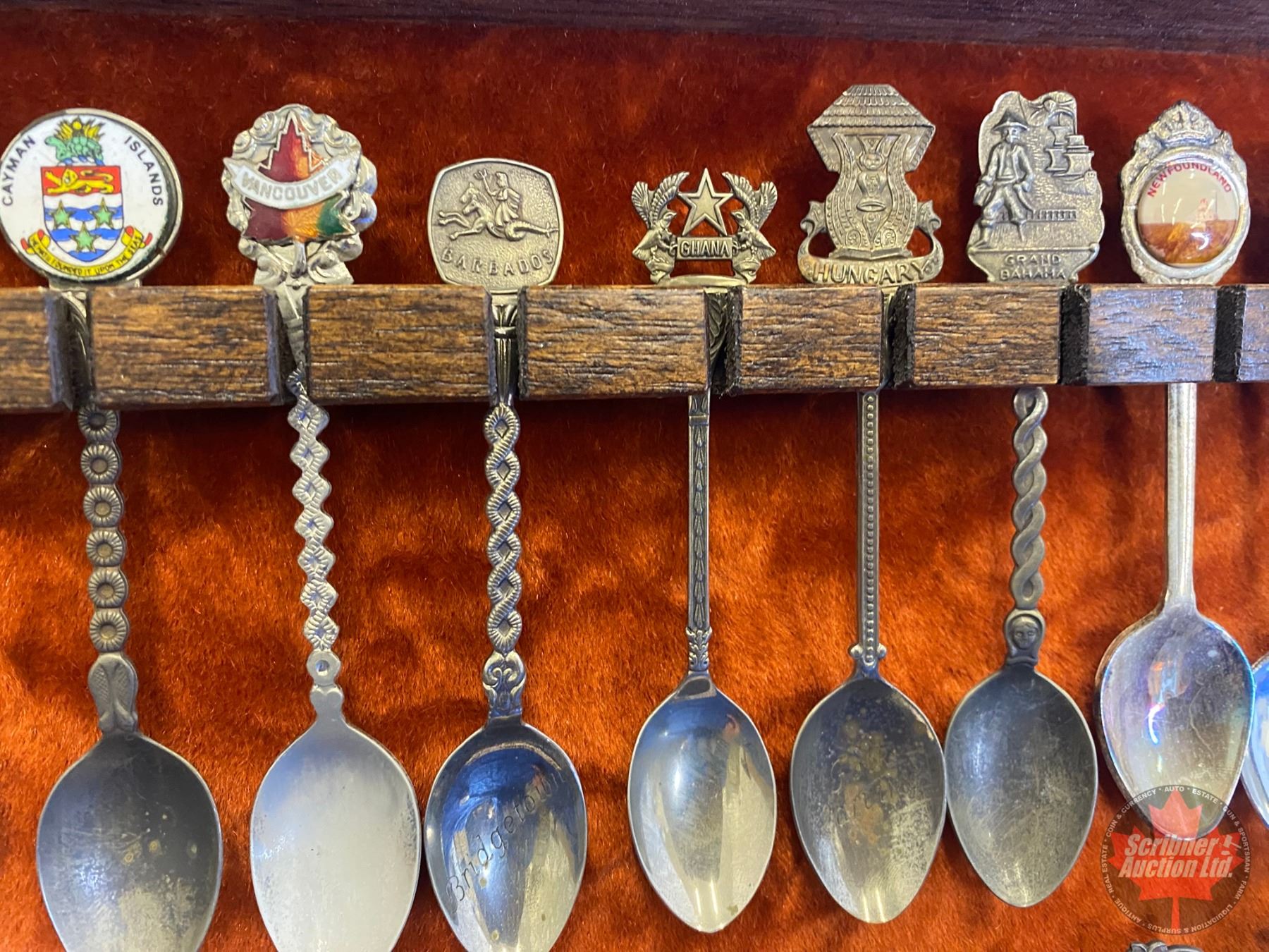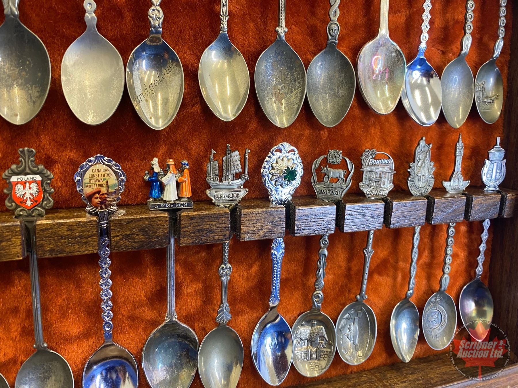 Collector Spoons (34) c/w Hanging Glass Front Display Cabinet