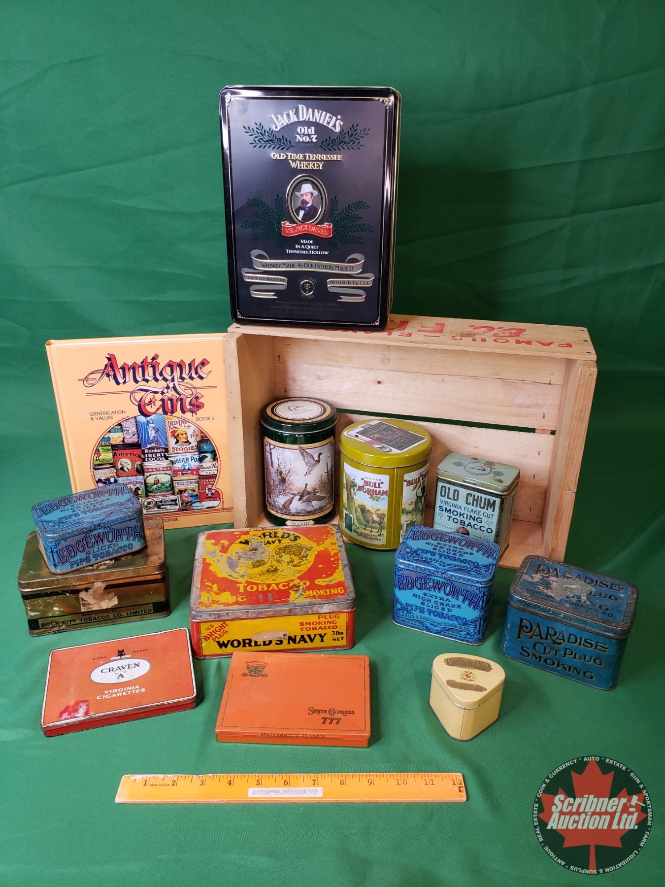 Collector Tins/Box/Book: Tobacco, Alcohol, Ducks Unlimited, Tins Guide Book & Fruit Box (Wood Box Me