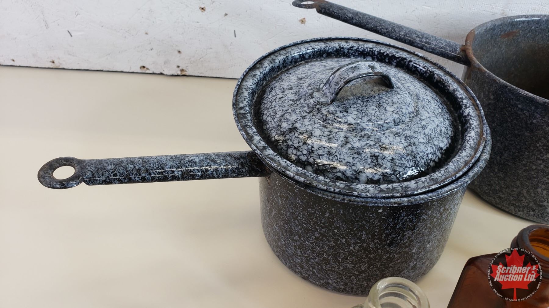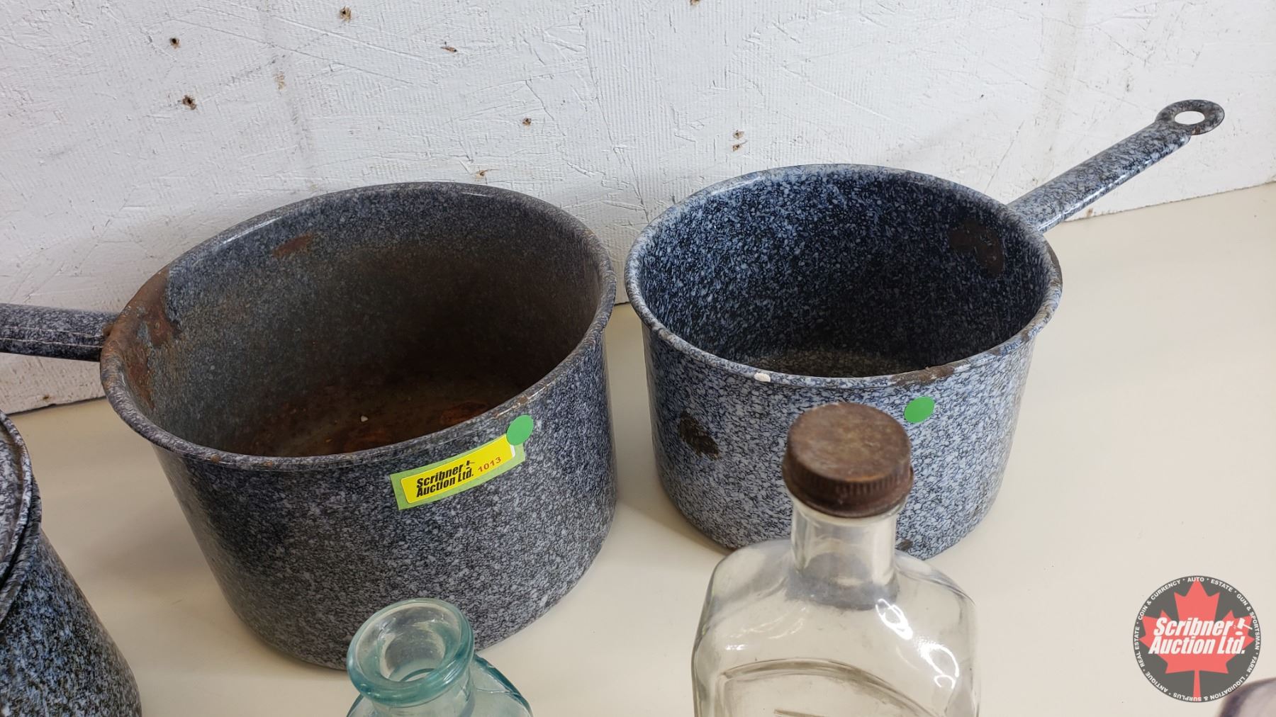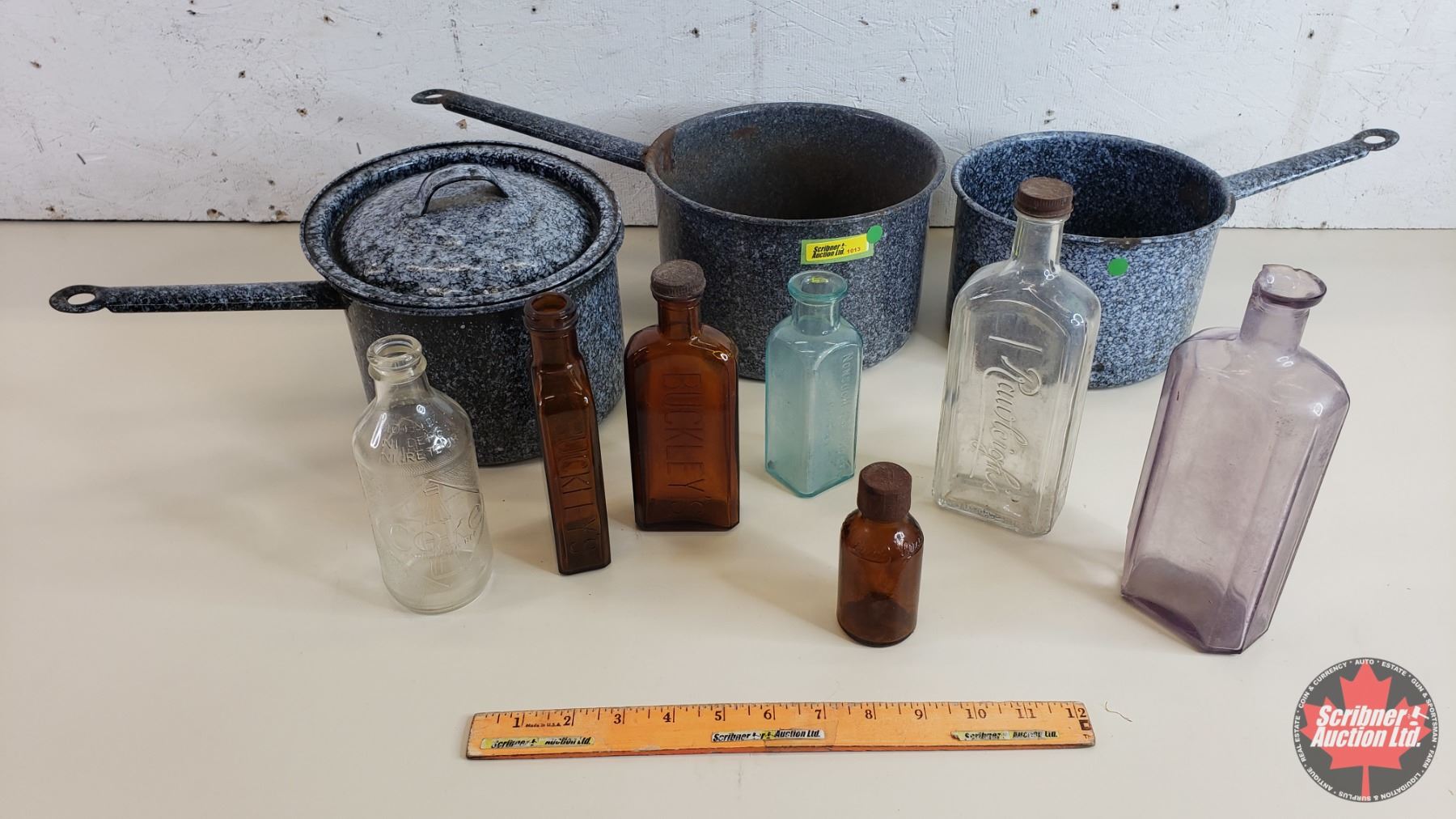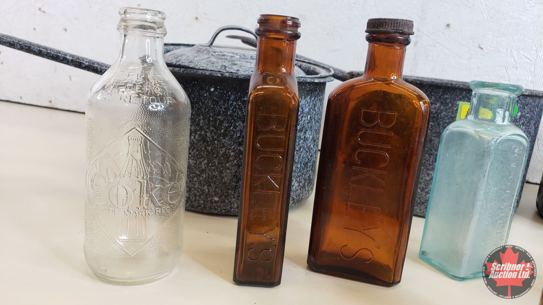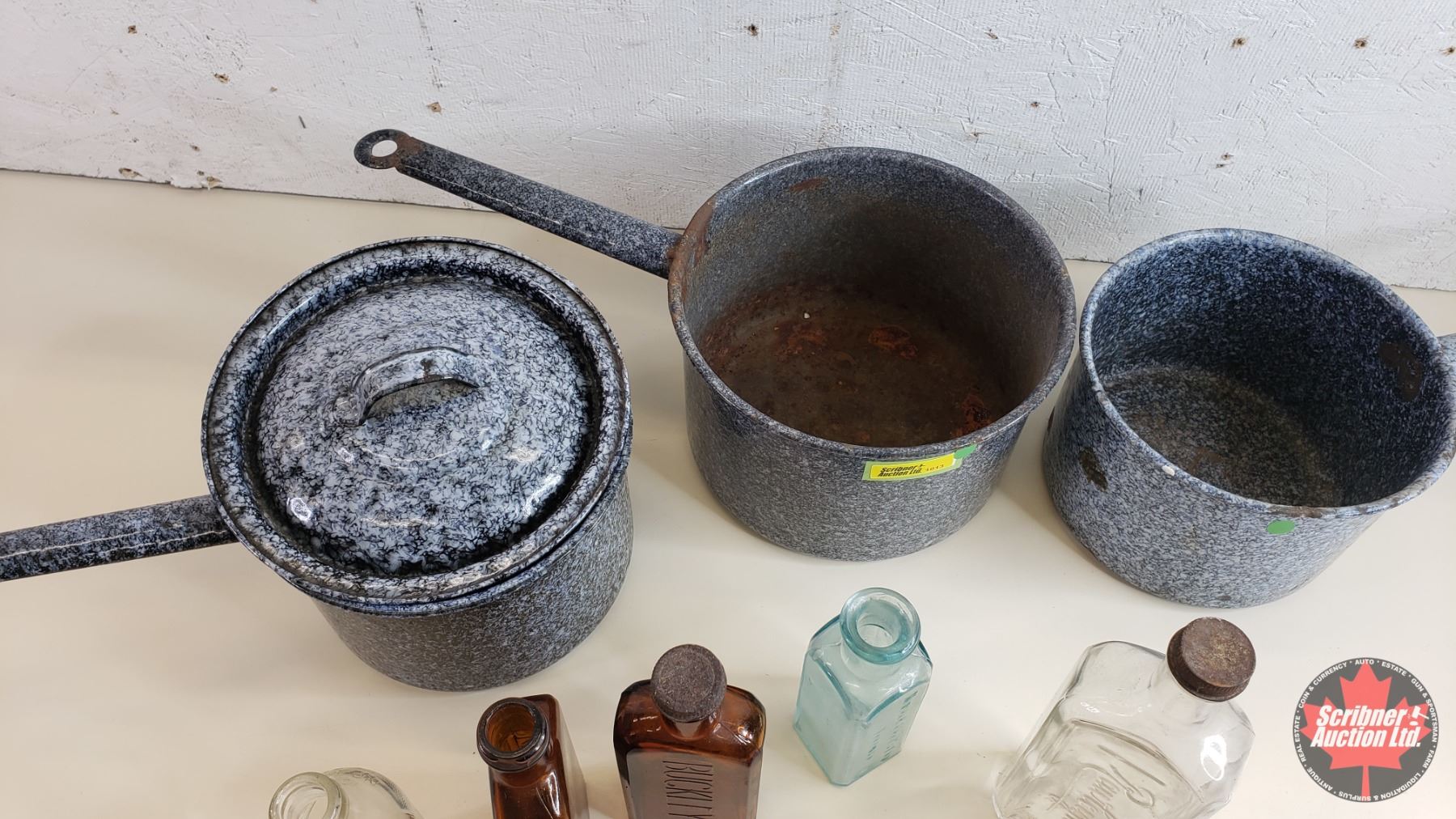 Collectors Combo: Enamelware Pots (3) & Variety Bottles (Rawleighs; Buckleys; Coca-Cola; etc) (SEE PICS!)