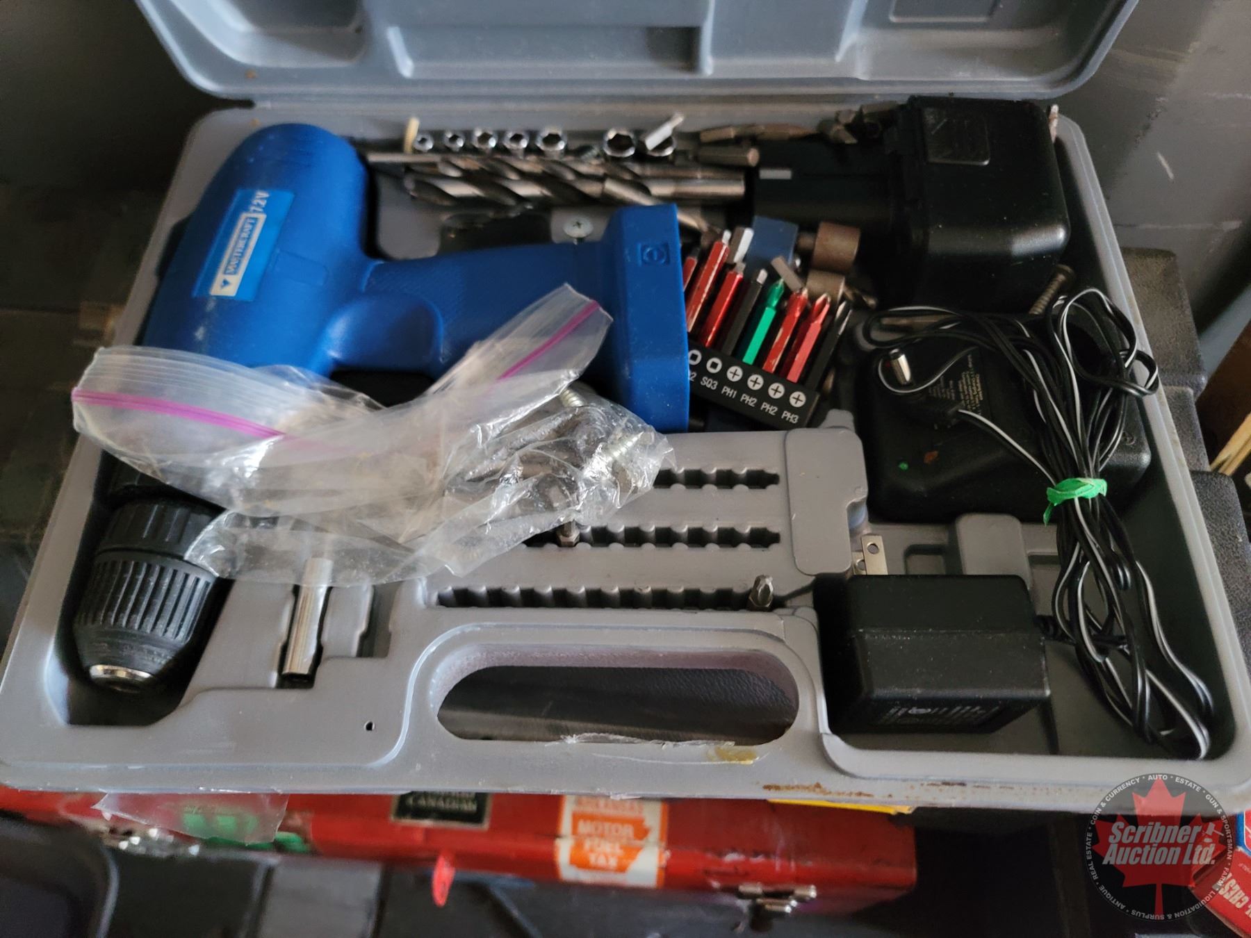Combo : 4 Portable Tool Boxes with Tools & Cordless Drill (7.2V)