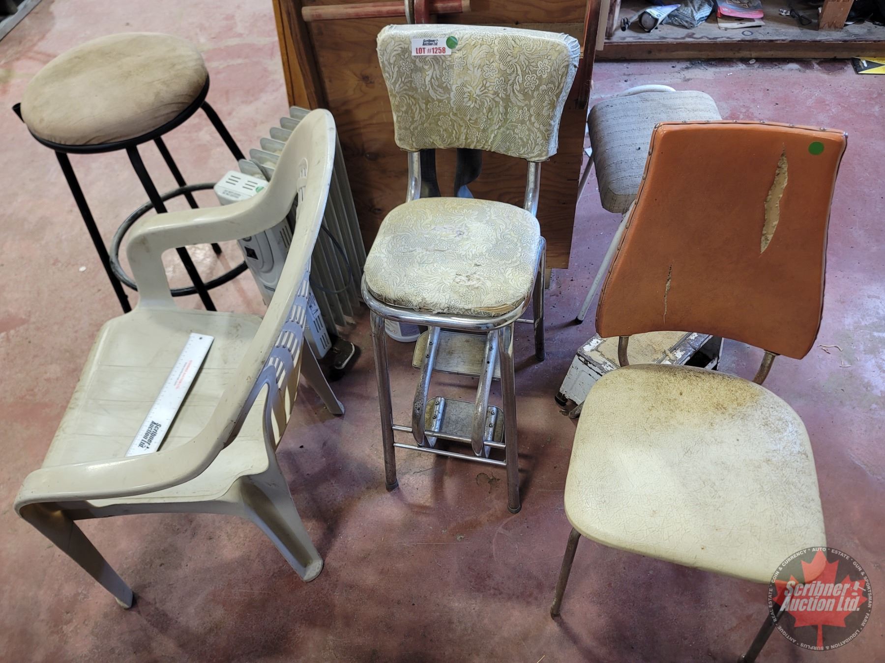 Combo/Grouping (7) : Step Stool; Chairs (3); Bar Stools; Elec Heater