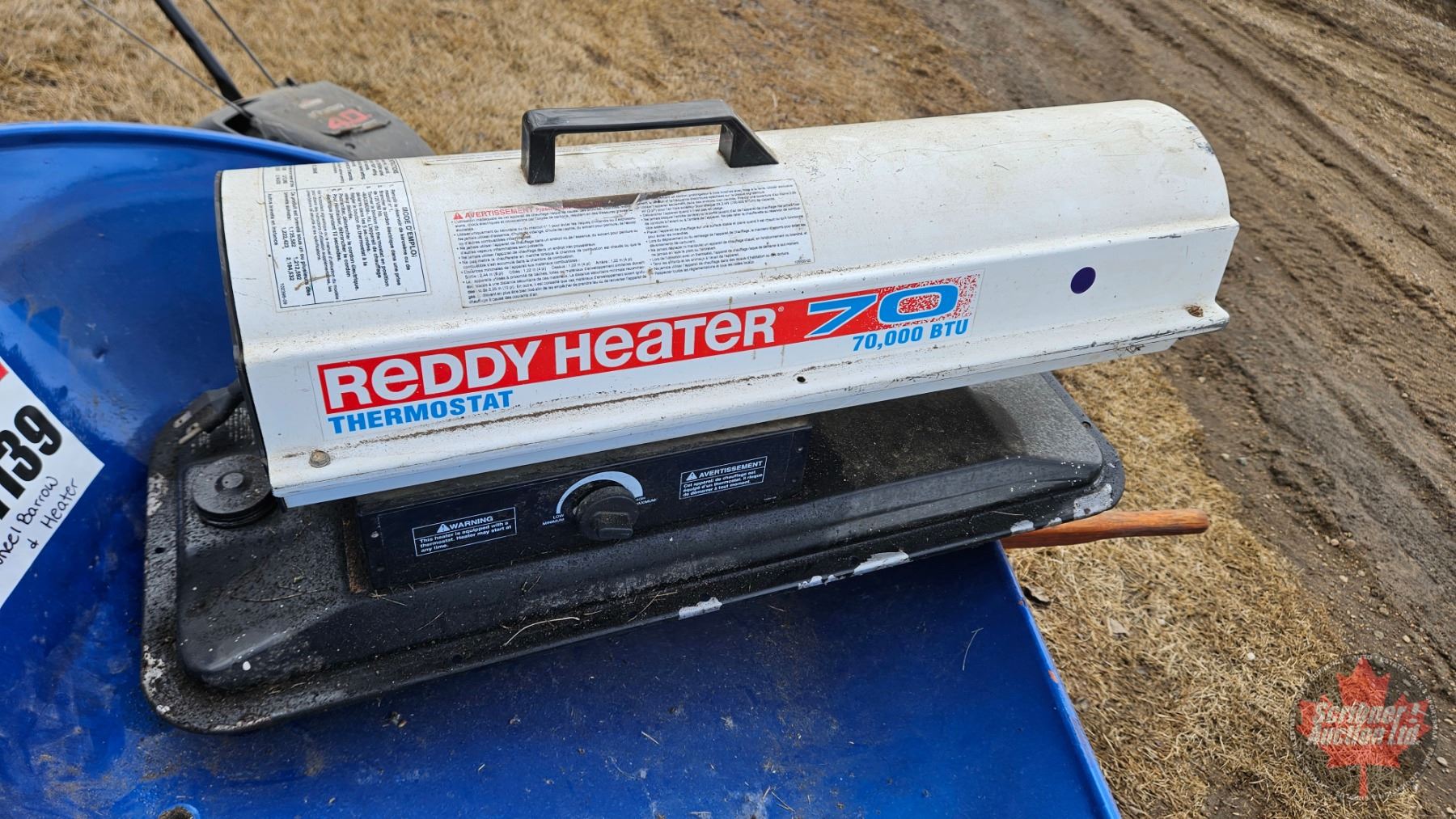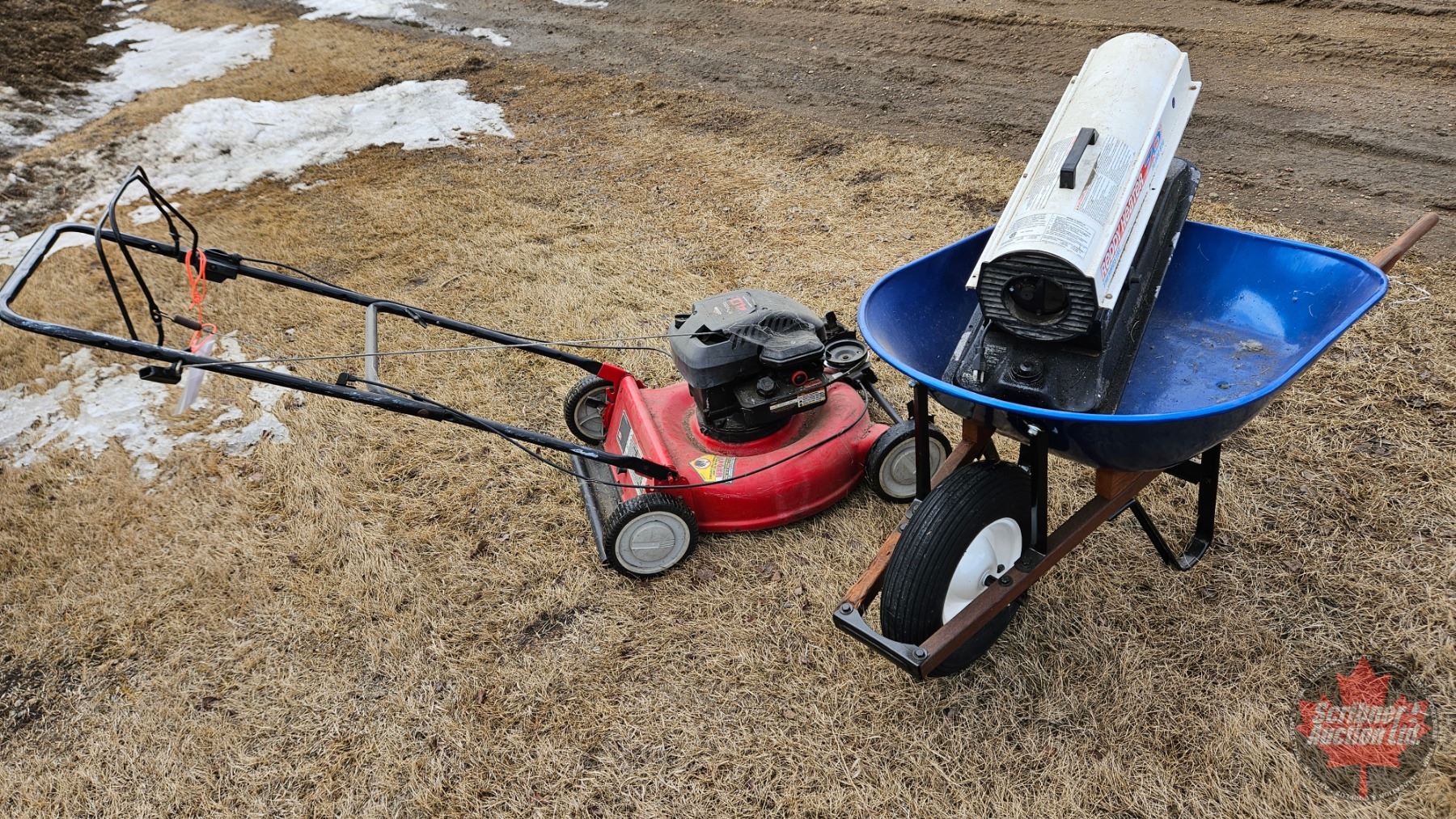 Combo : Lawnmower ; Wheel Barrow ; Heater