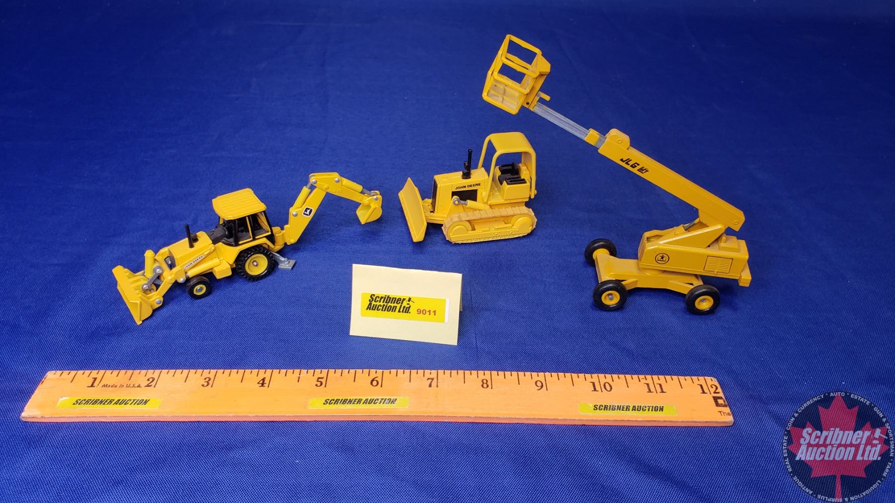 Construction Toy Trio: JLG Man Lift, John Deere Dozer, John Deere Backhoe Loader (See Pics)