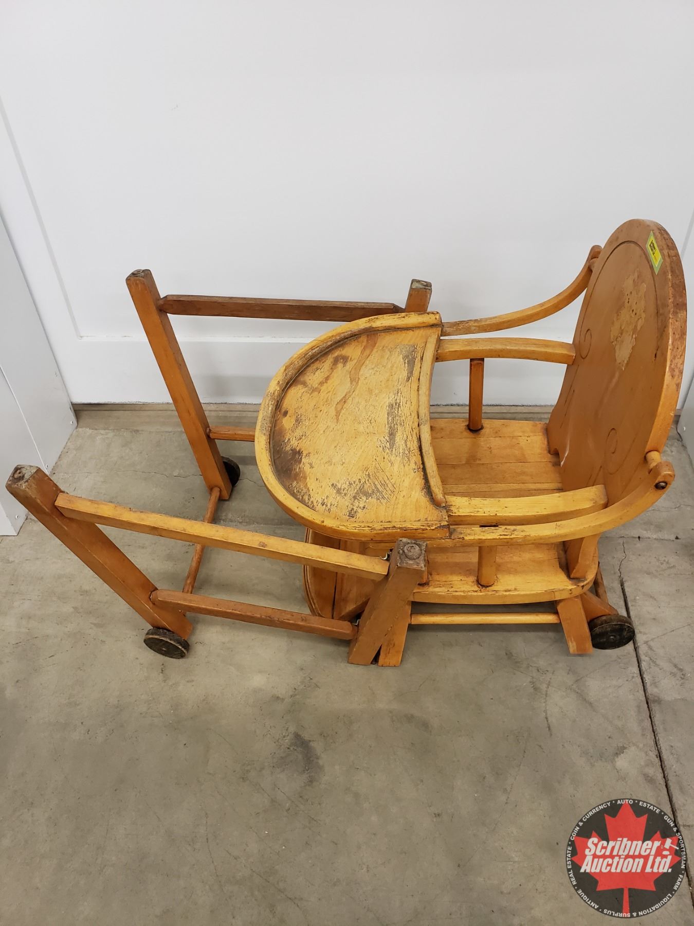 Convertible Antique Wooden High Chair (40"H x 17"W x 19-1/4"D in High Chair Position) (SEE PICS!)