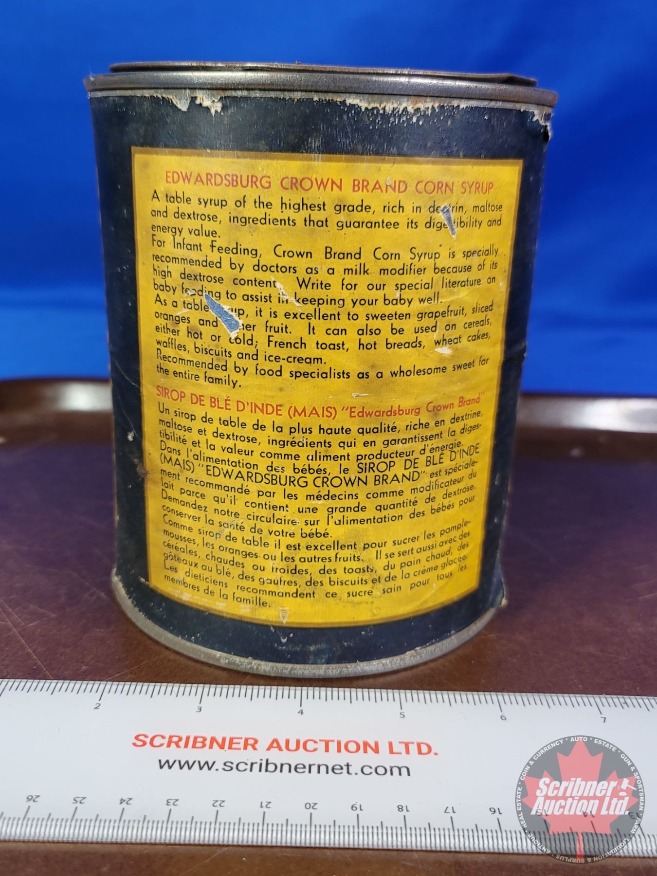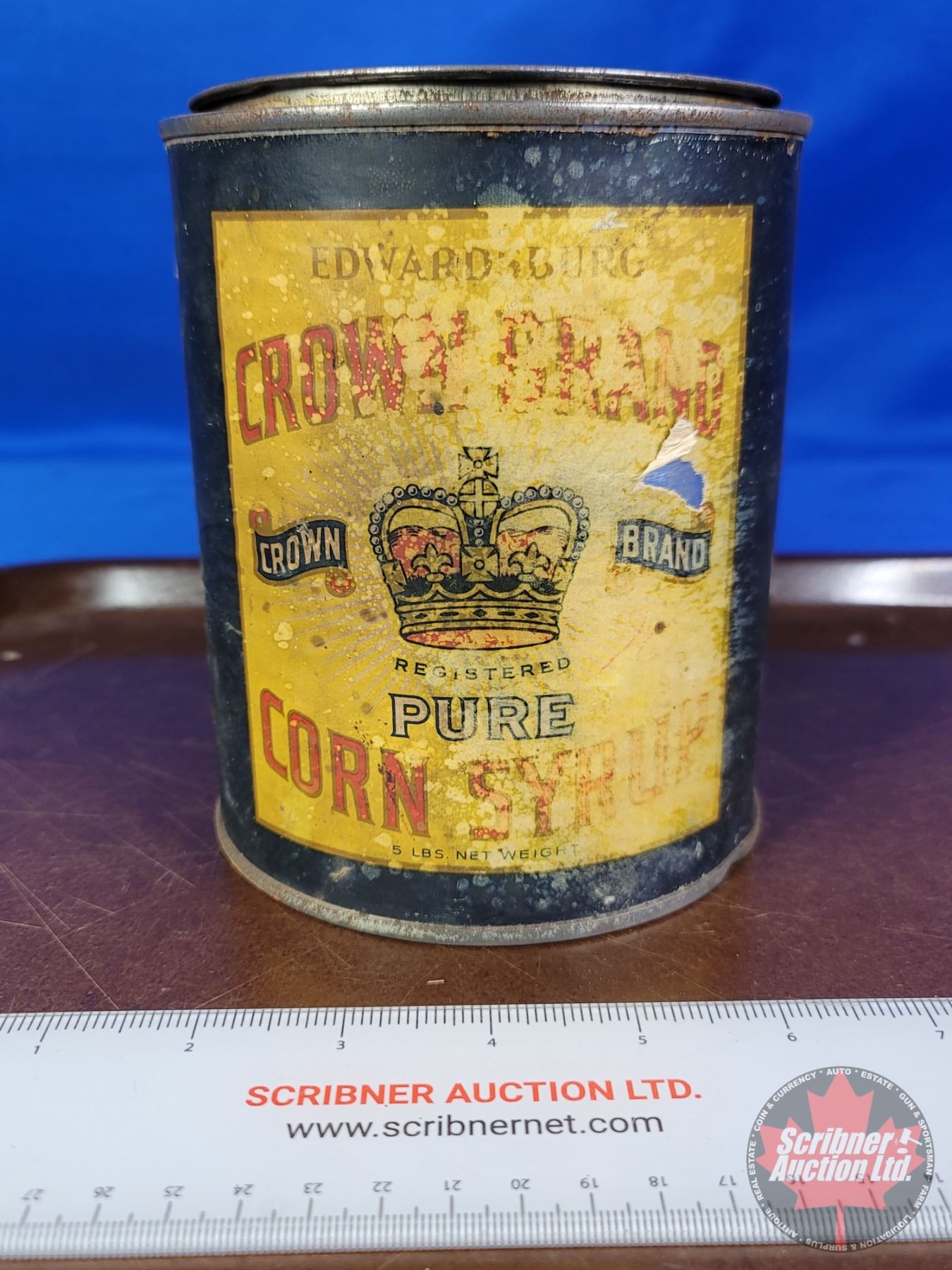 Crown Brand Corn Syrup Tin (Paper Label) (6"H x 5"Dia) (SEE PICS!)