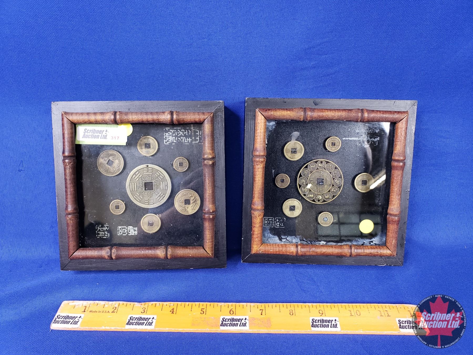 Décor Pieces: Home Interiors Shadow Boxes "Chinese Fortune Coins" (Each Measures: 6"H x 6"W x 1-1/2"D) (SEE PICS!)