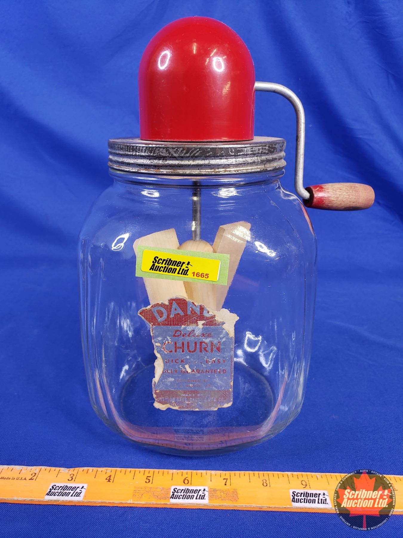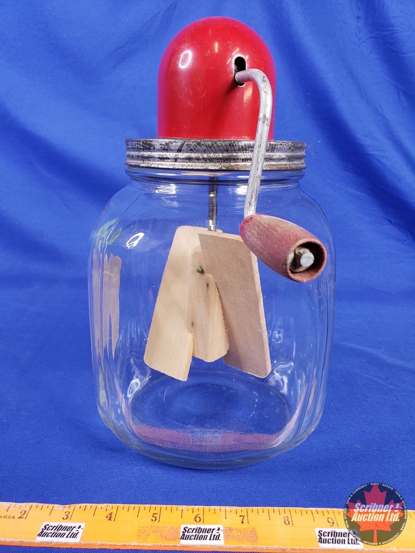 "DANDY" Deluxe Clear Glass/Red Top Butter Churn (11-1/2"H x 8-1/2"W x 6-1/2"D) (SEE PICS!)