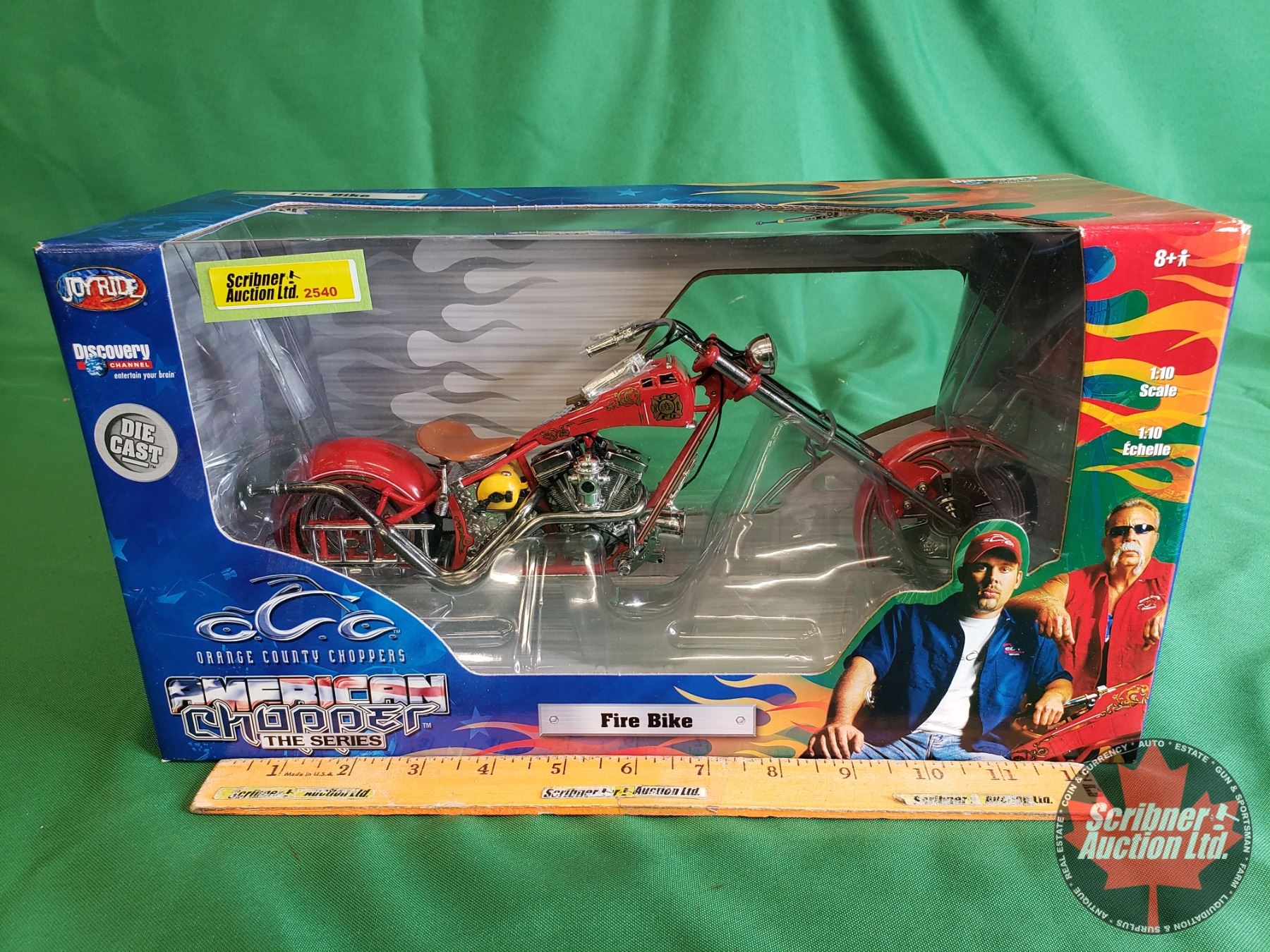 DIE CAST MODEL MOTORCYCLE (NIB) : Orange County Choppers Fire Bike (American Chopper) (Scale 1/10) (Box : 7-1/2"H x 14"W x 5-1/2"D) (SEE PICS!)