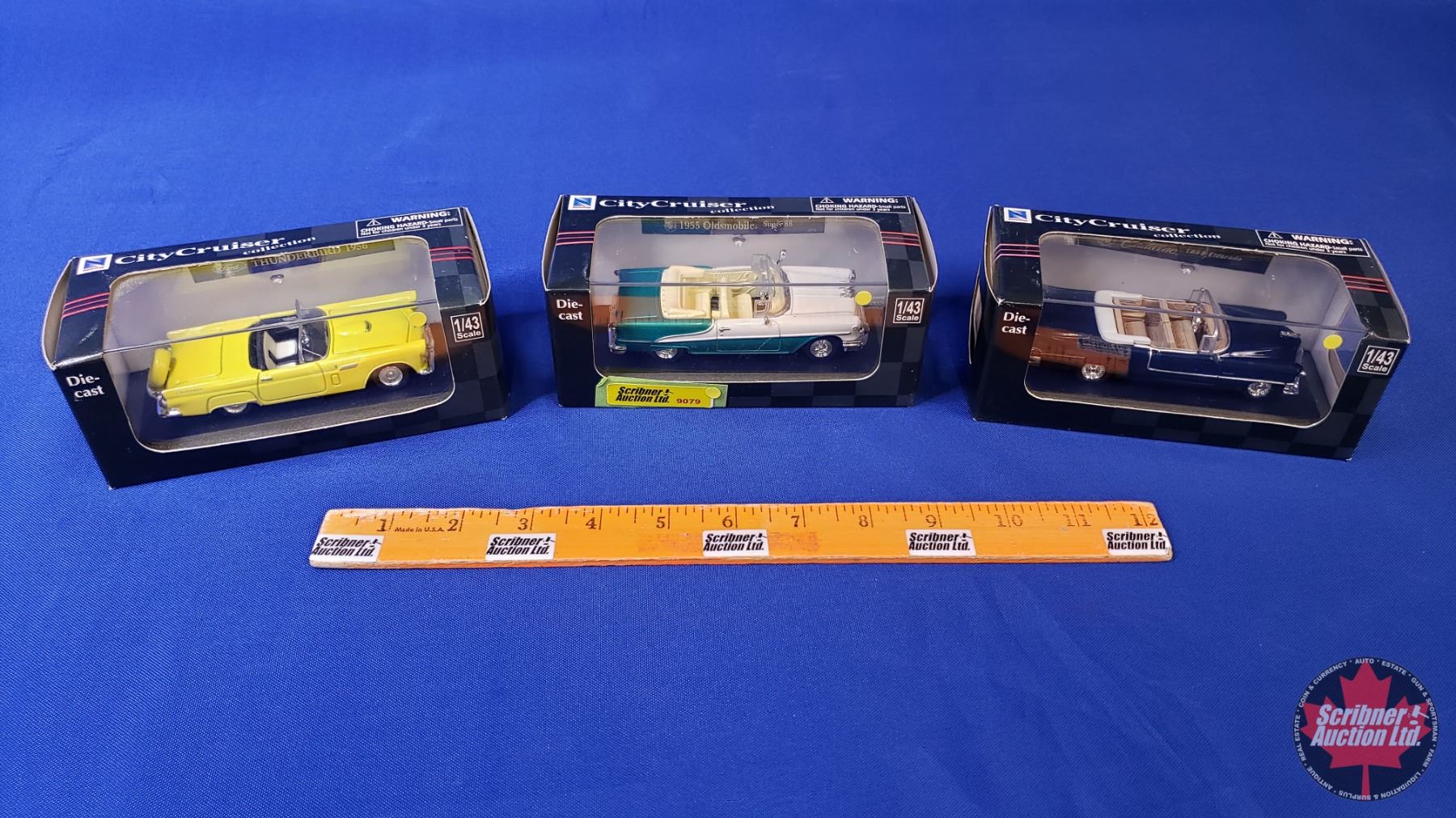 Die-Cast Cars (3) City Cruiser Collection : Thunderbird; Oldsmobile & Cadillac (Scale 1:43) (SEE PICS!)
