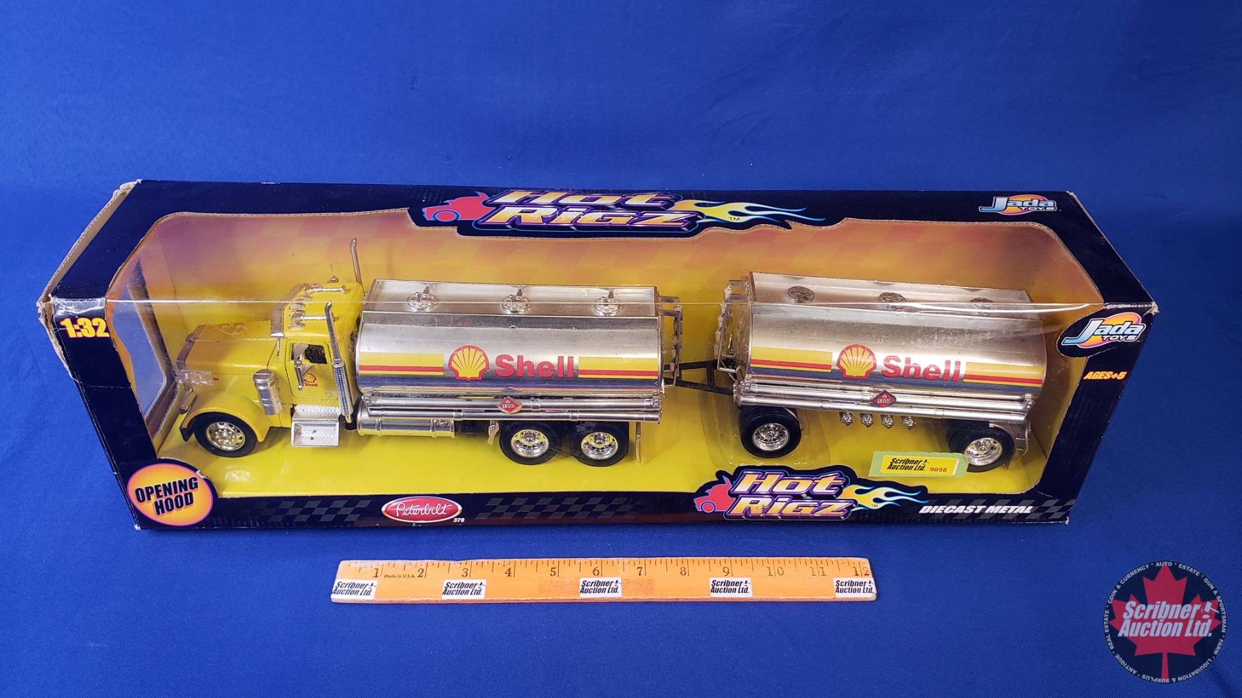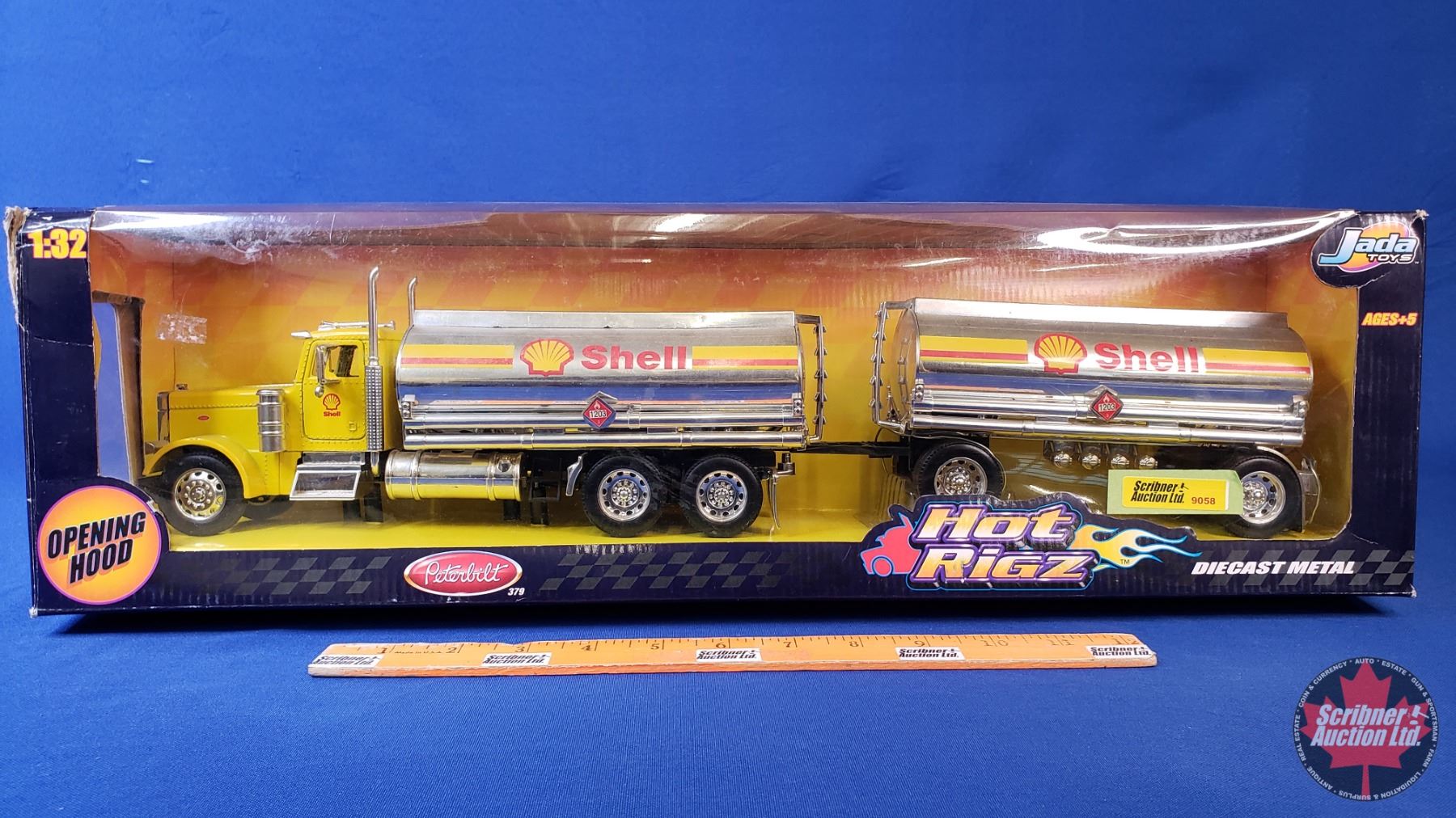 Die-Cast Hot Rigz Peterbilt (Scale 1:32) "SHELL" Tanker Truck with Pump Trailer (Box Measures: 24"L) (SEE PICS!)