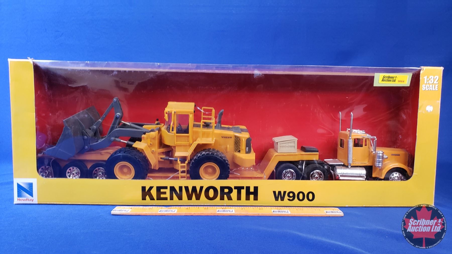 Die-Cast KENWORTH W900 (Scale 1:32) Truck & Trailer - Construction Series - Equipment Hauler & Loader (Box Measures: 24"L) (SEE PICS!)