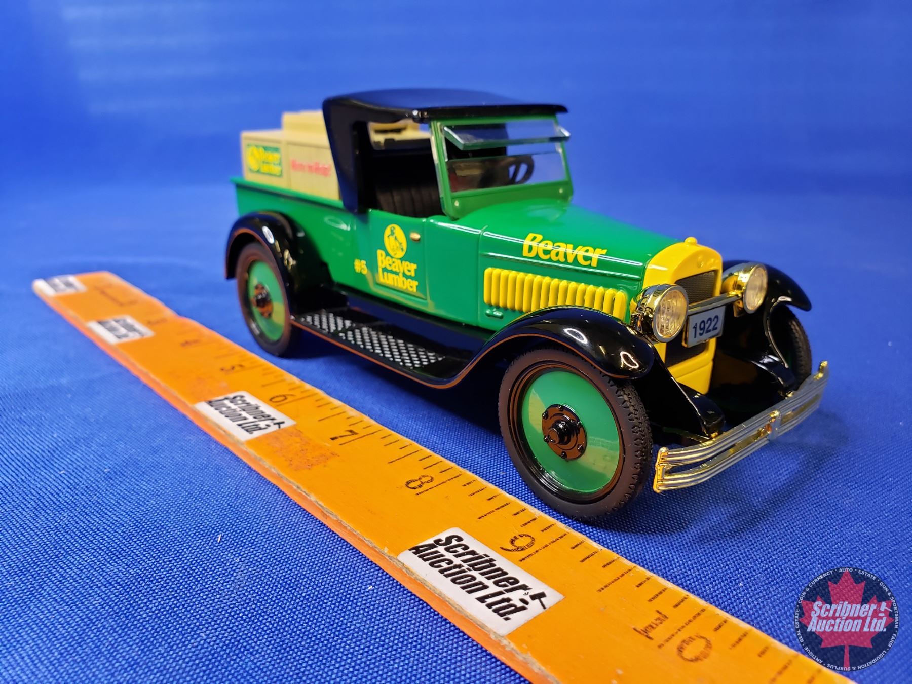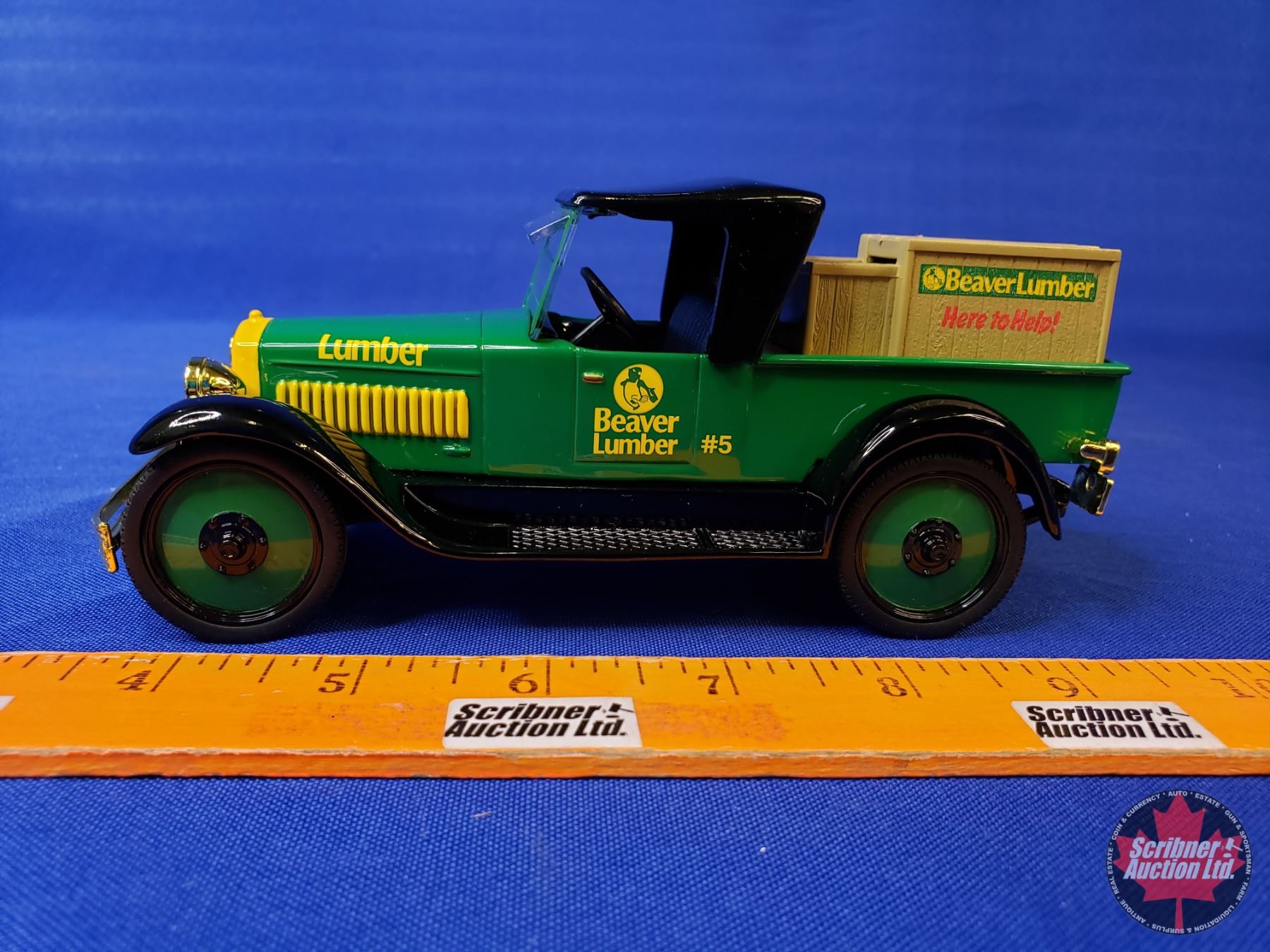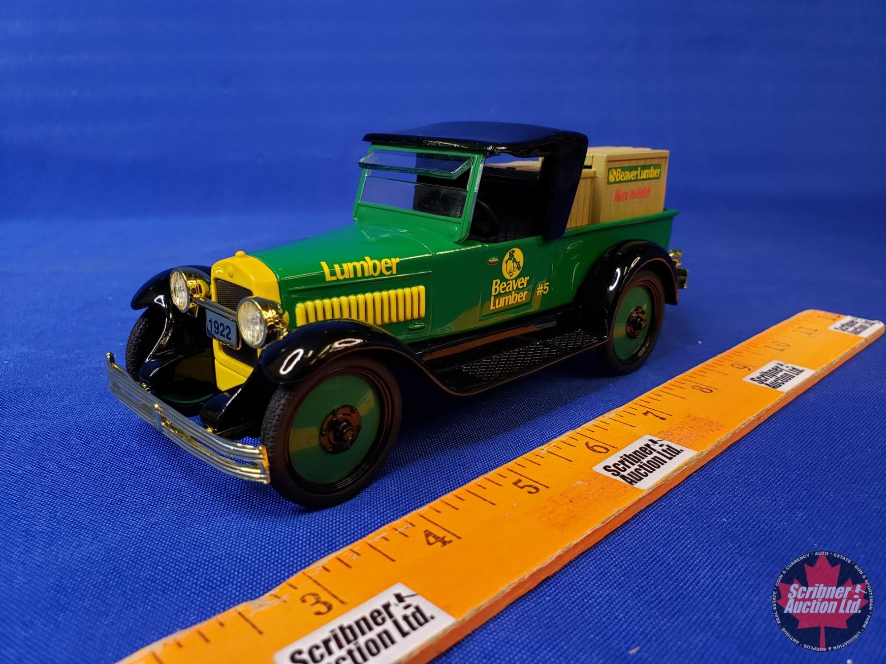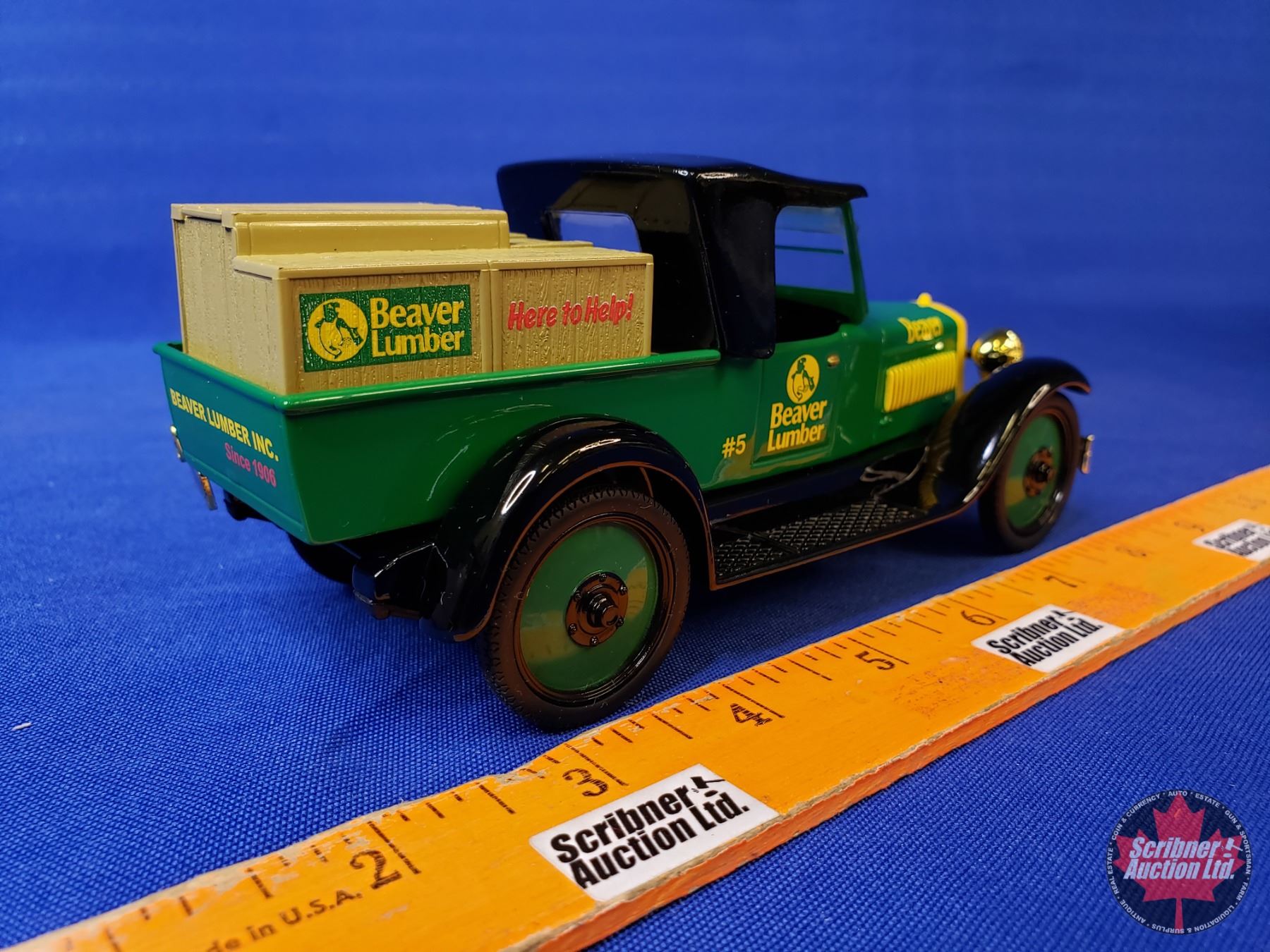 Die-Cast Metal Lockable Truck Coin Bank : 1922 Studebaker Roadster "Beaver Lumber #5" (Scale 1:25) (SpecCast) (SEE PICS!)