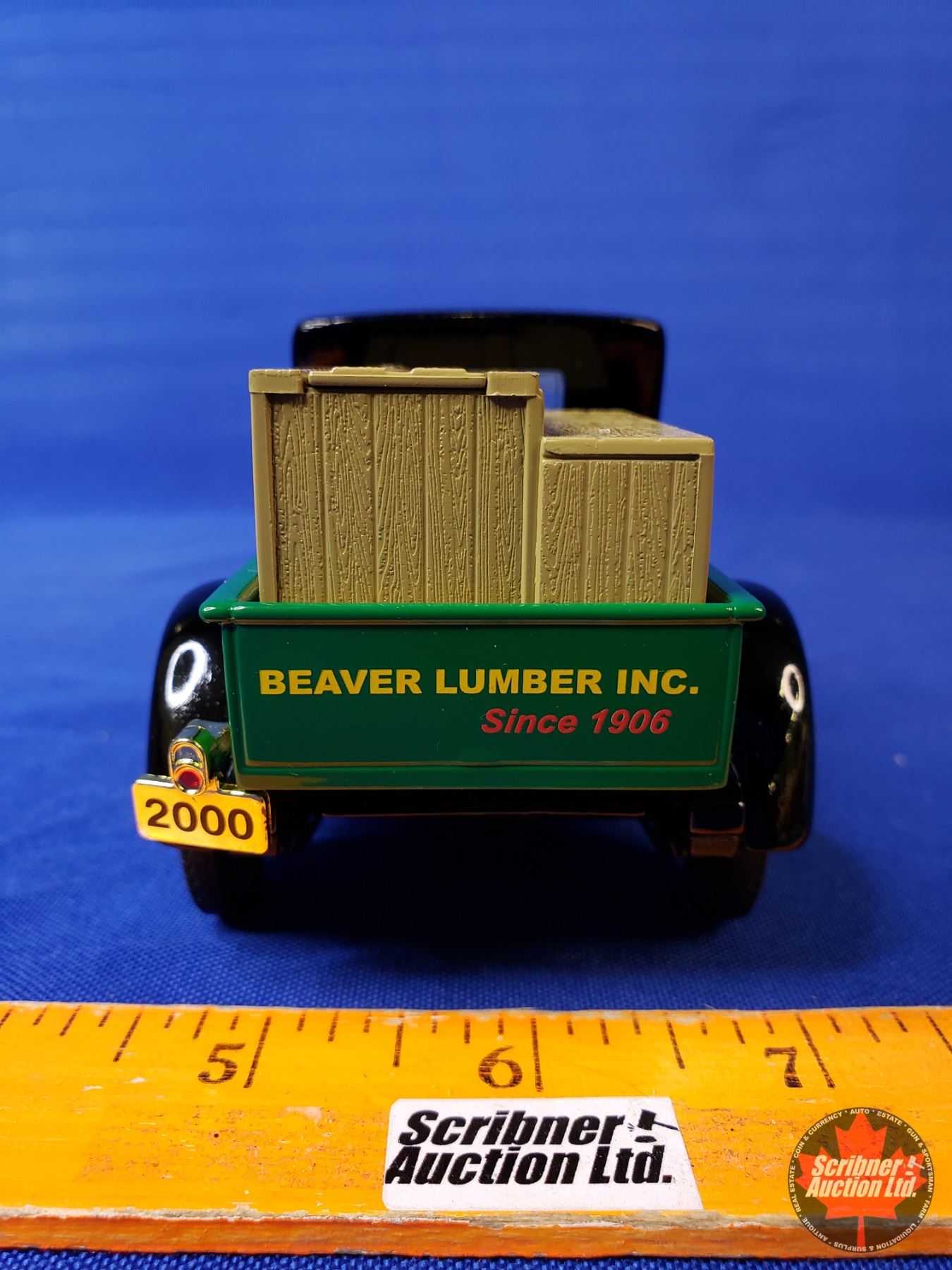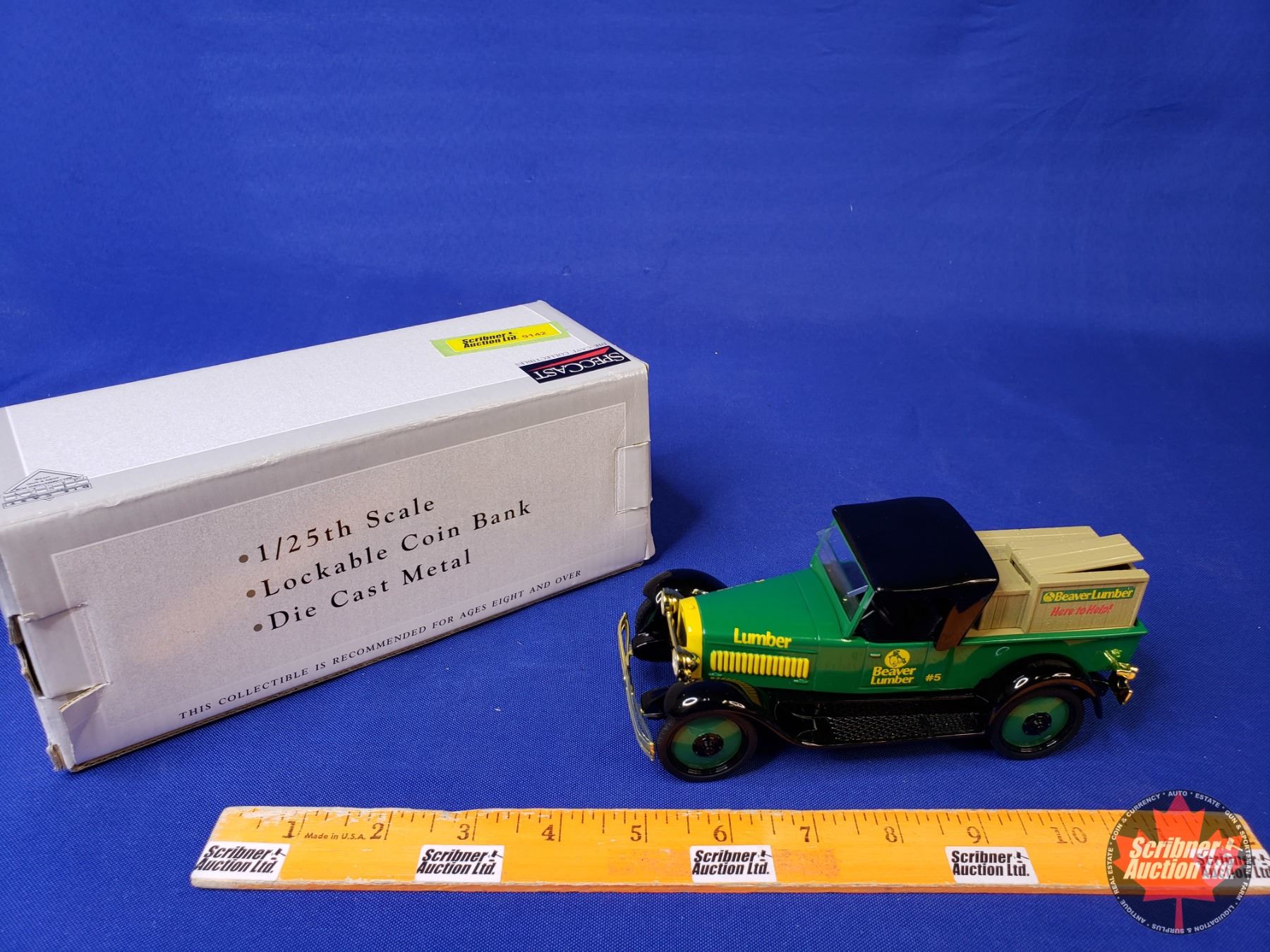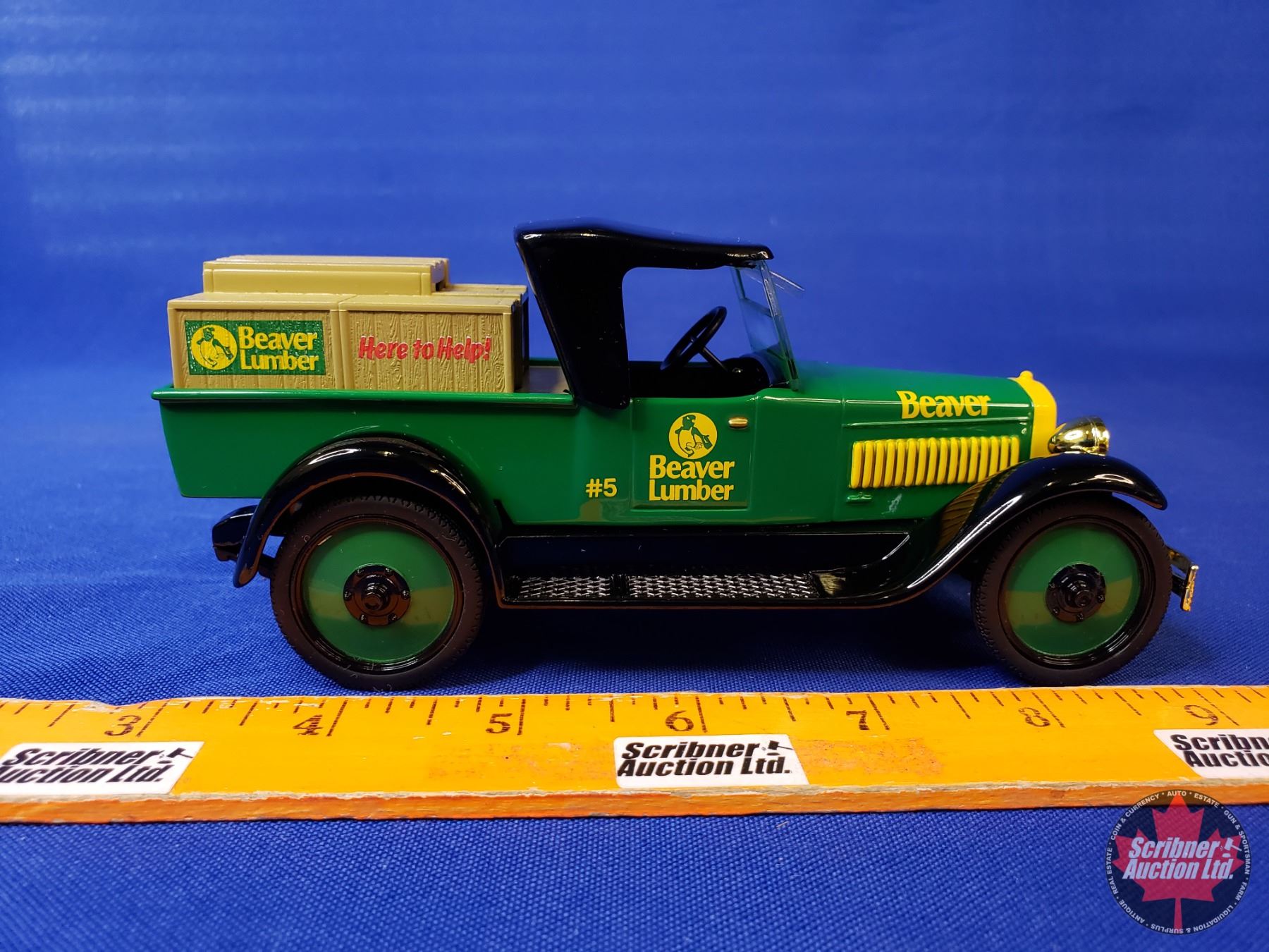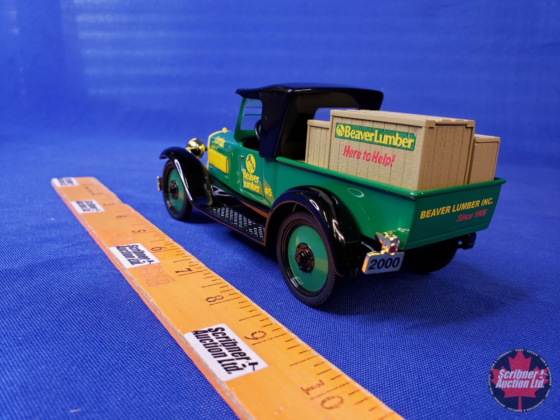 Die-Cast Metal Lockable Truck Coin Bank : 1922 Studebaker Roadster "Beaver Lumber #5" (Scale 1:25) (SpecCast) (SEE PICS!)