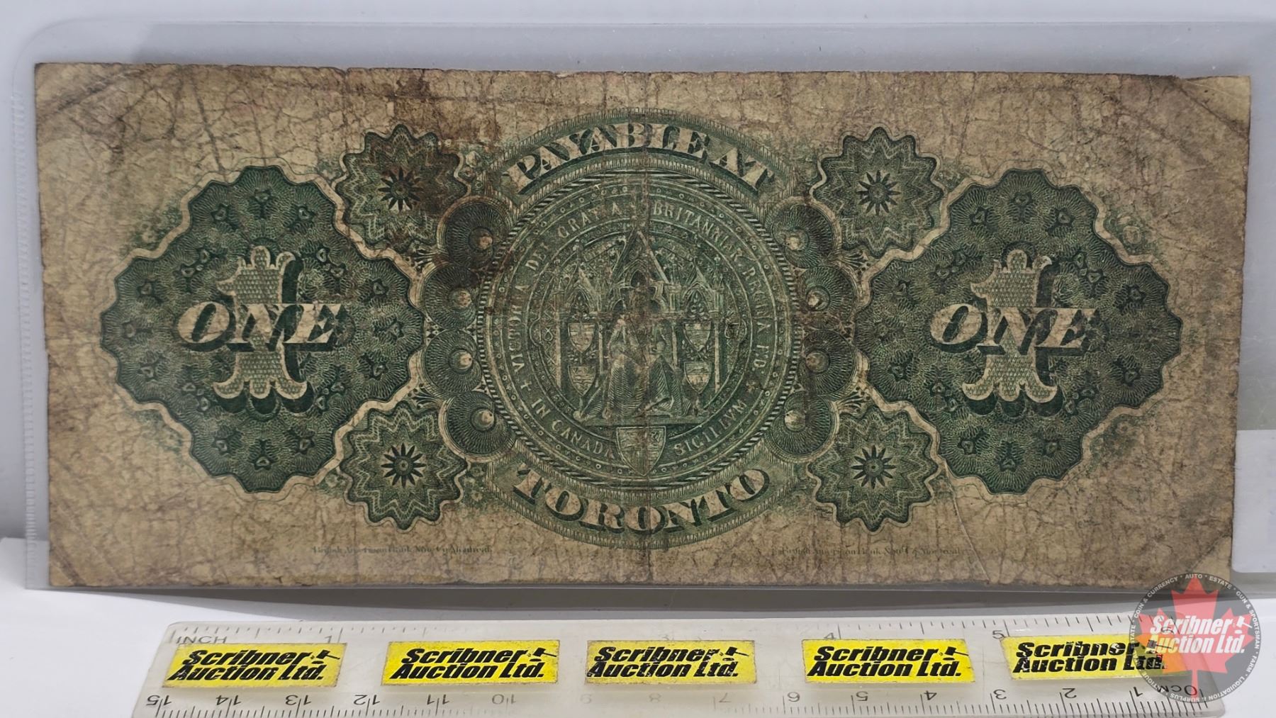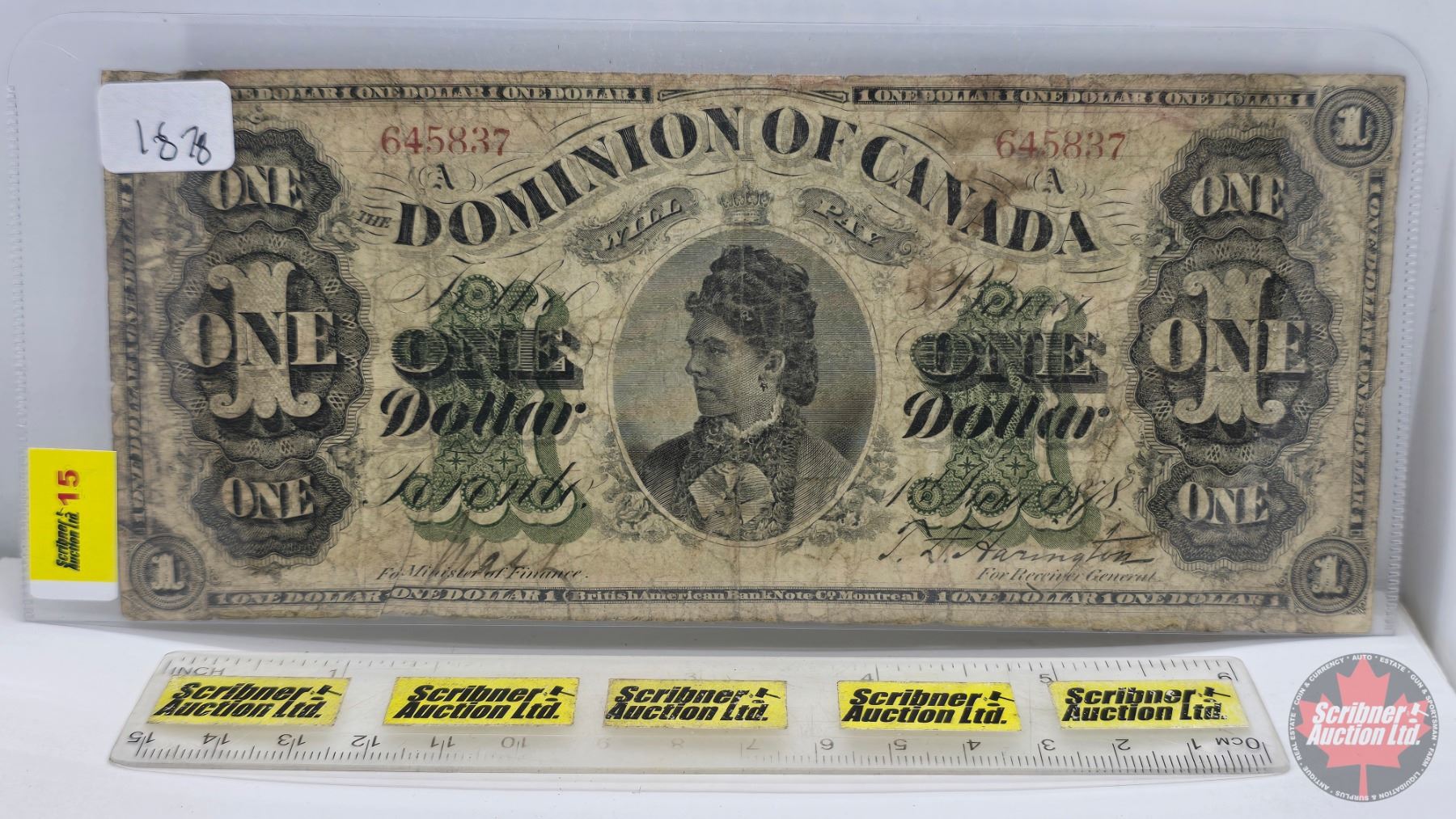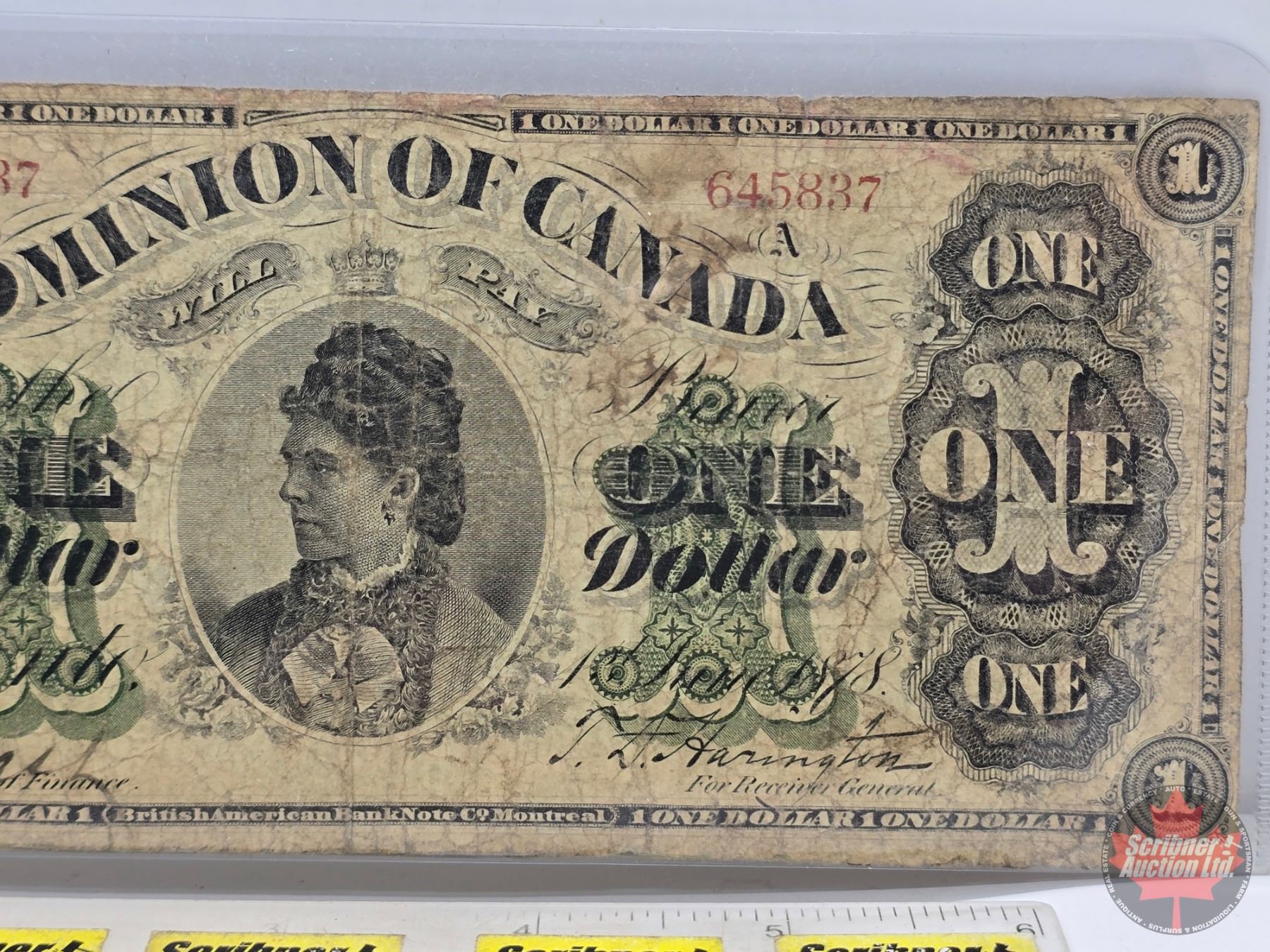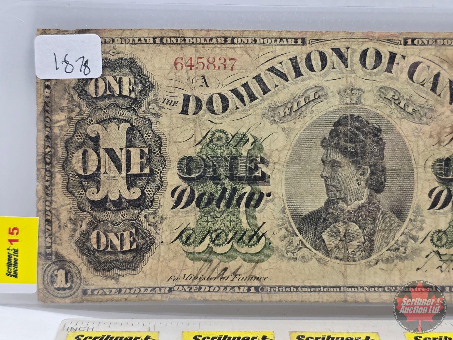 Dominion of Canada $1 Bill 1878 : "A" Series : Lettered Border : Harington #645837